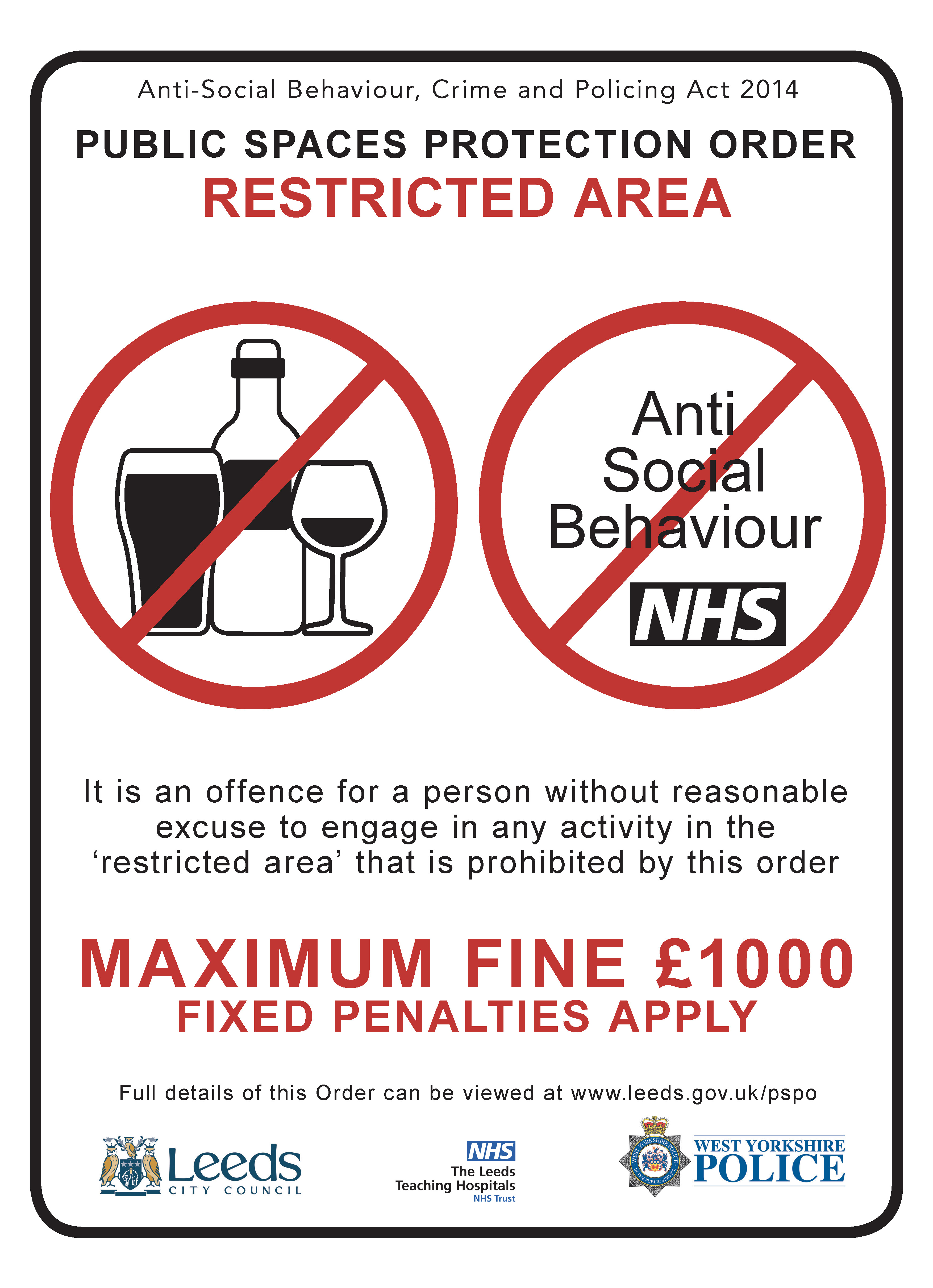To find out more about PSPOs in the city, please see: www.leeds.gov.uk/pspo