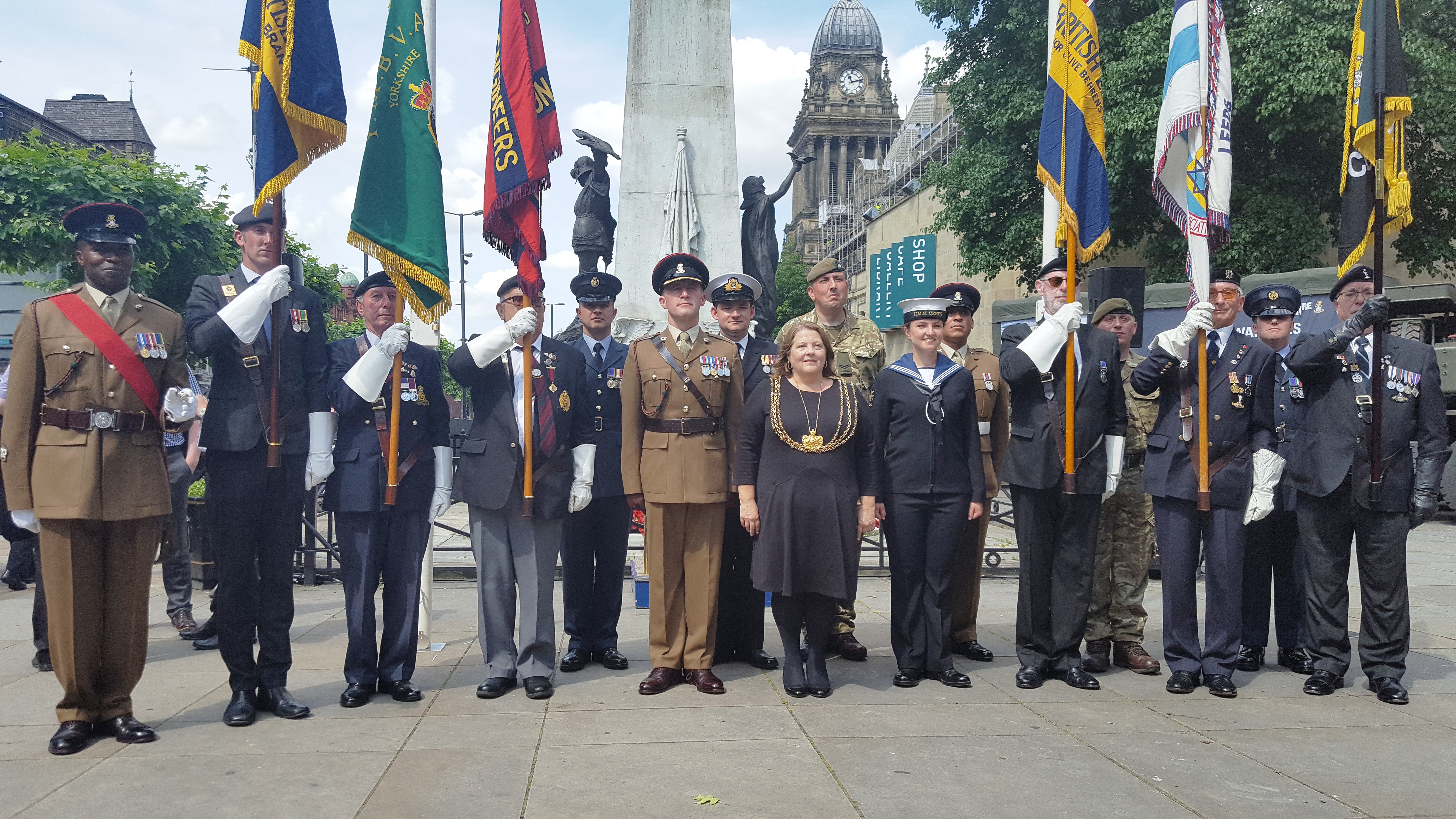 The Lord Mayor of Leeds Cllr Jane Dowson hoisted the official Armed Forces flag next to the war memorial as part of a special ceremony held on Victoria Gardens which was also attended by service personnel from the armed forces, cadets, veterans and members of the public.
