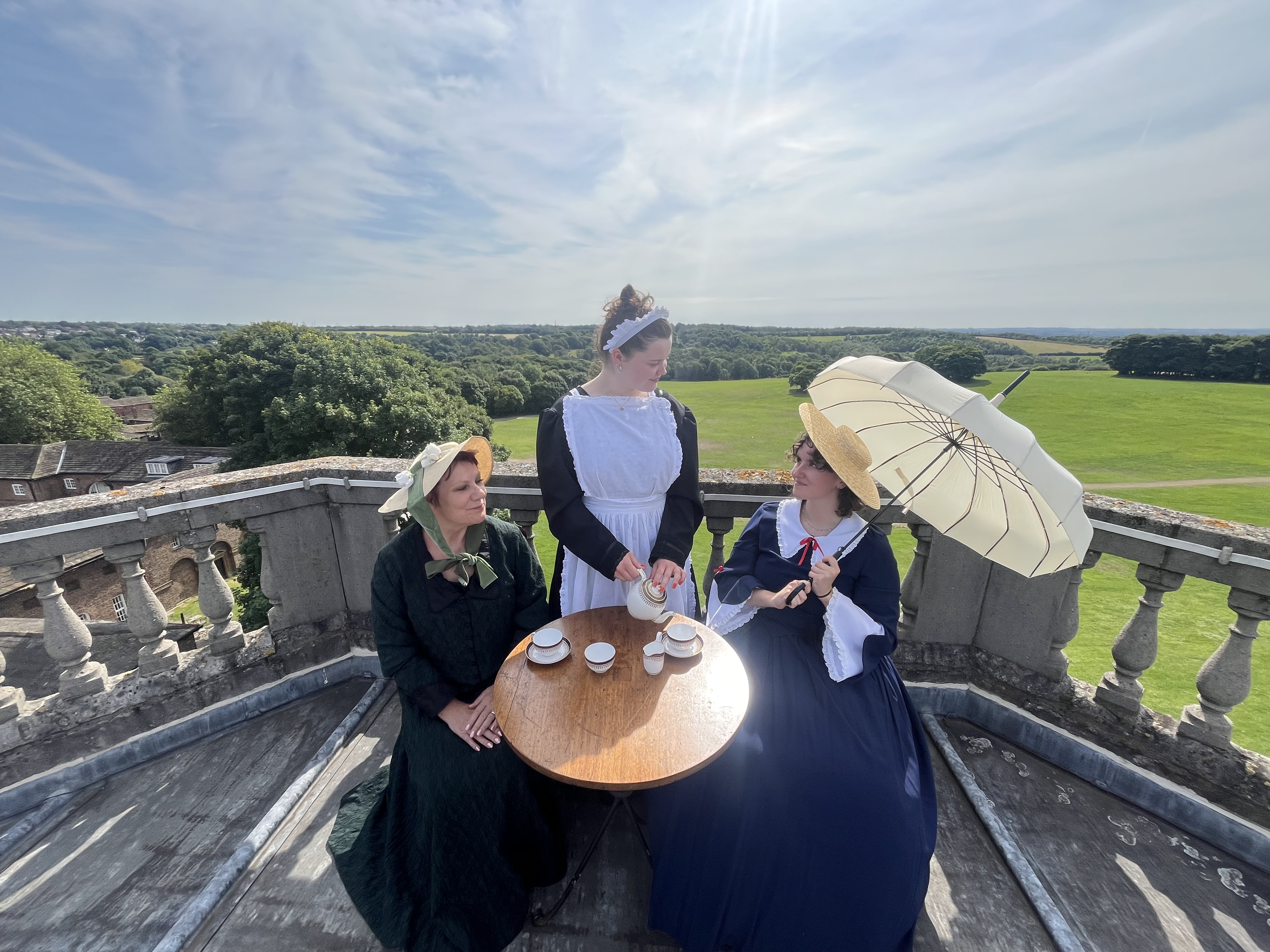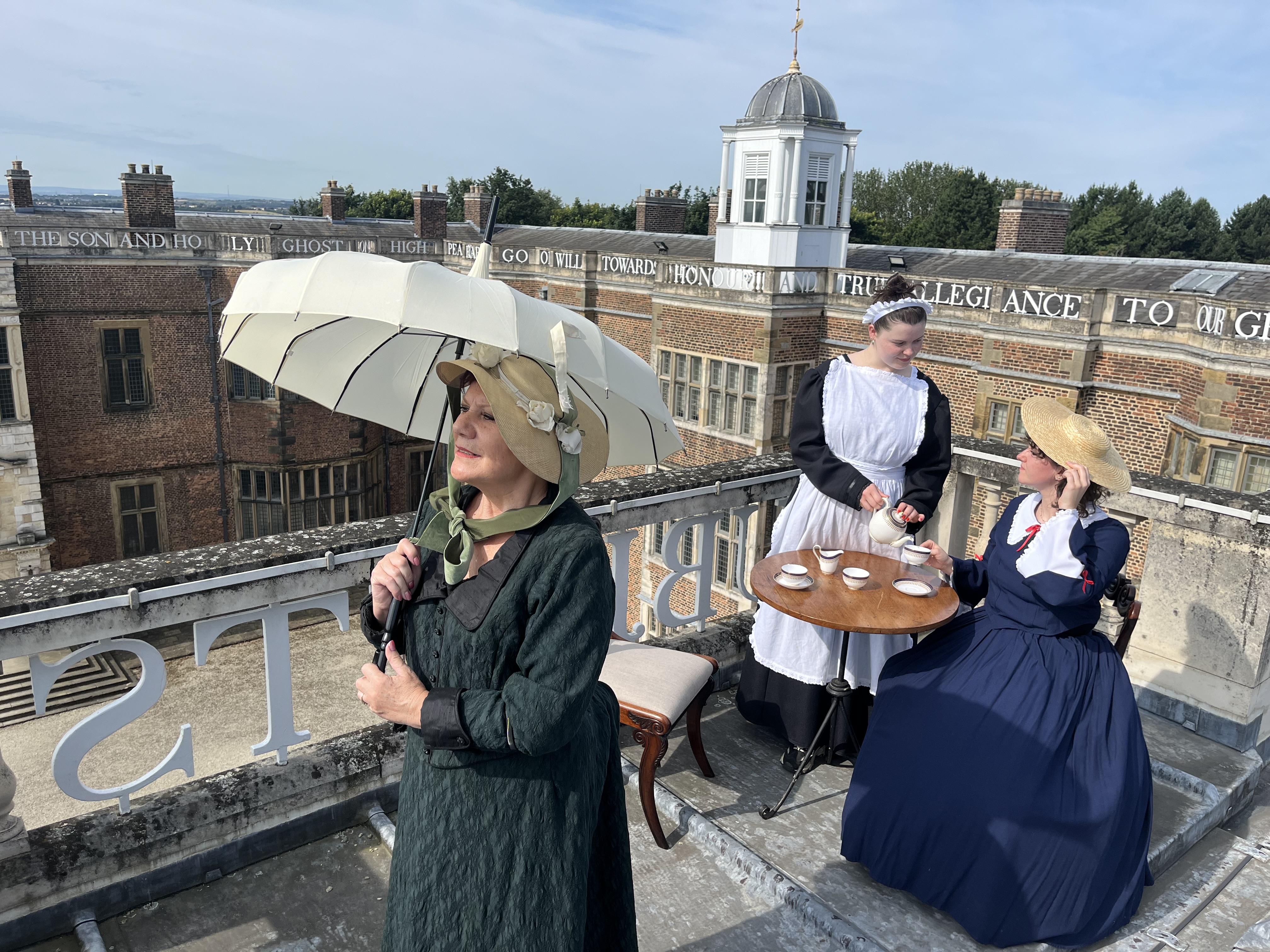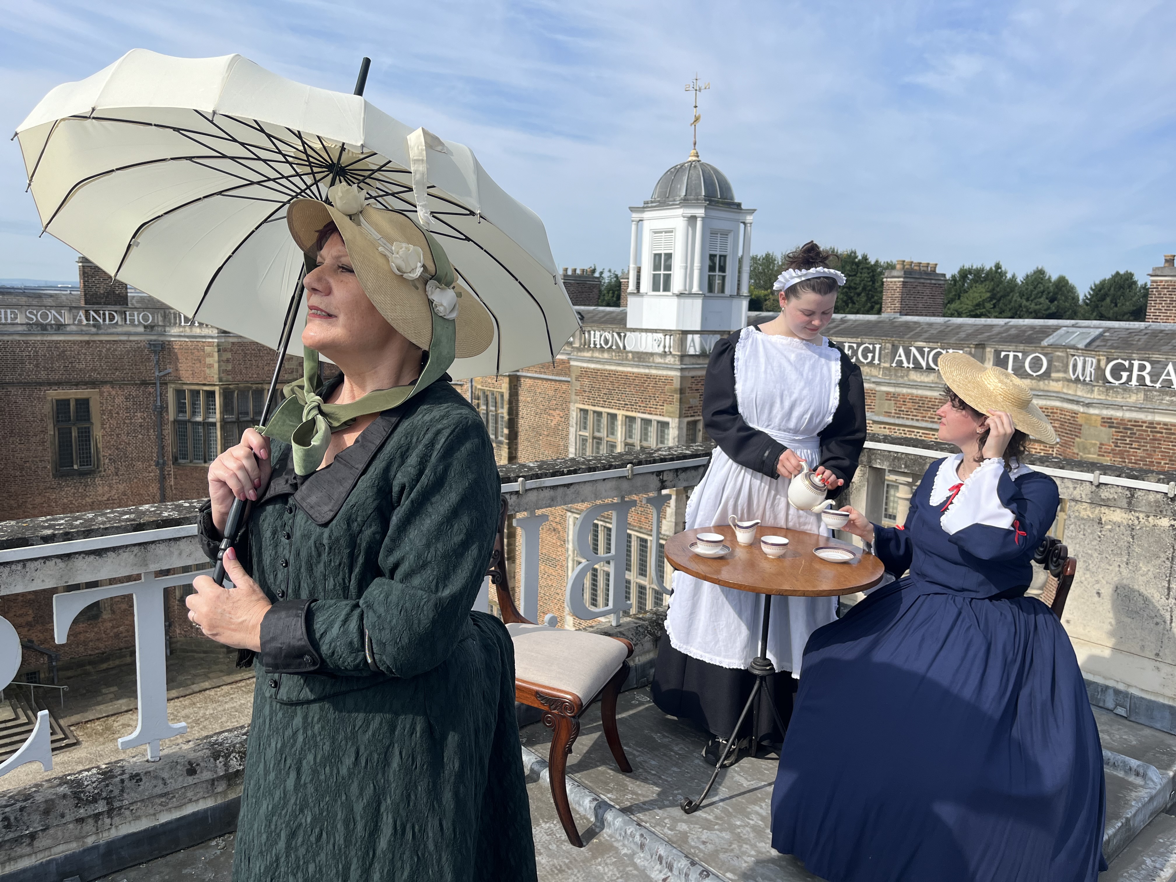 Members of the house team donned 19th century costumes and took to the rooftop to take tea in style, surrounded by breath-taking views of the sprawling estate.