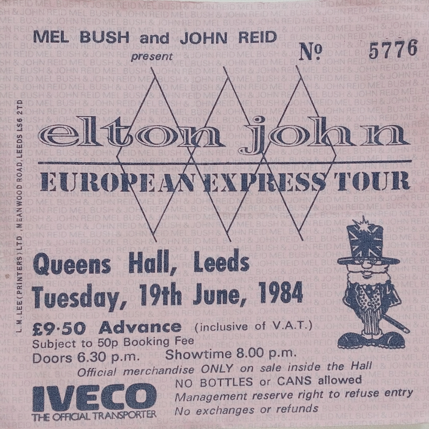 Also part of the collection is a ticket to Elton John’s gig at The Queens Hall on June 19, 1984. Formerly a tram and bus depot, the hall became venue for a number of huge events, and hosted the legendary Rocket Man as part of his European Express tour.