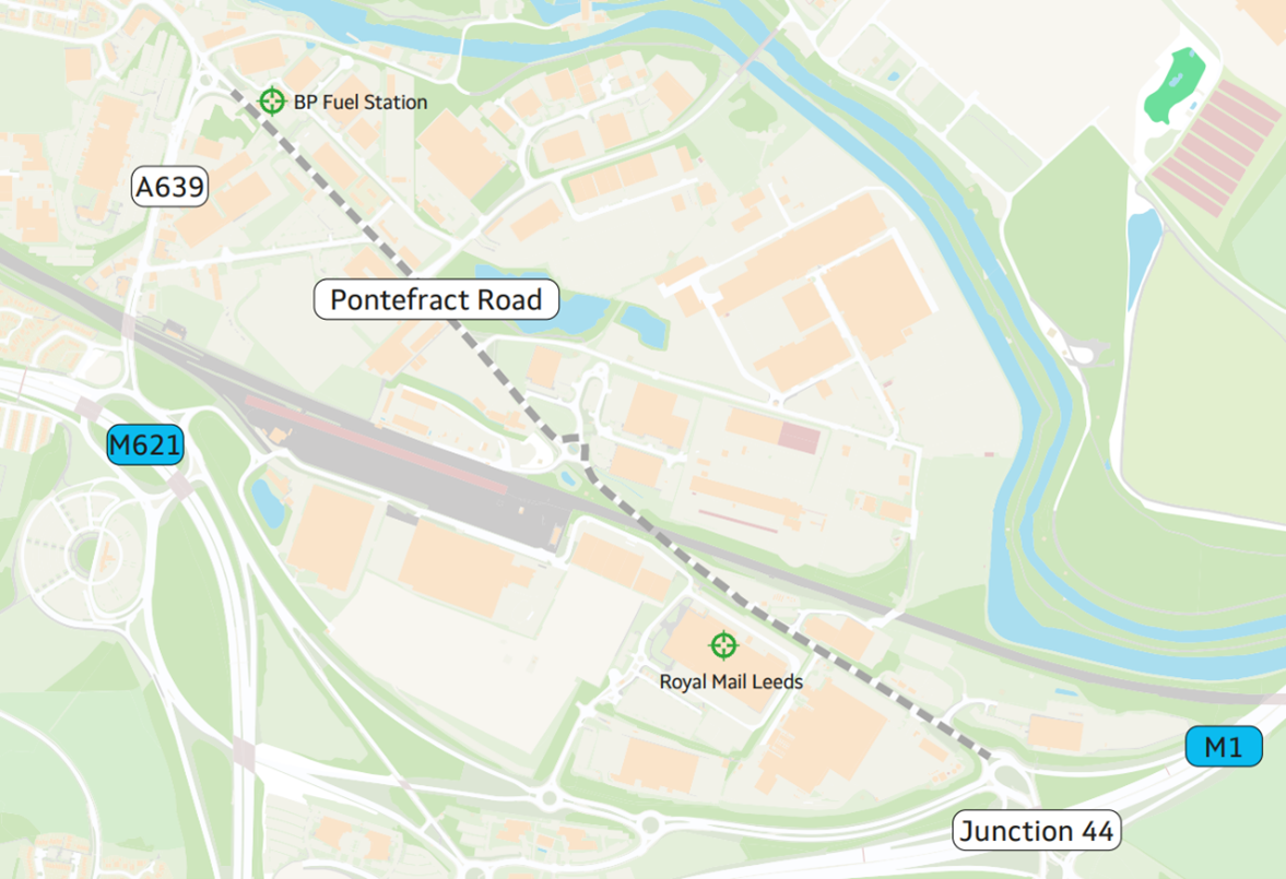 Improvements to B6481 Pontefract Road, from Thwaite Gate to M1 junction 44, focus on creating a segregated cycle track along the route, linking to existing cycling provision on the A639 Thwaite Gate, allowing residents a safer and more direct route to Leeds City Centre and the ability to access businesses along the industrial estate, which often operates night-time shifts which are not suited to public transport use.