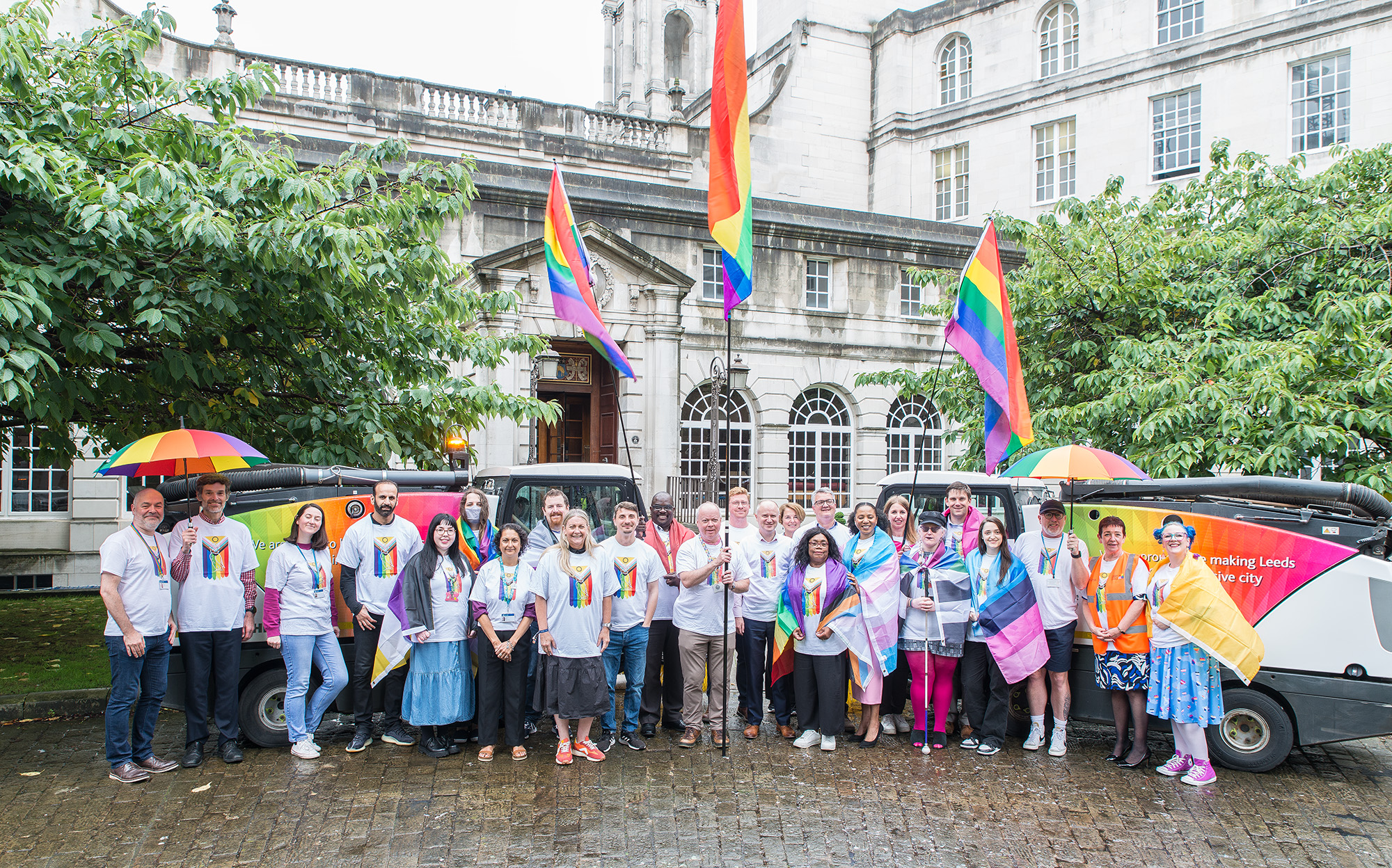 Earlier this week, the leader of Leeds City Council, Councillor James Lewis, deputy leader, Councillor Jonathan Pryor, and executive member for communities, Councillor Mary Harland were joined by members of the council's LGBT+ staff network, outside of Civic Hall, to show their support for the upcoming Pride event.
