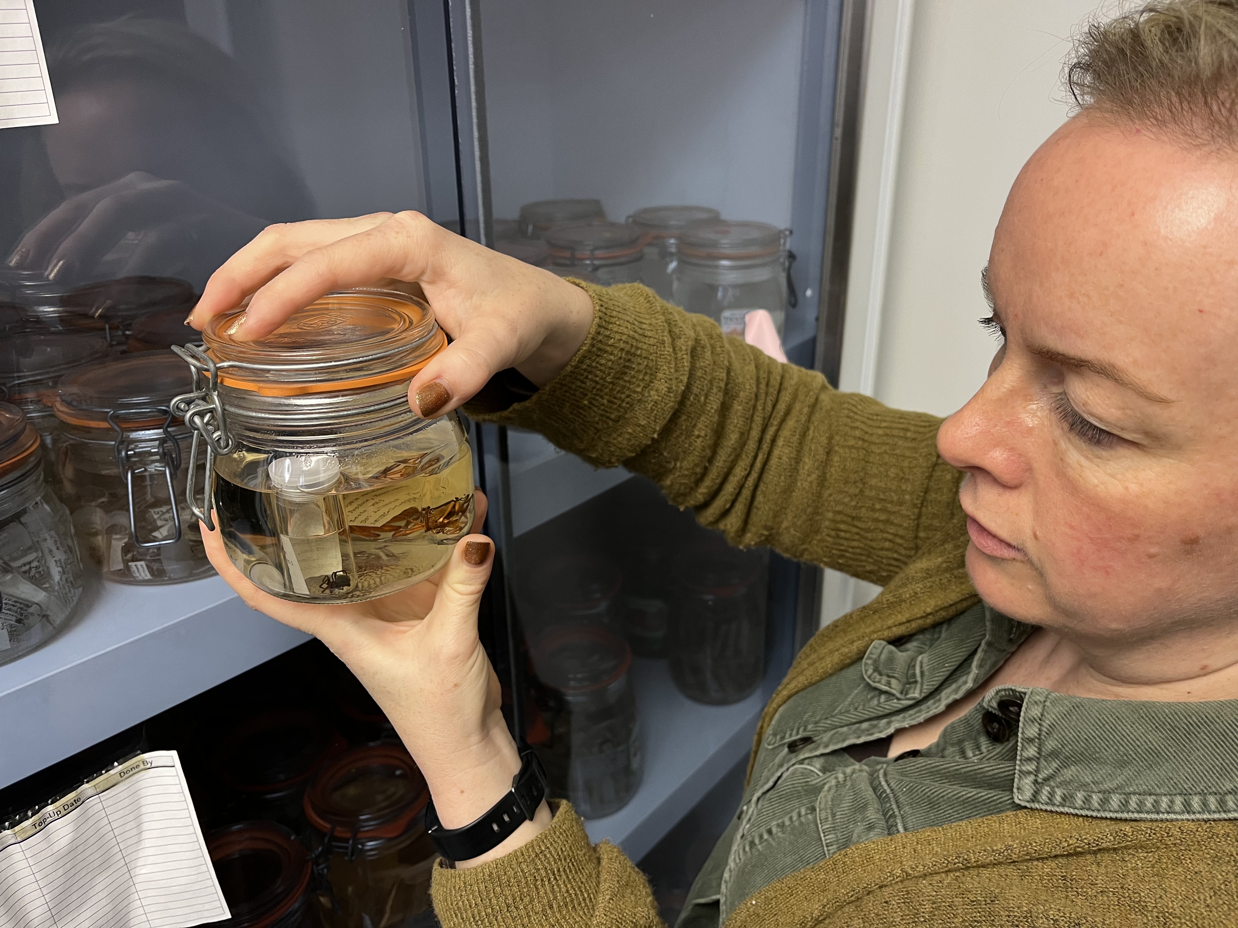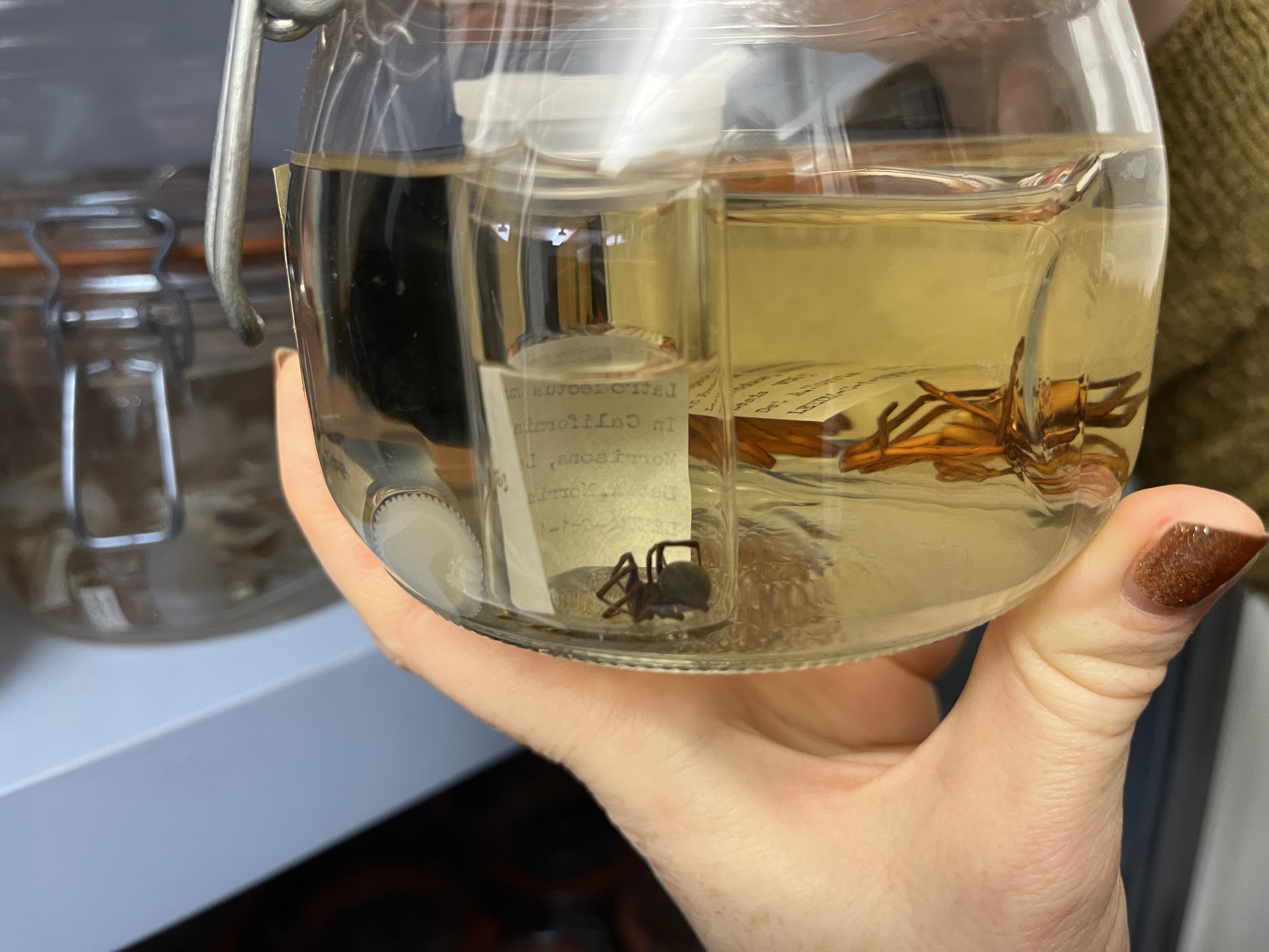 The black widow is stored alongside hundreds of other creatures collected from around the world, including notorious Brazilian wandering spiders, large scorpions, deep sea fish and an octopus.
