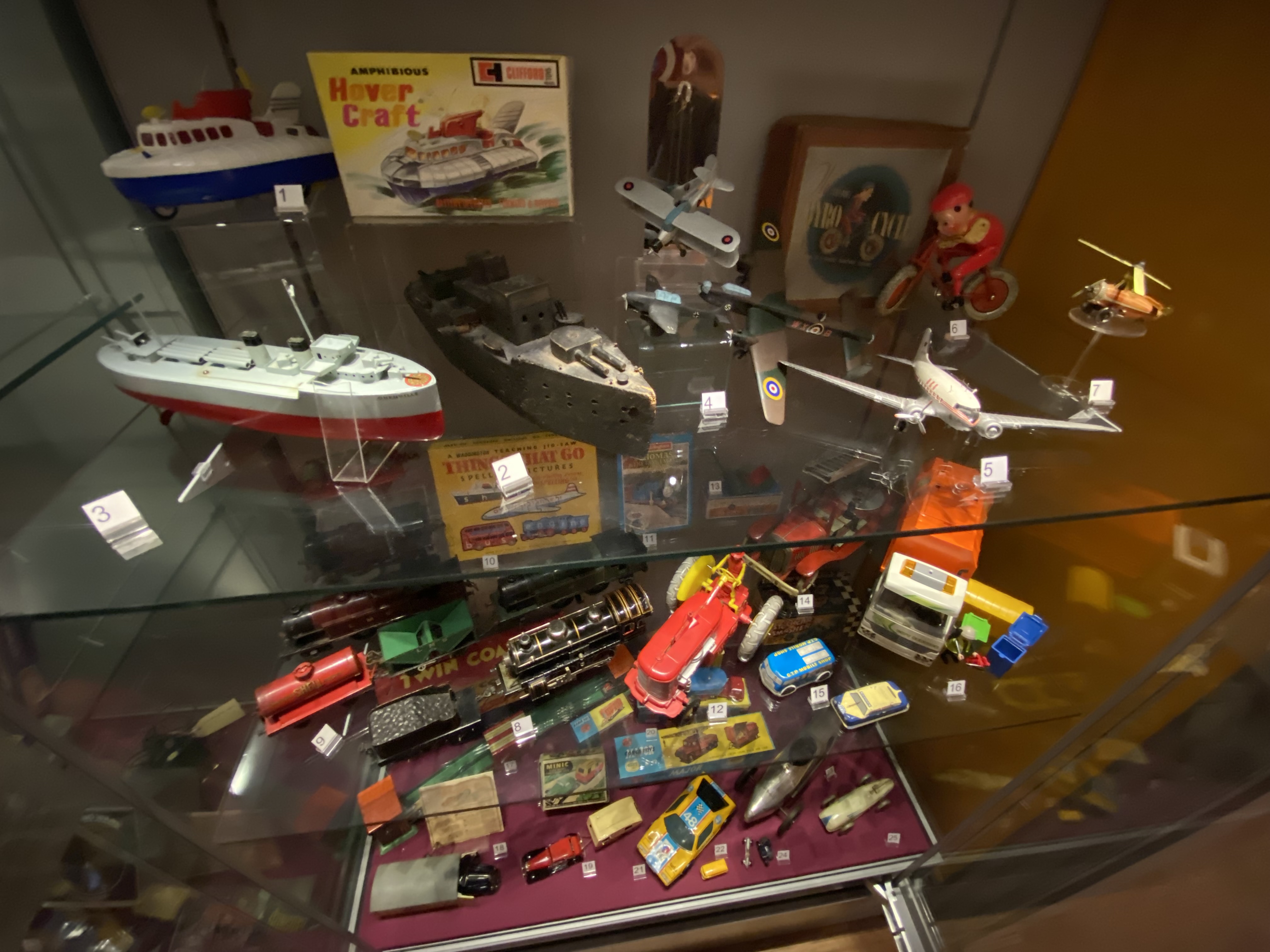 Highlights include a toy racing car from the 1930s modelled after Bluebird, the vehicle which set the land speed record in 1927 when it was driven by Malcolm Campbell.