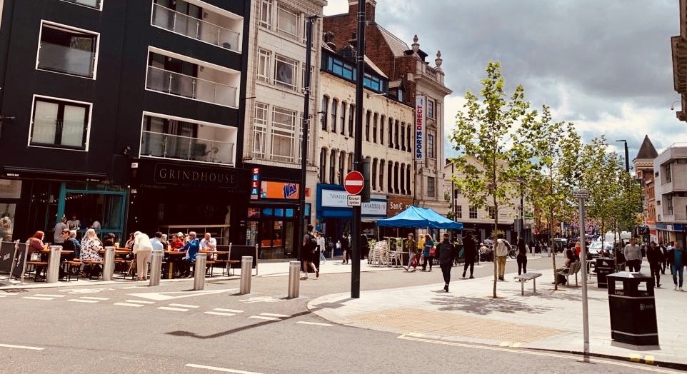Highway infrastructure improvements – made possible by the permanent re-routing of buses to Vicar Lane as part of the £173.5m Leeds Public Transport Investment Programme (LPTIP) – were finished over the spring, with a new traffic-free space being created through the pedestrianisation of the lower end of New Briggate.