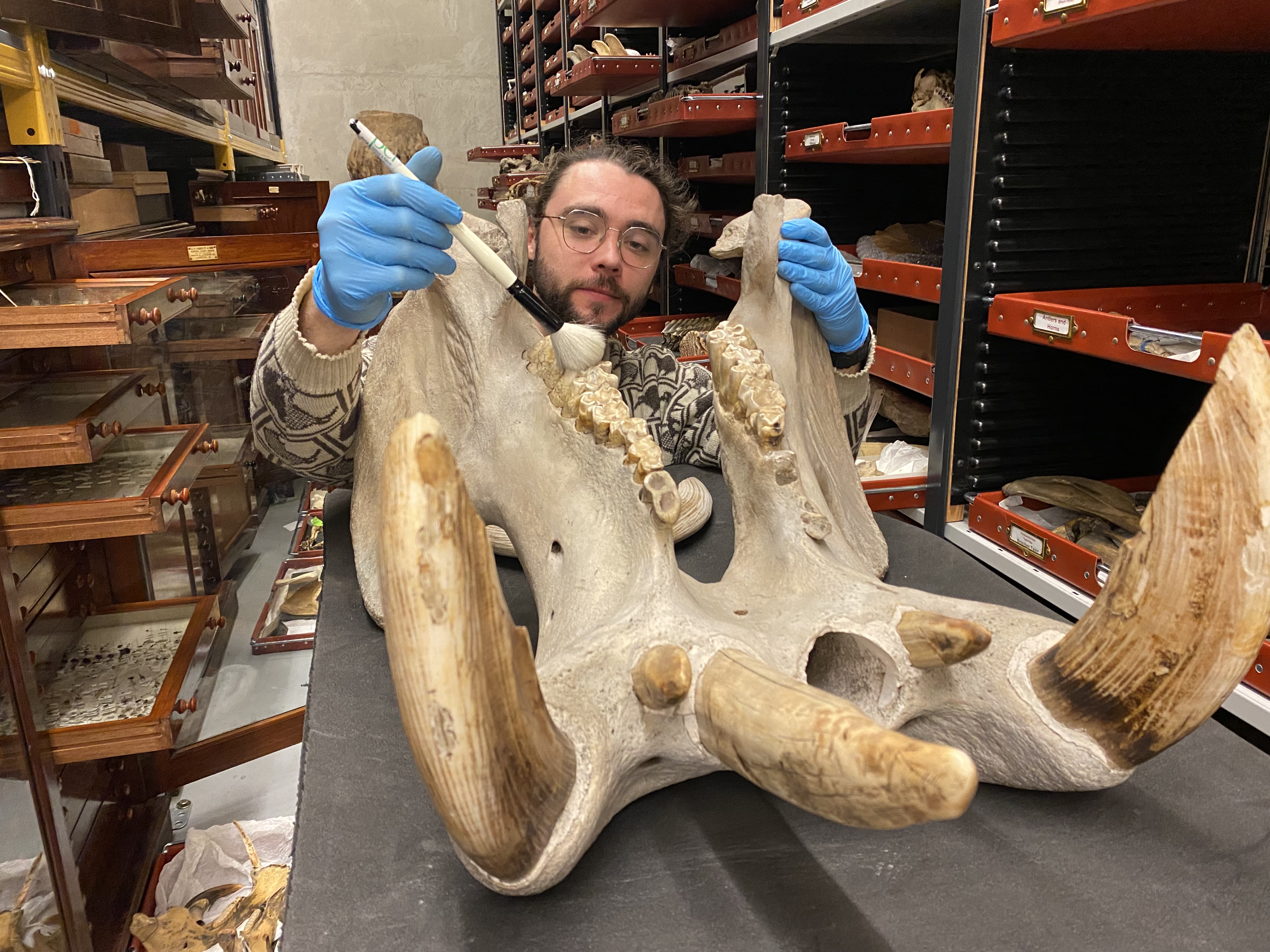 After a lengthy search through a collection of possible candidates, they were able to correctly identify the massive incisor, carefully slotting it back into place and completing the impressive skull before it goes on display.