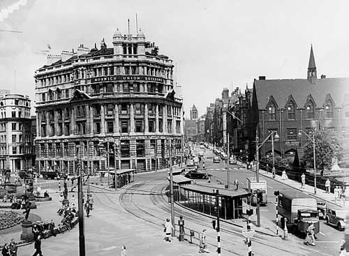 Also included is Commercial Buildings on the corner of Park Row and Boar Lane. The Georgian buildings were designed by architect John Clark and built at a cost of £28,000 in 1829. Its eye-catching columns were 40 feet high and inside was a reading room stocked with daily newspapers, available to read in exchange for an annual subscription.