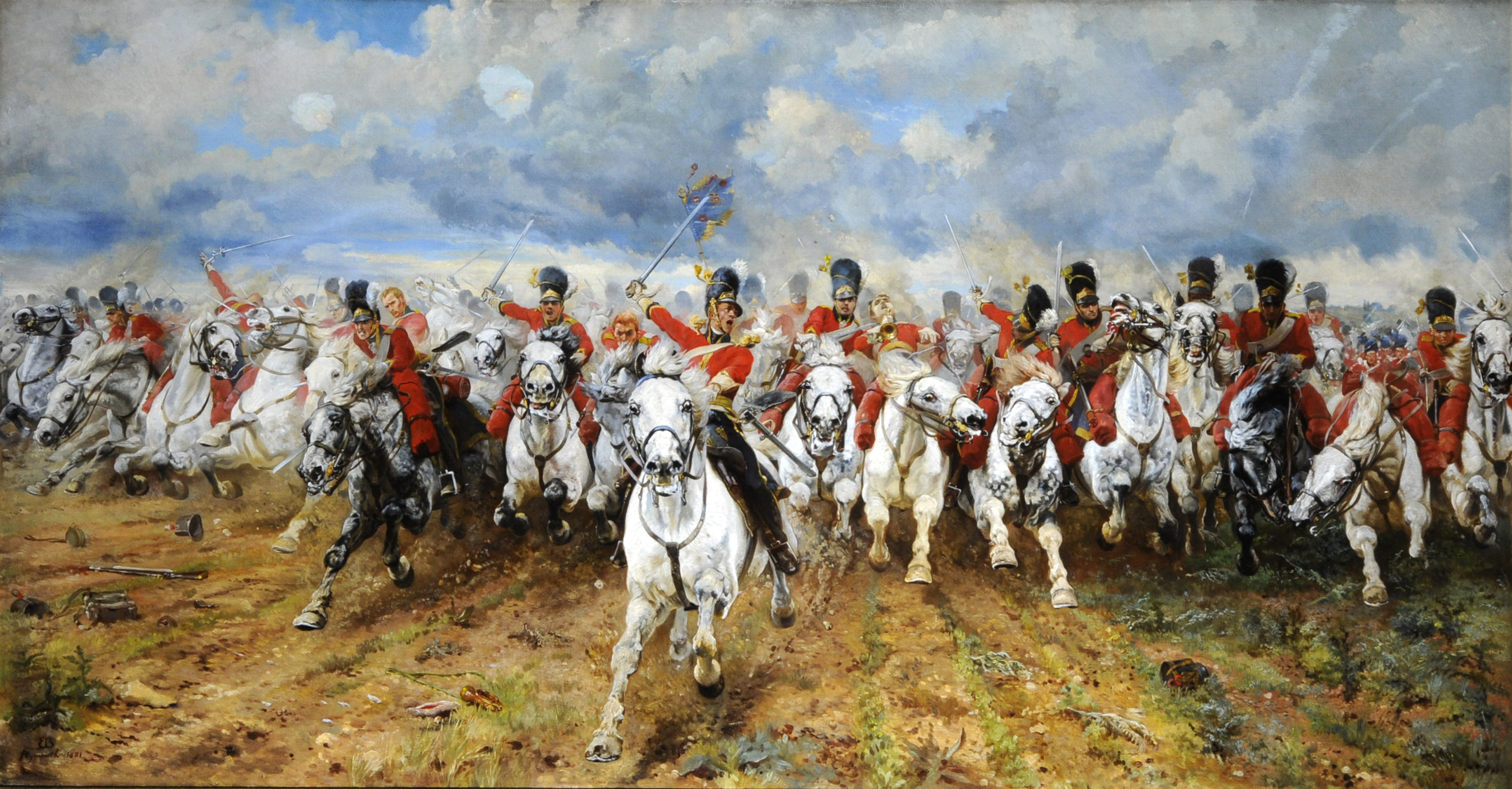 Painted by Lady Elizabeth Butler in 1881, the work depicts the gallant charge of The Scots Greys at the Battle of Waterloo. According to an eye witness the Greys were heard calling “Now, my boys, Scotland forever!”