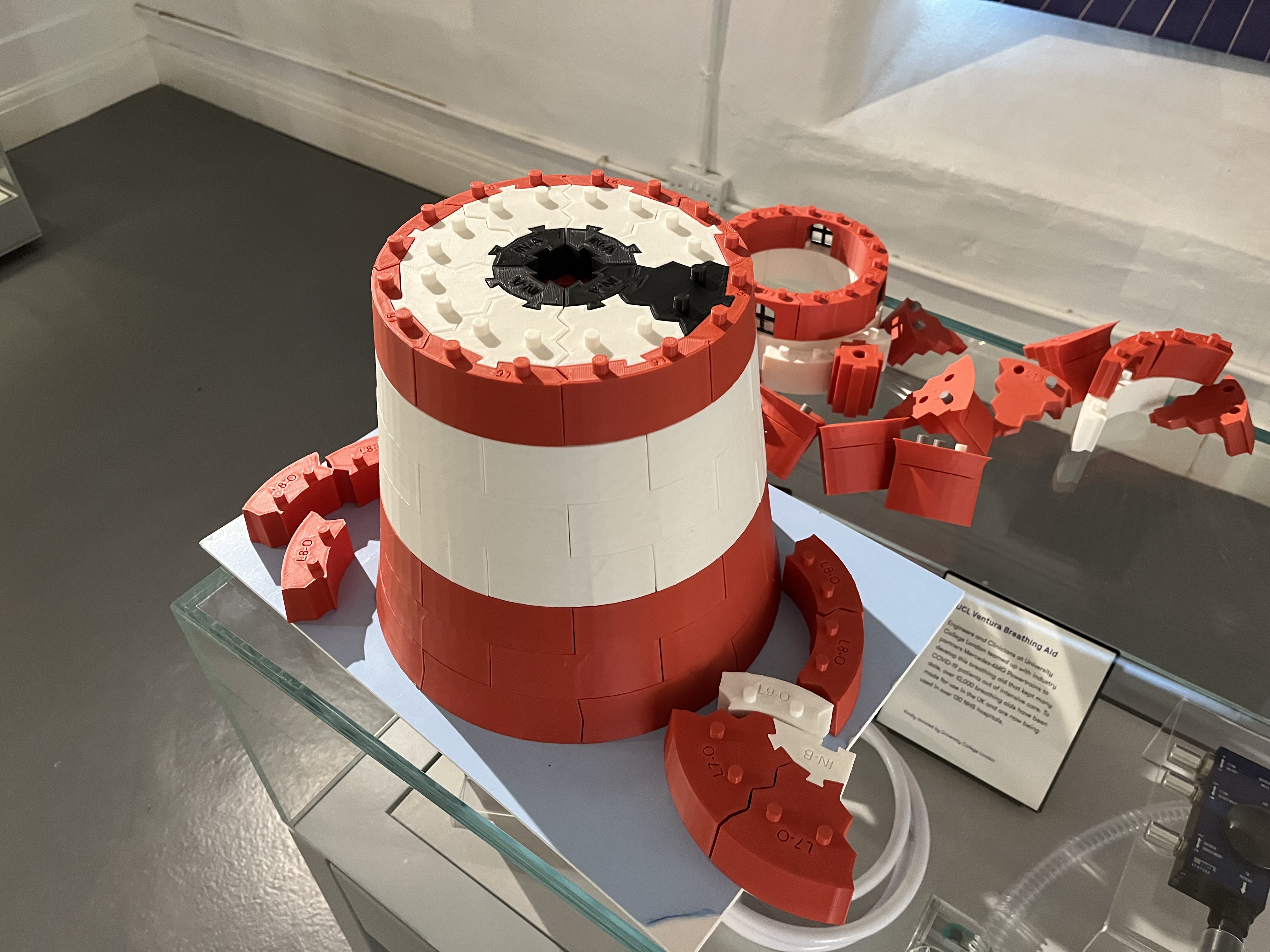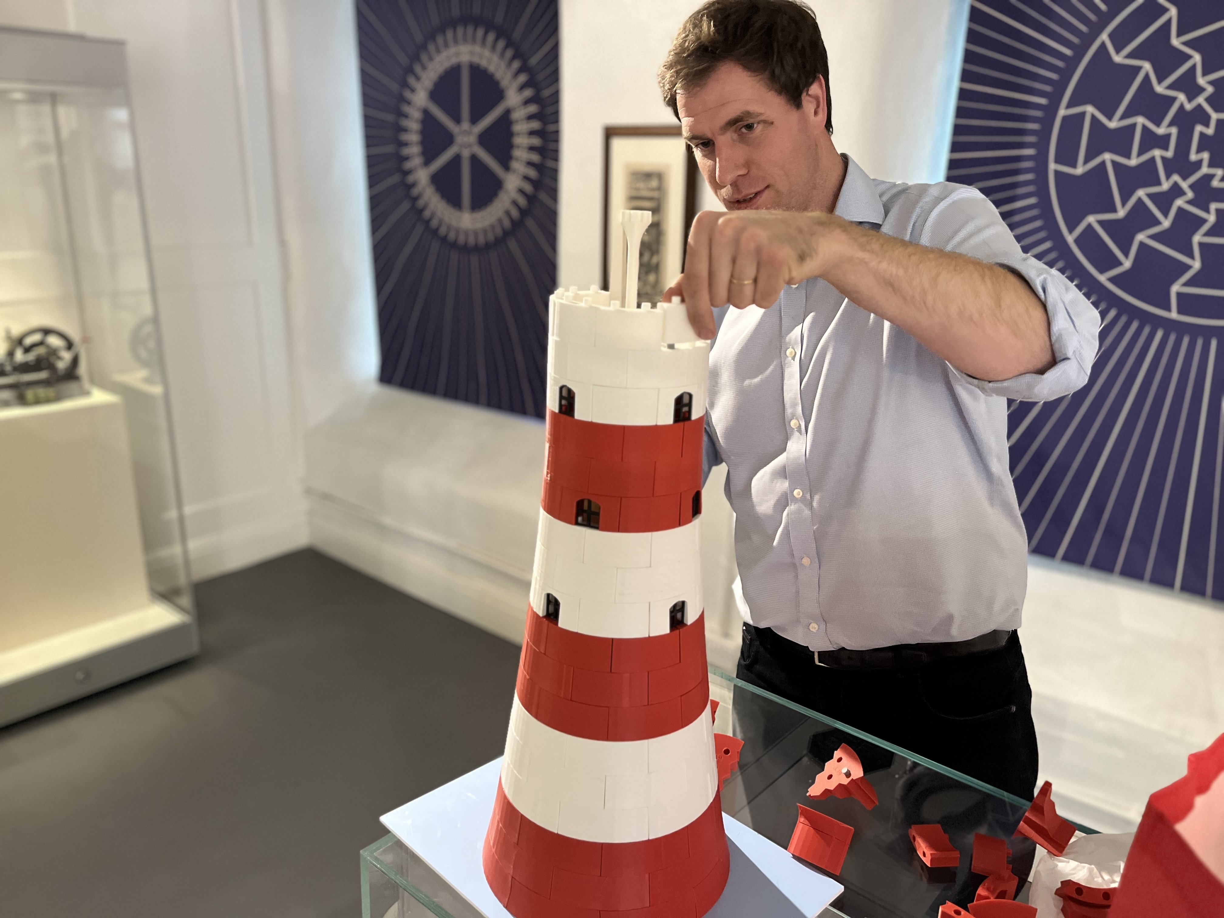 Coloured in the iconic red and white stripes which have become synonymous with the British seaside, the metre-high model is made up of scores of interlocking bricks, which mimic the huge granite blocks and dovetail joints of the full-sized version.