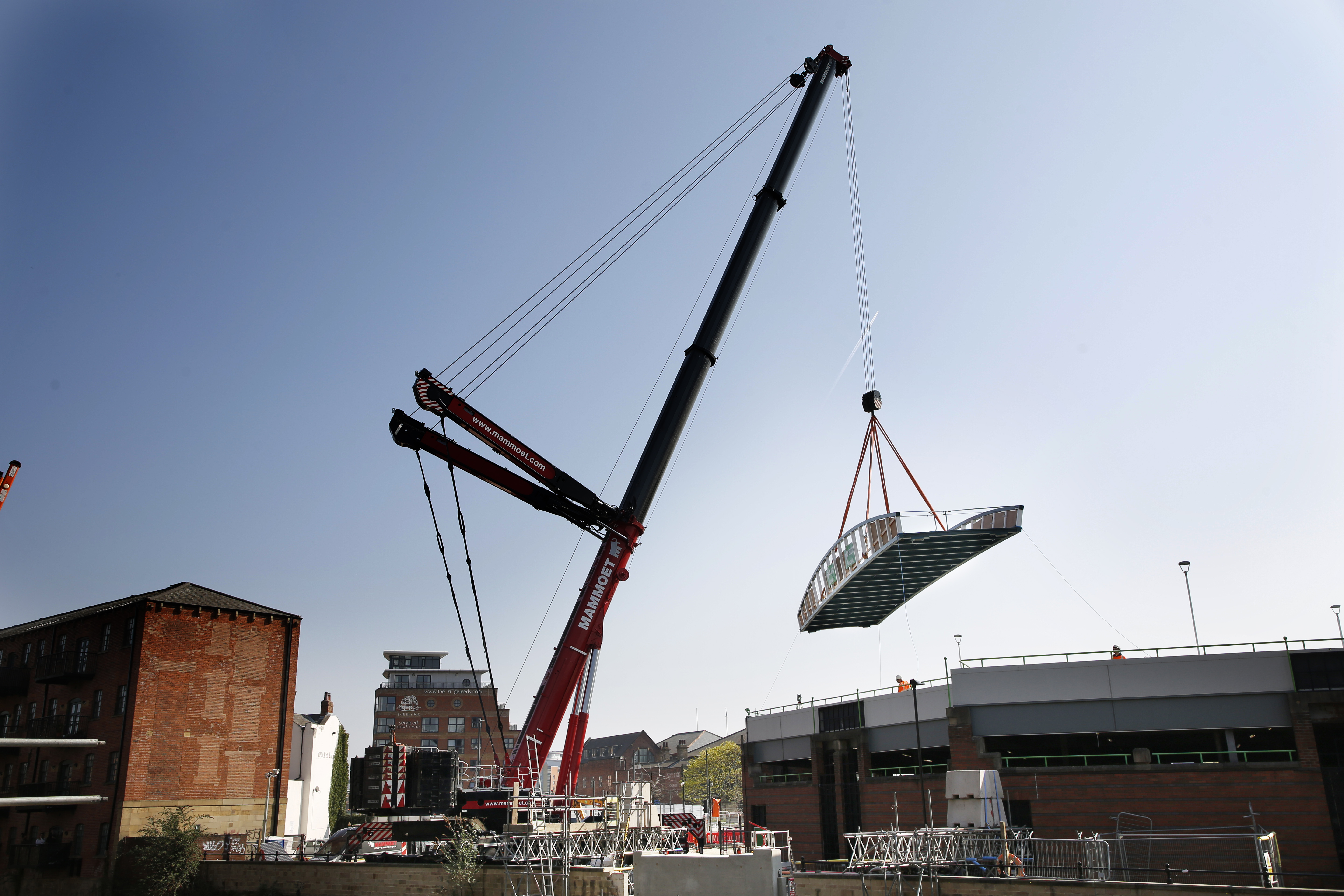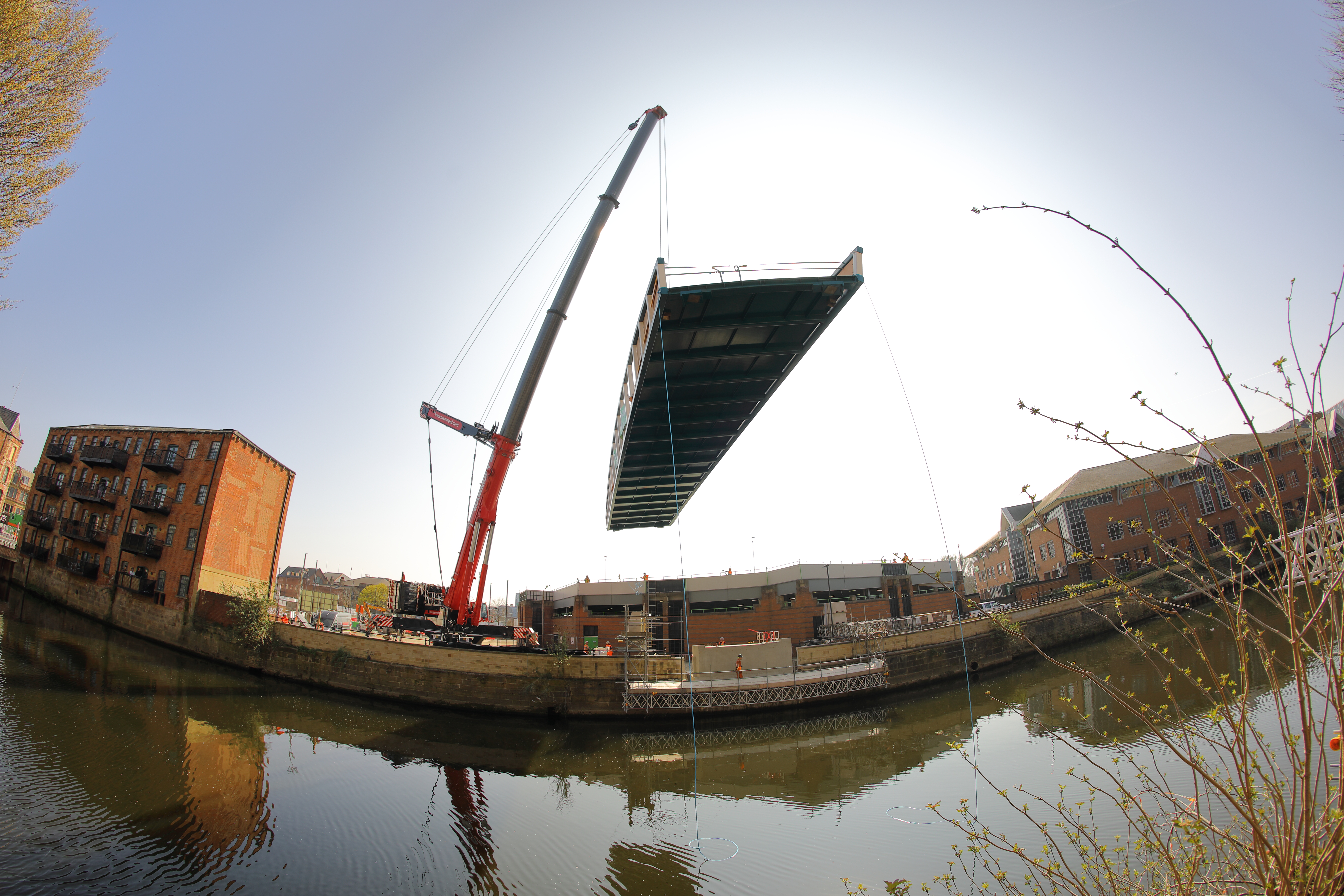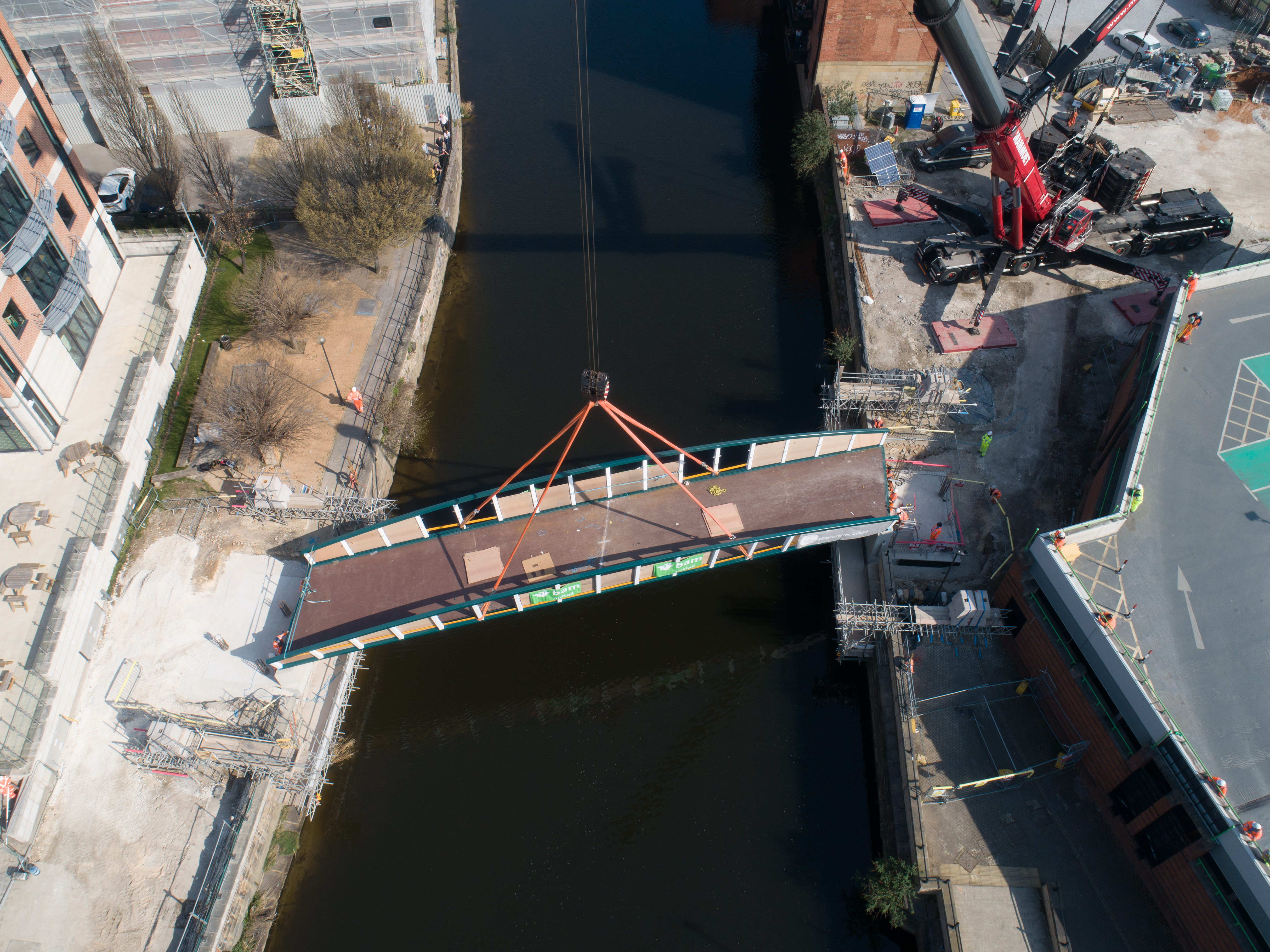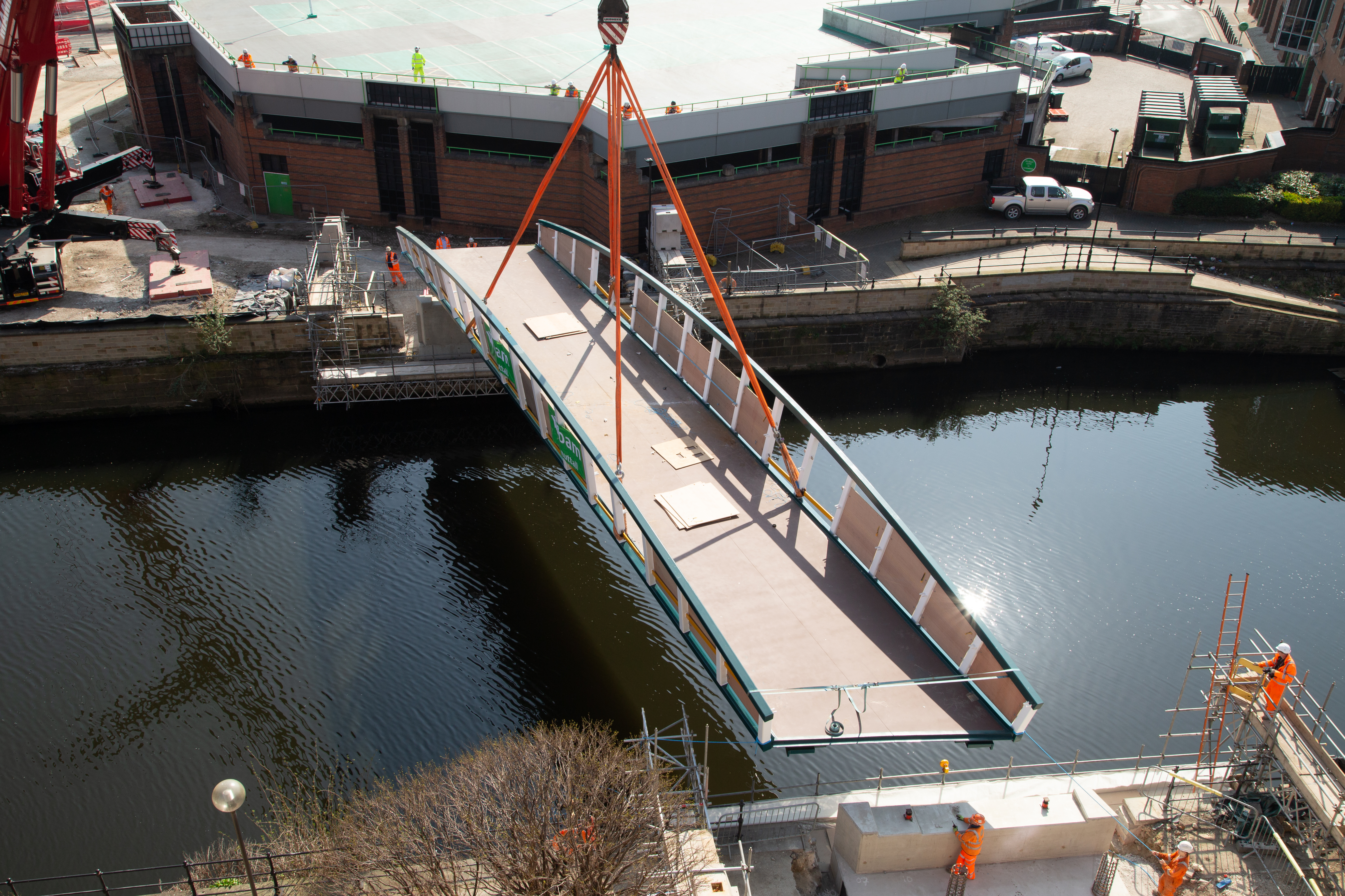 Engineers working on the David Oluwale bridge completed one of the project’s major milestones over the weekend, with cranes carefully placing the 40 tonne structure over the river where it will connect Sovereign Street to Water Lane.