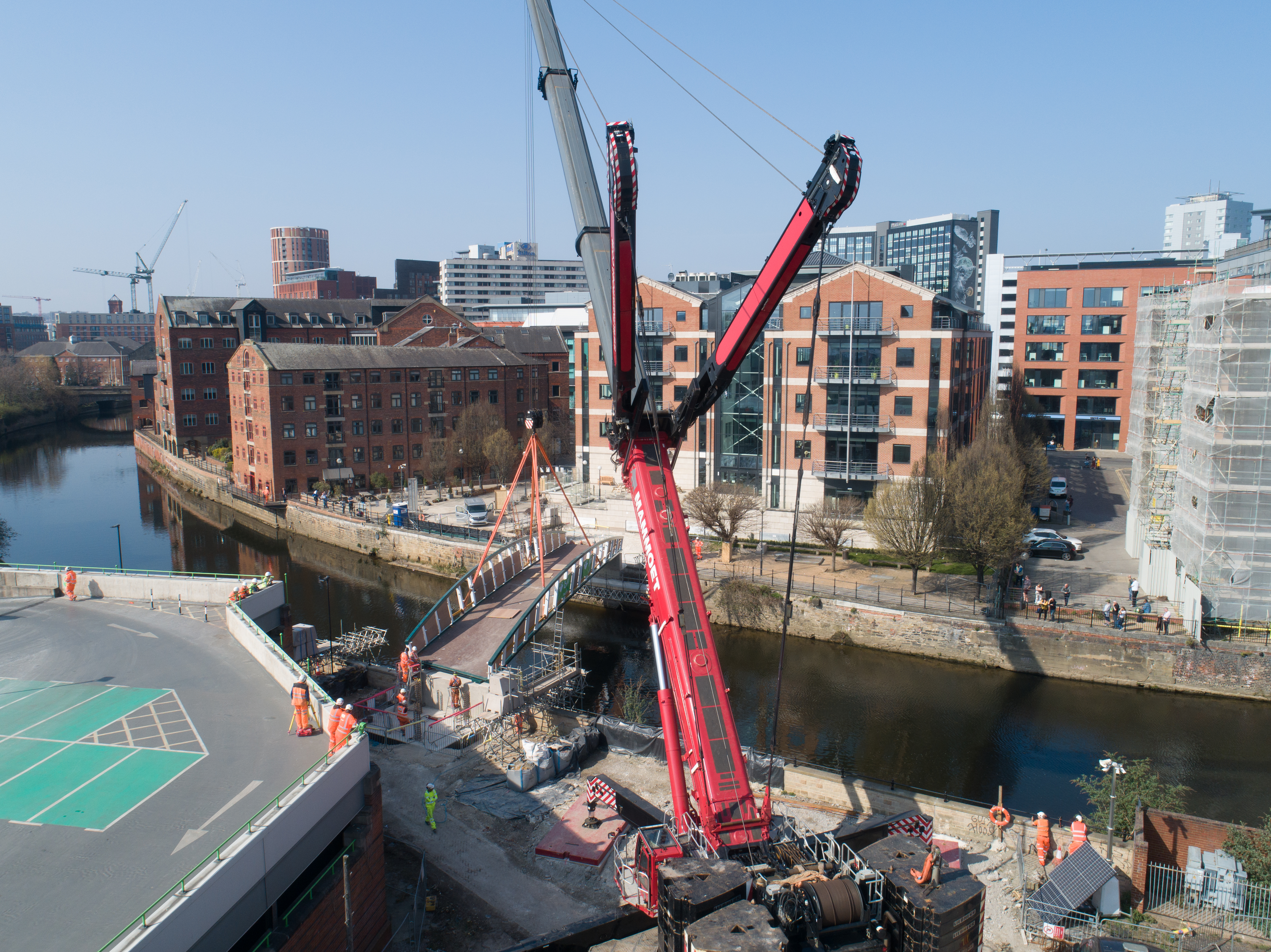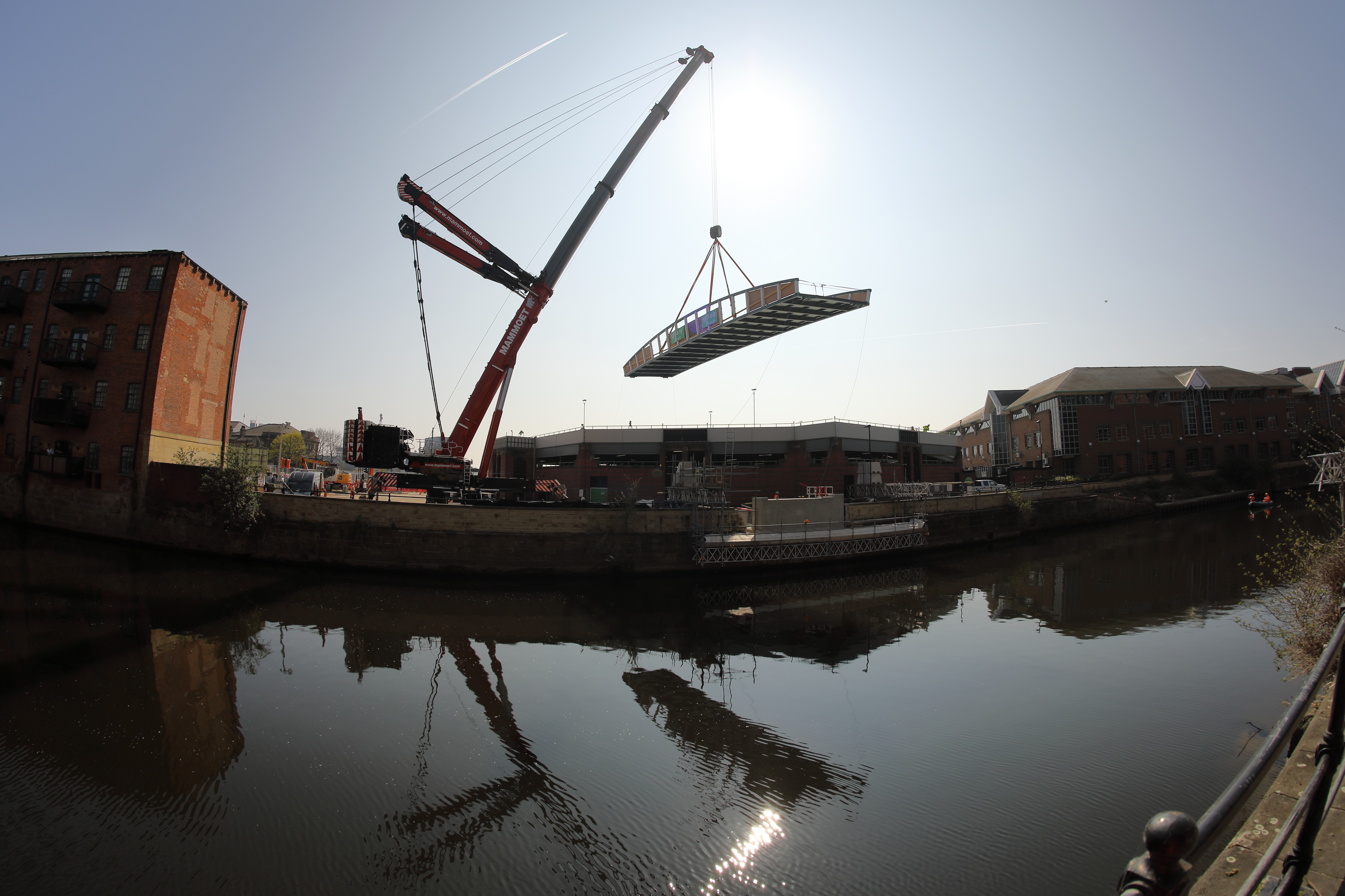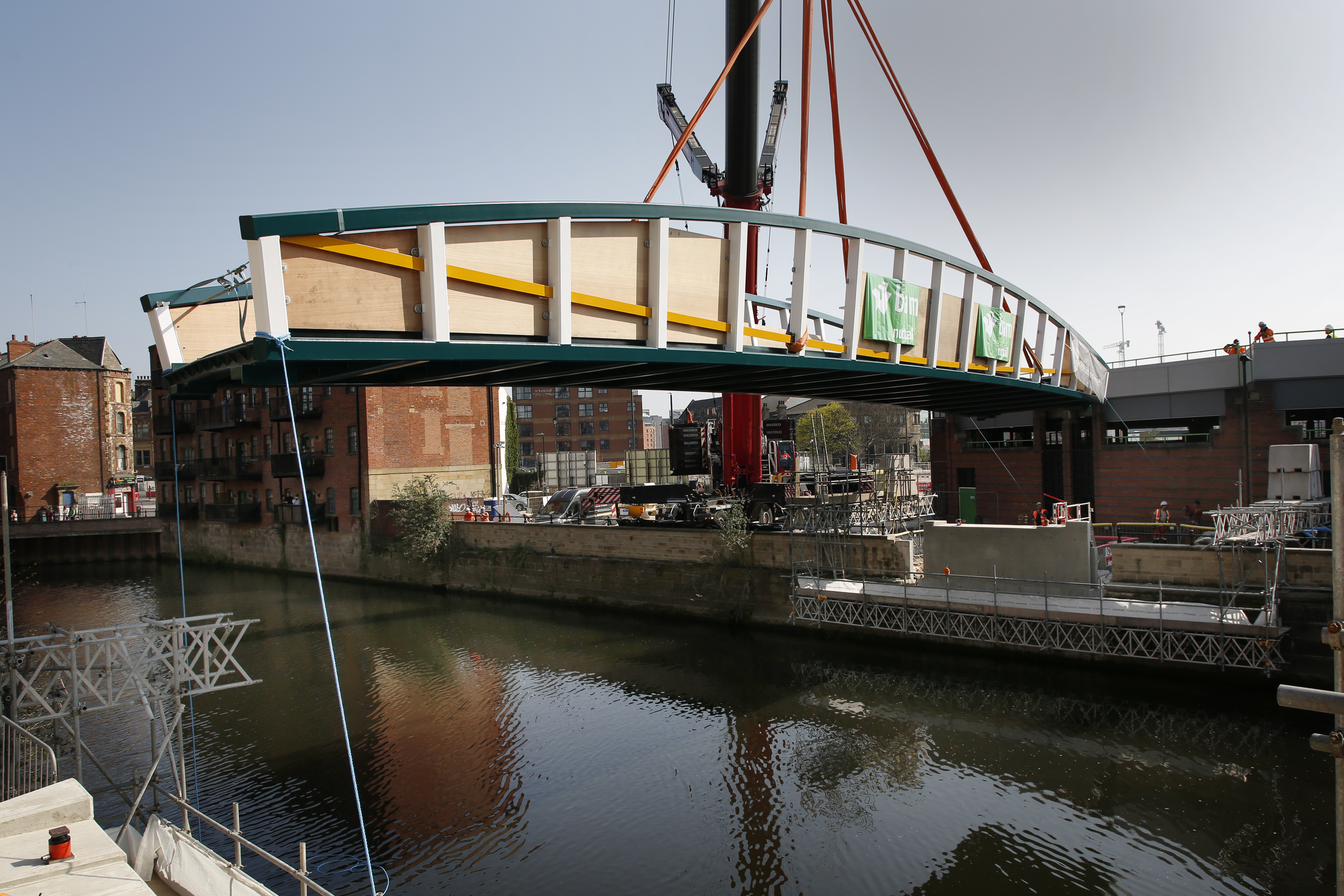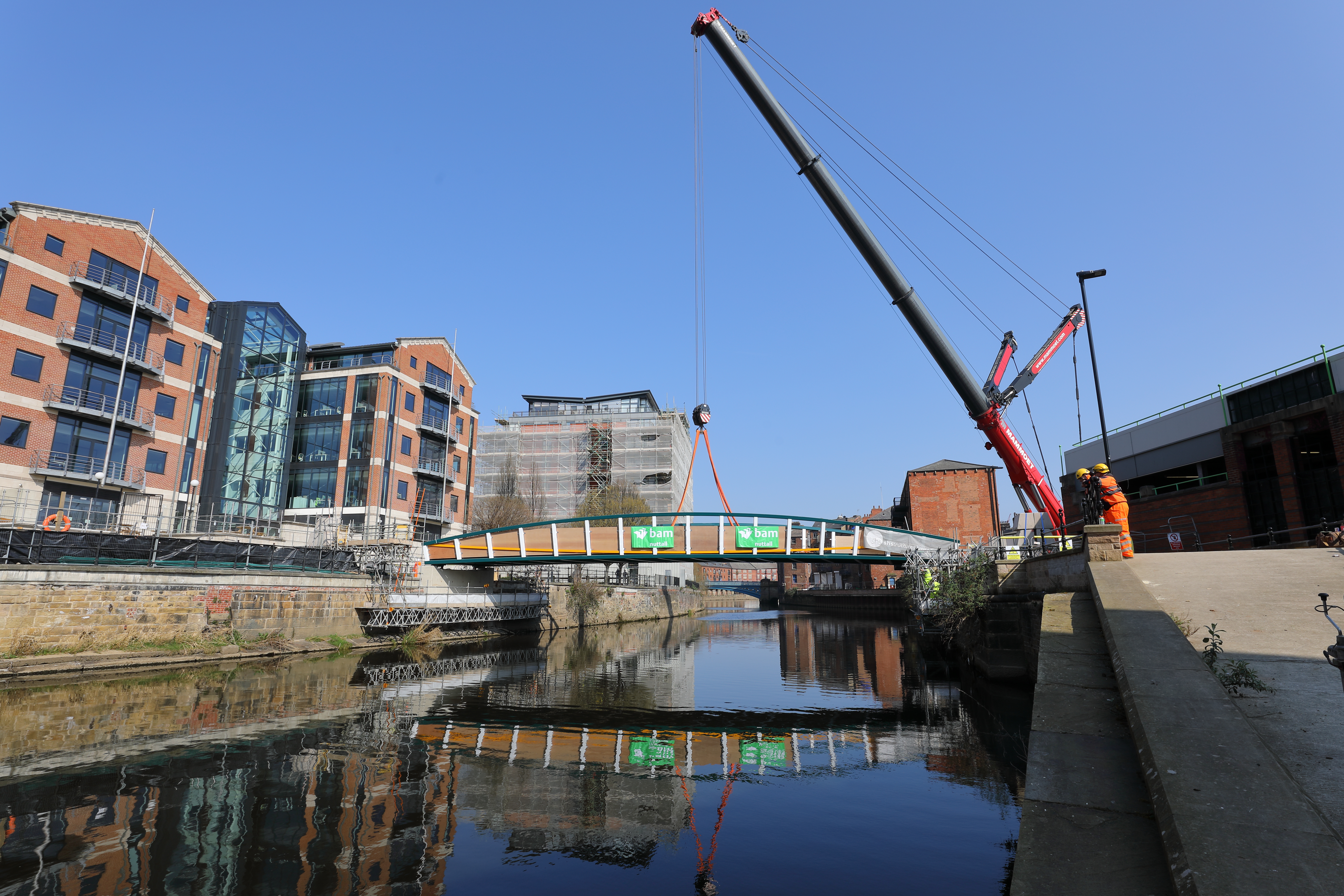 Engineers working on the David Oluwale bridge completed one of the project’s major milestones over the weekend, with cranes carefully placing the 40 tonne structure over the river where it will connect Sovereign Street to Water Lane.