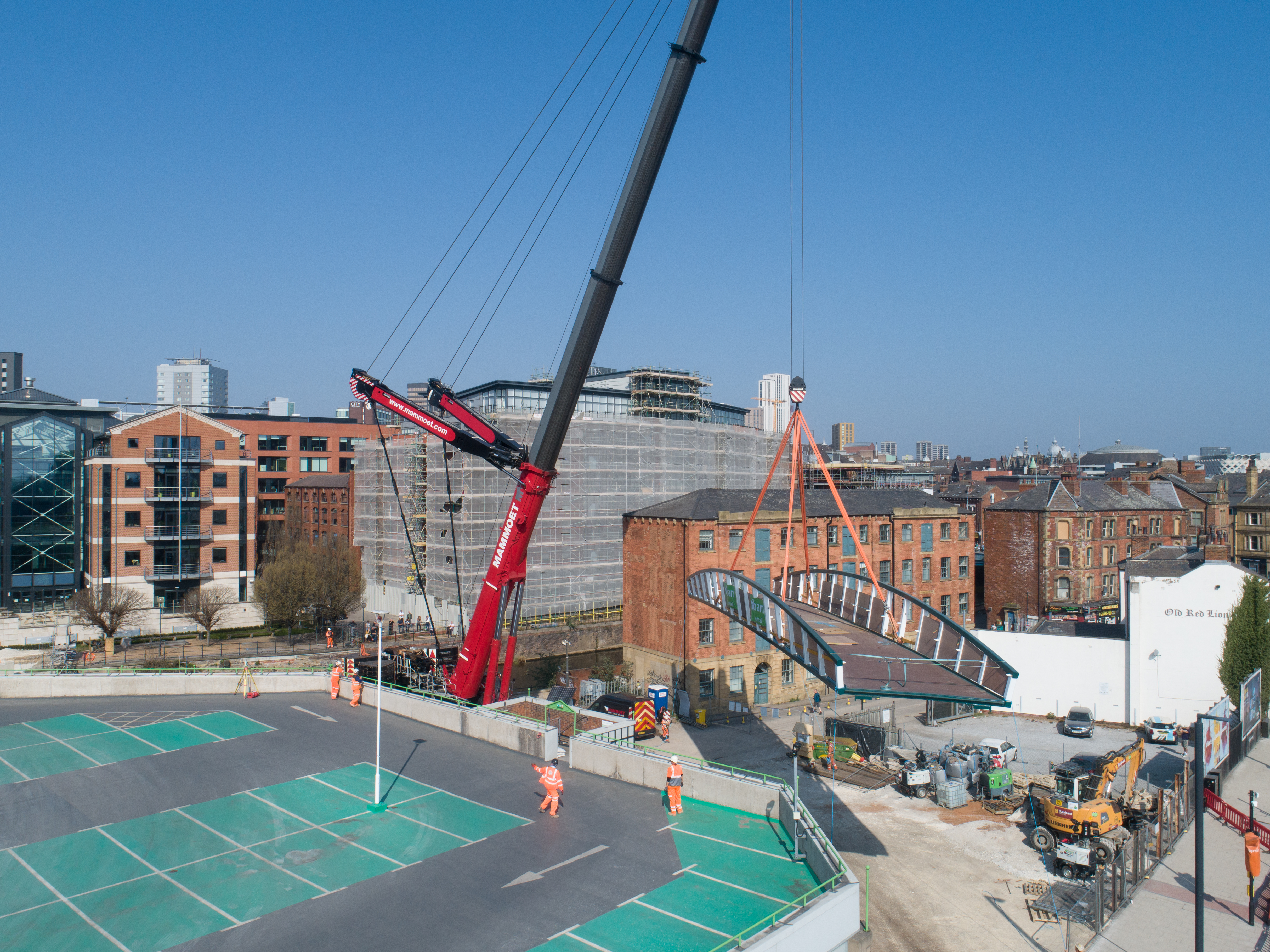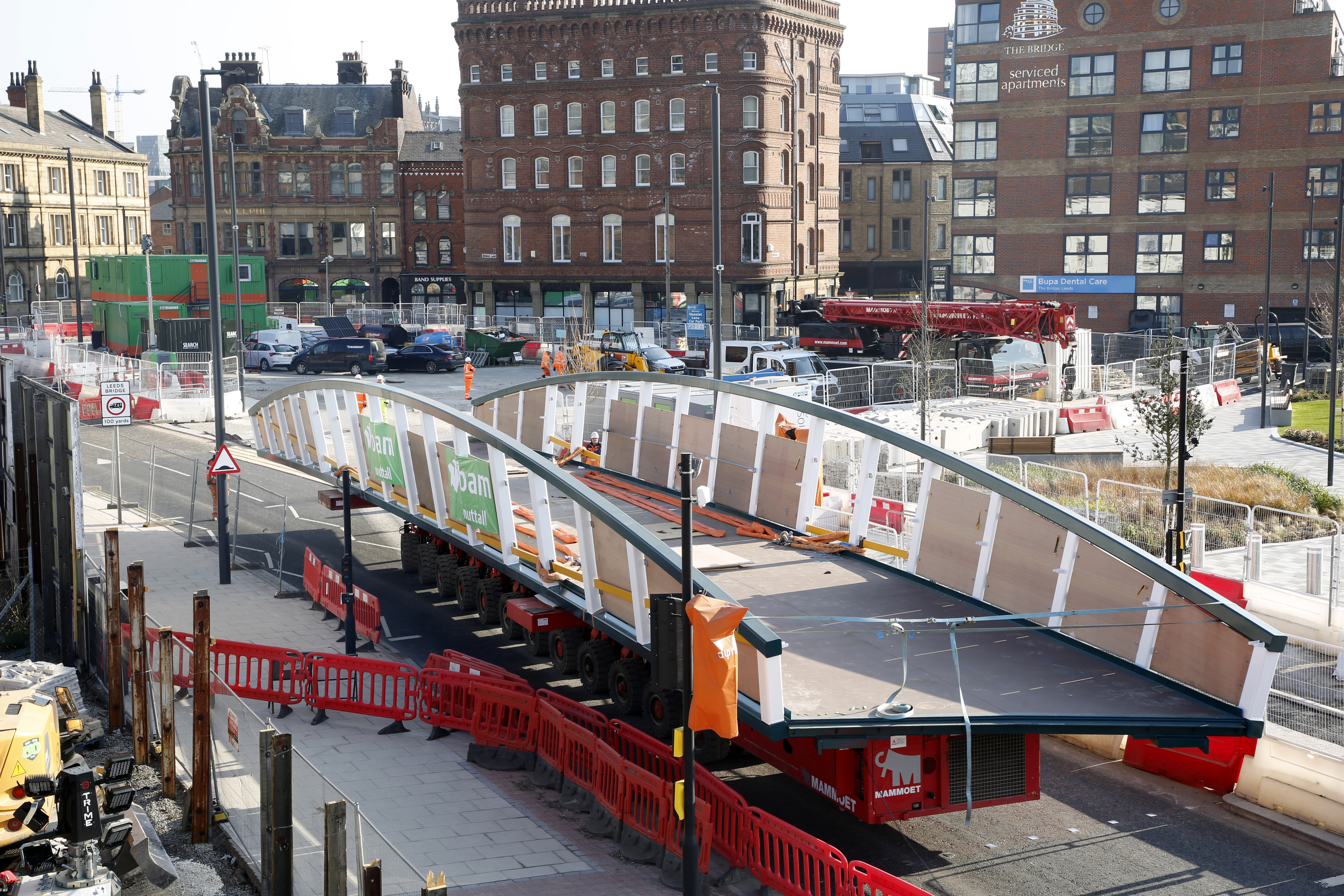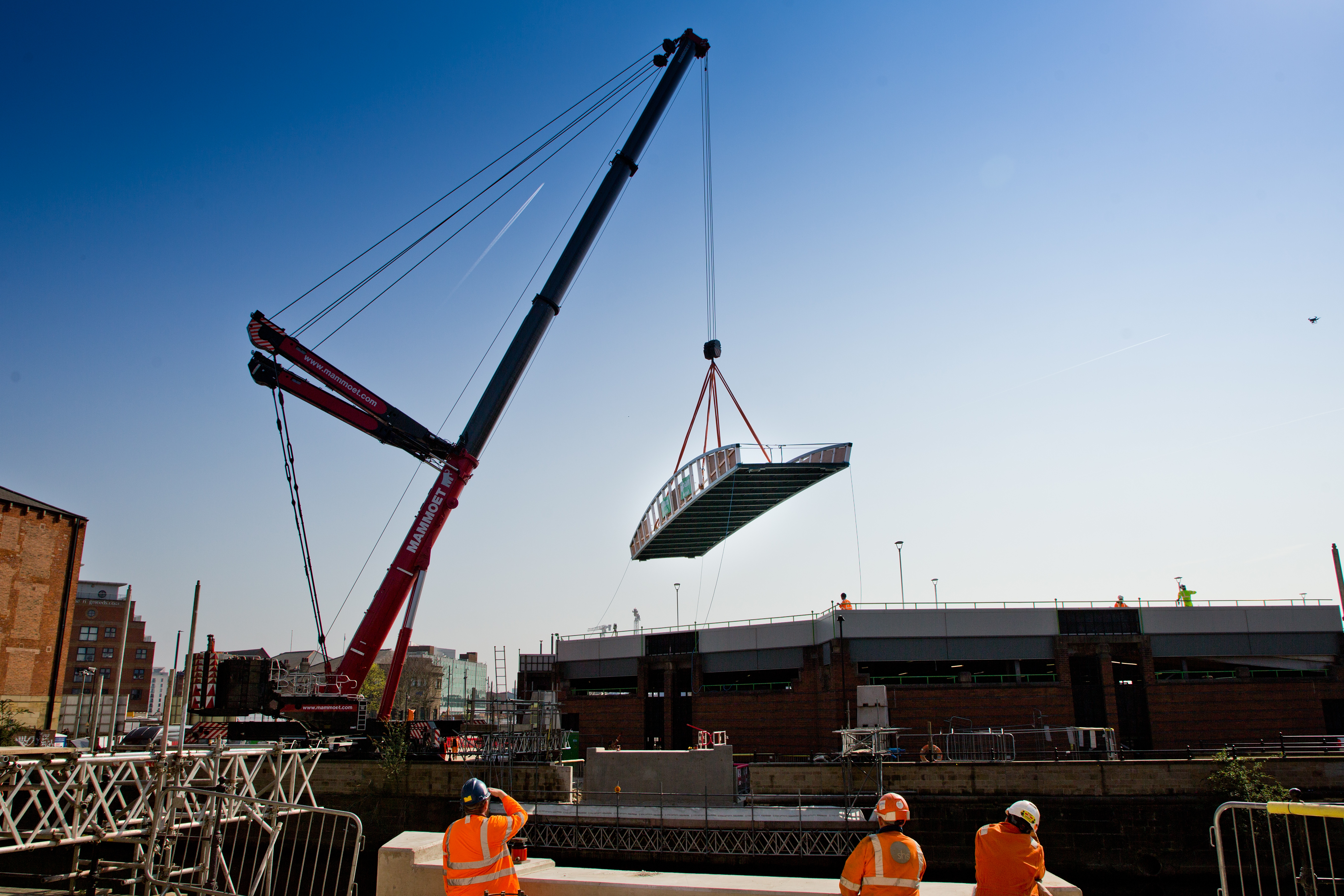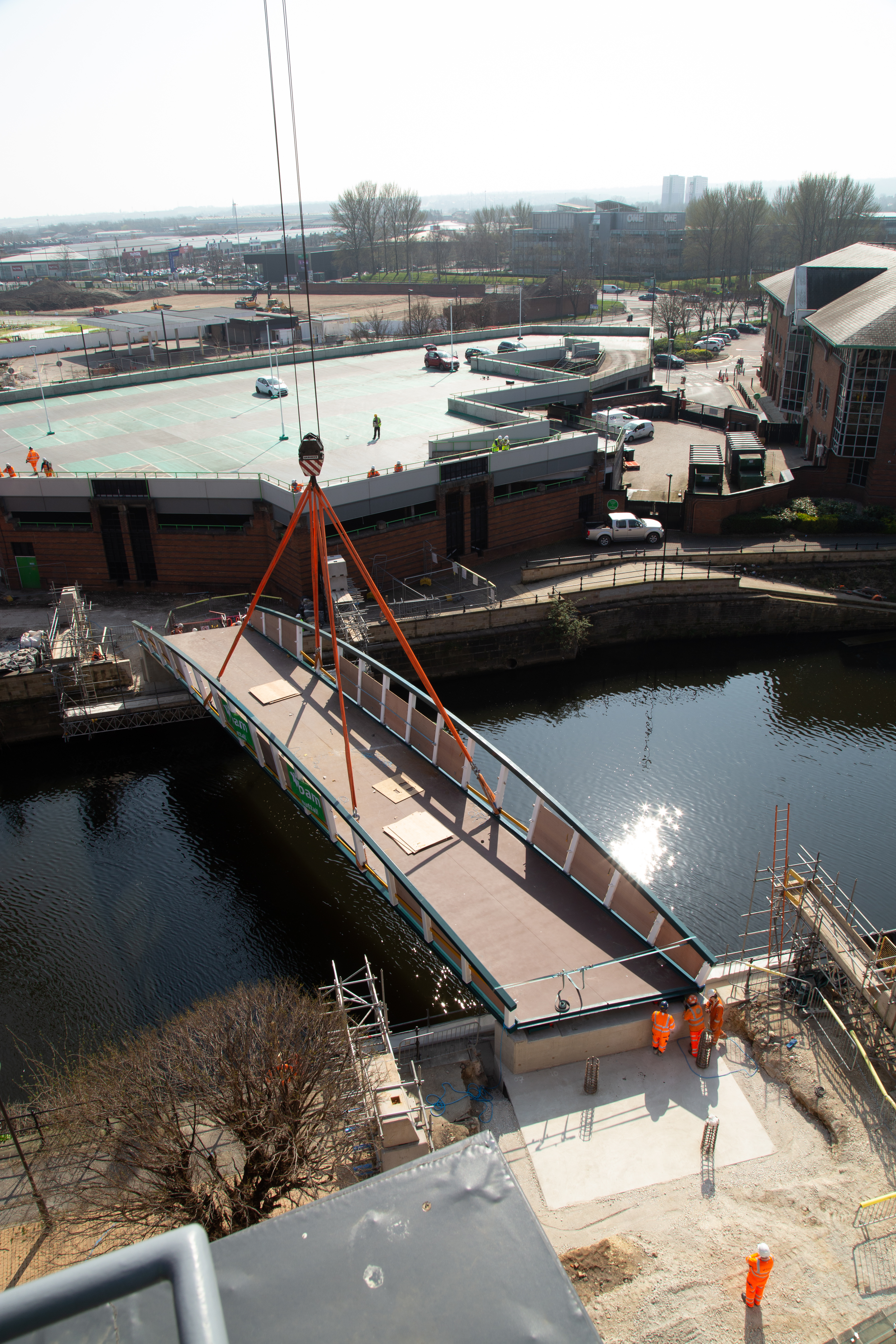 Engineers working on the David Oluwale bridge completed one of the project’s major milestones over the weekend, with cranes carefully placing the 40 tonne structure over the river where it will connect Sovereign Street to Water Lane.