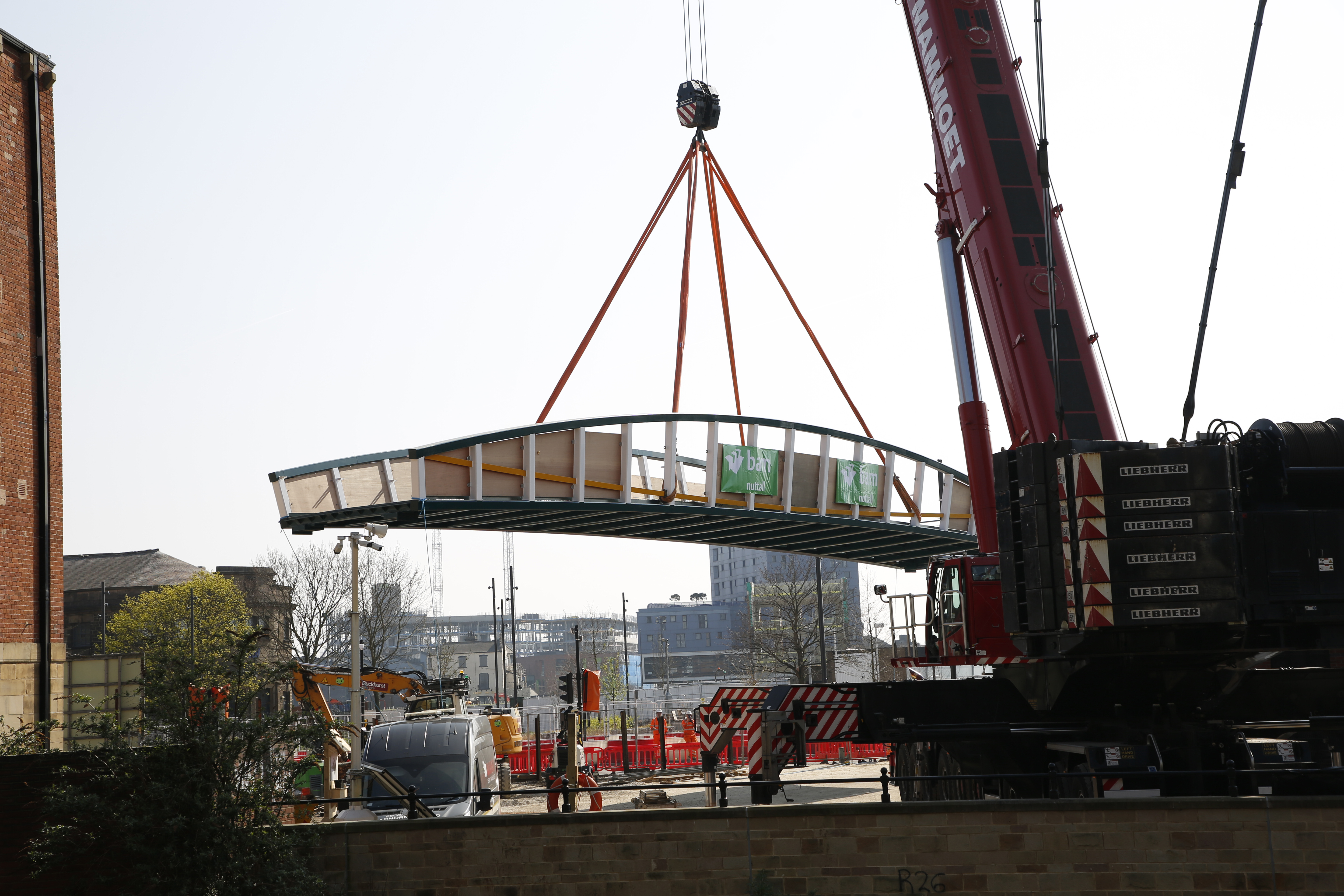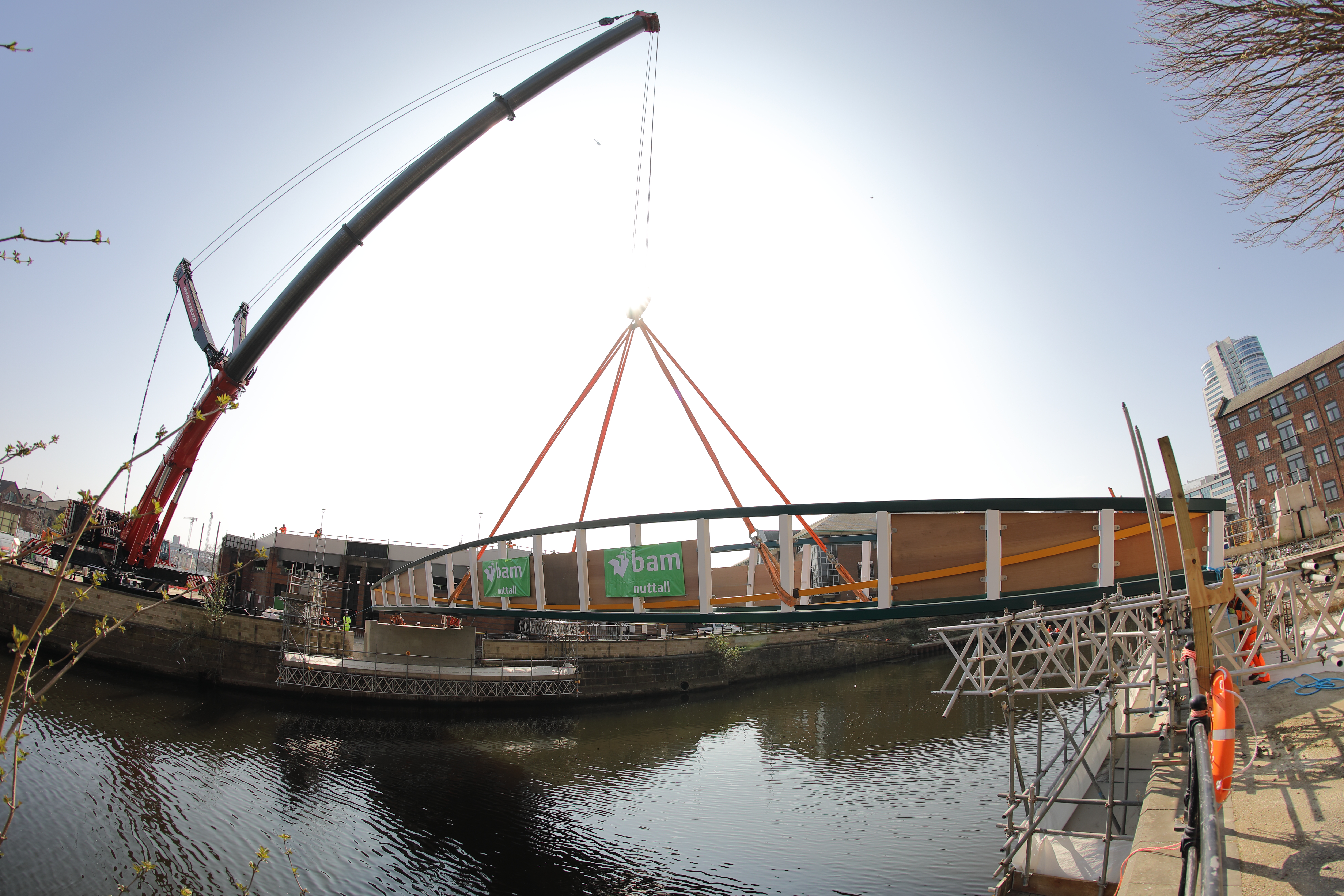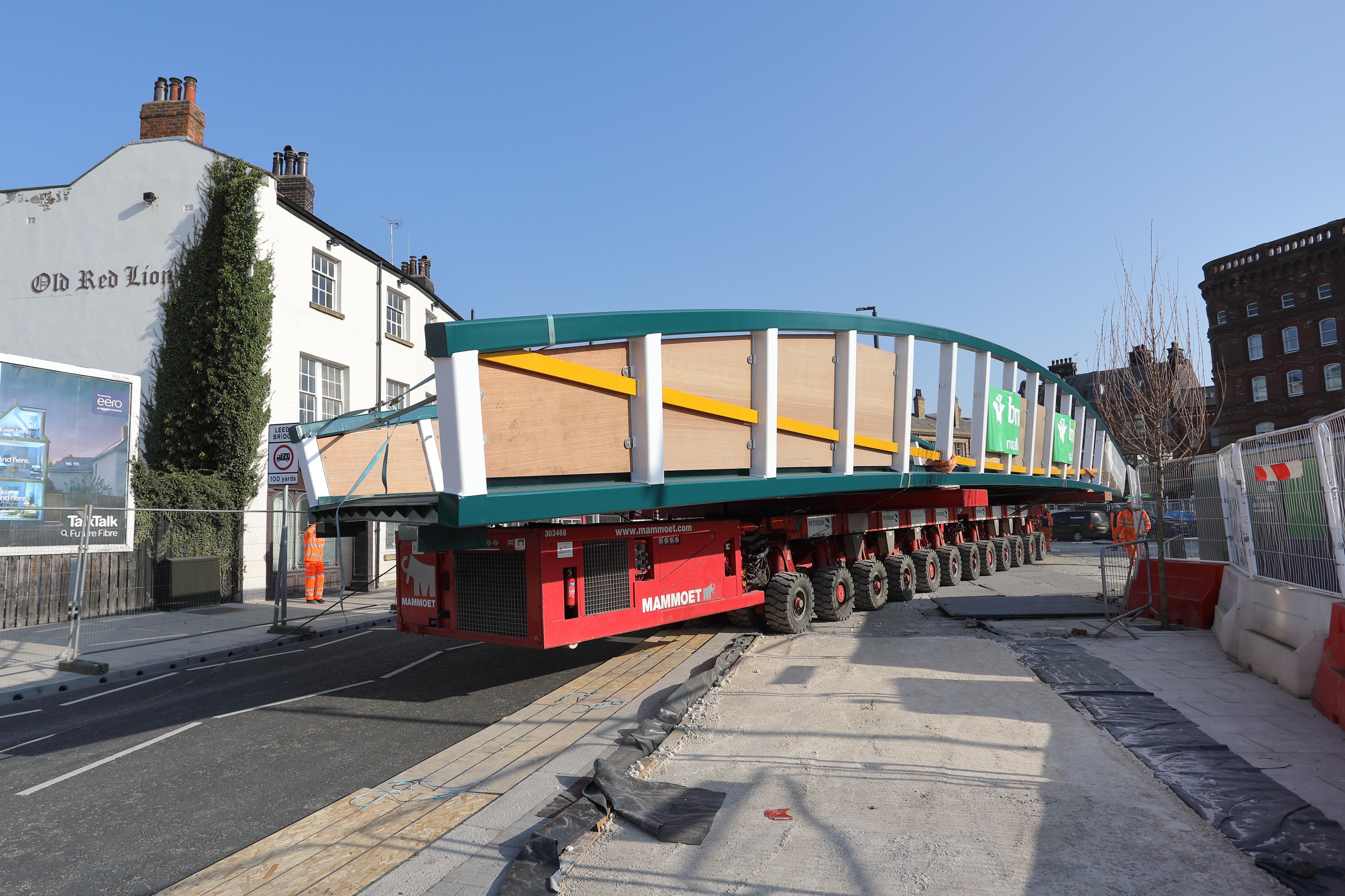 Fabricated locally in Yorkshire, less than 20 miles from the site, contractors BAM Nuttall used huge specialist equipment to transport the 30m long bridge to the riverside before carefully installing it with a crane.