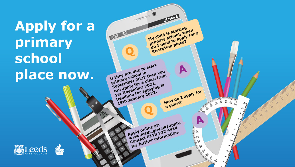 The deadline to apply for a Leeds primary school place (reception) for September 2022 is next Saturday (January 15th).