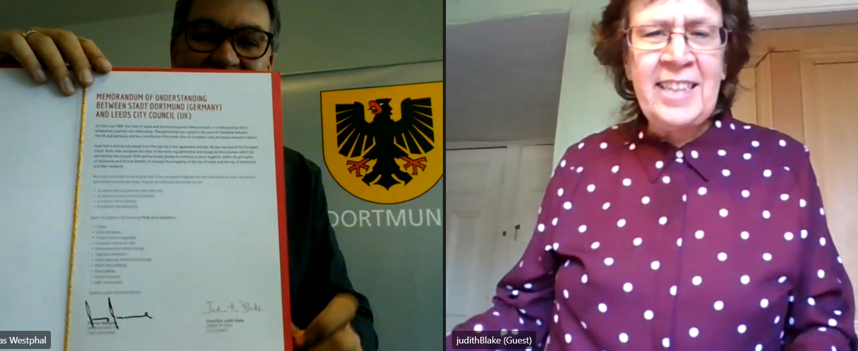 “In light of Brexit and the worldwide pandemic, the signing of this new agreement is a strong symbol for the basic idea of a united Europe. This Memorandum of Understanding promotes the bilateral cooperation between Leeds and Dortmund as big cities with closely linked communities. I would like to thank my colleague Councillor Judith Blake for initiating the signing of this new agreement.”