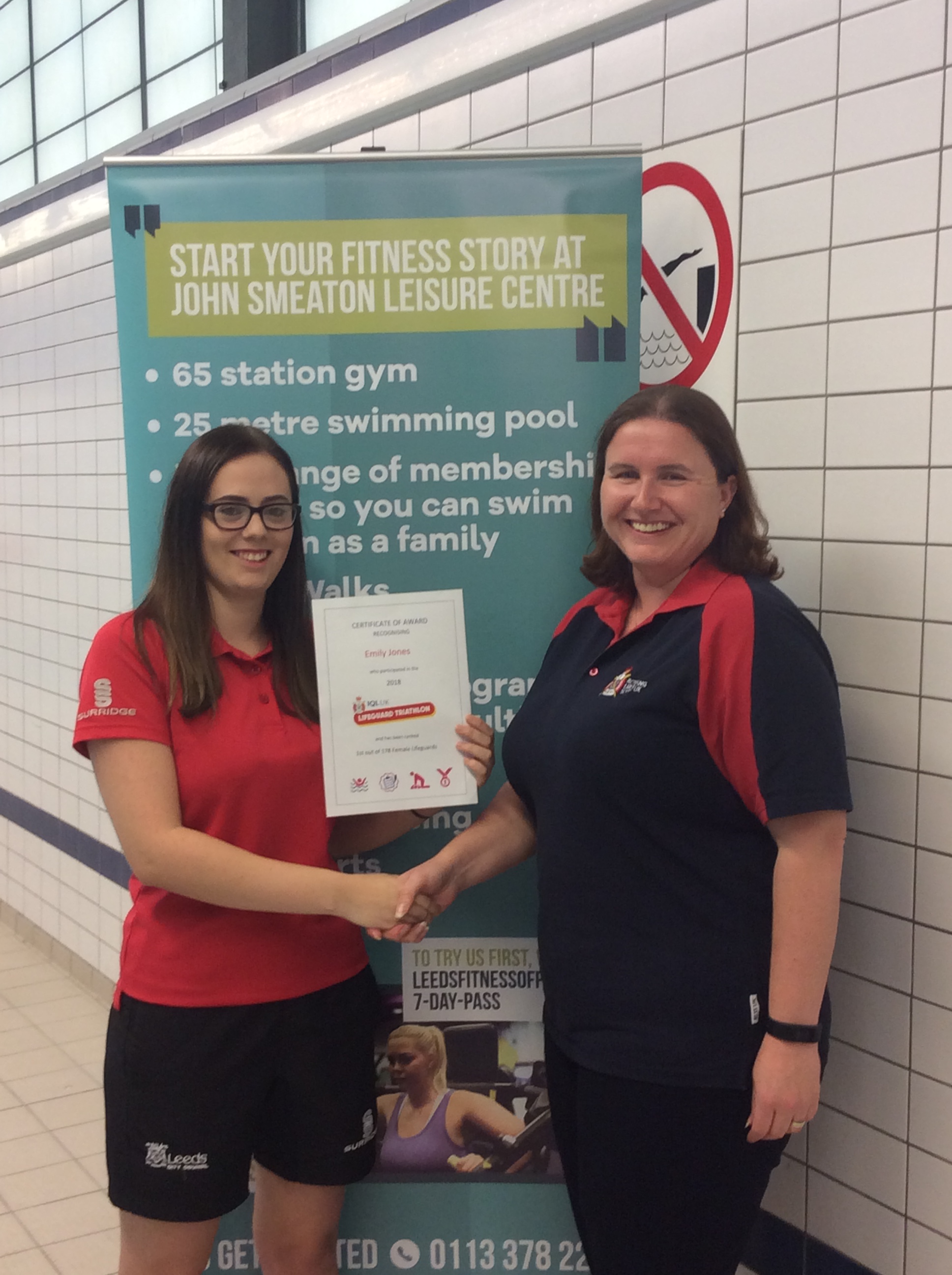 On hand to present Emily with her award at John Smeaton Leisure Centre was Helen Pendlington, customer engagement manager for the IQL/RLSS.