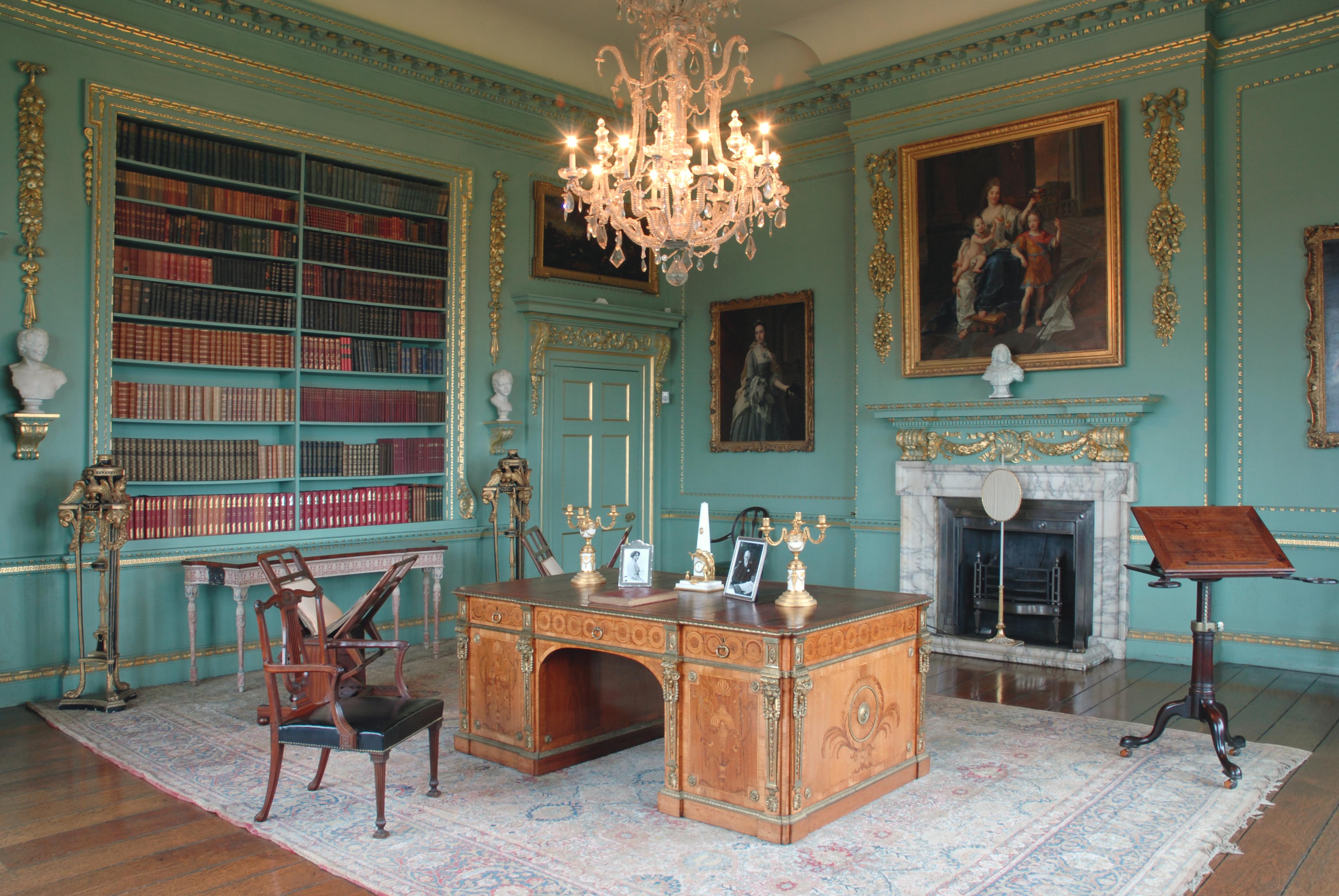 Intended to be the centrepiece of the room, the desk is fashioned from a combination of rosewood, oak, pine, mahogany, beech, tulipwood, satinwood, sycamore and holly.