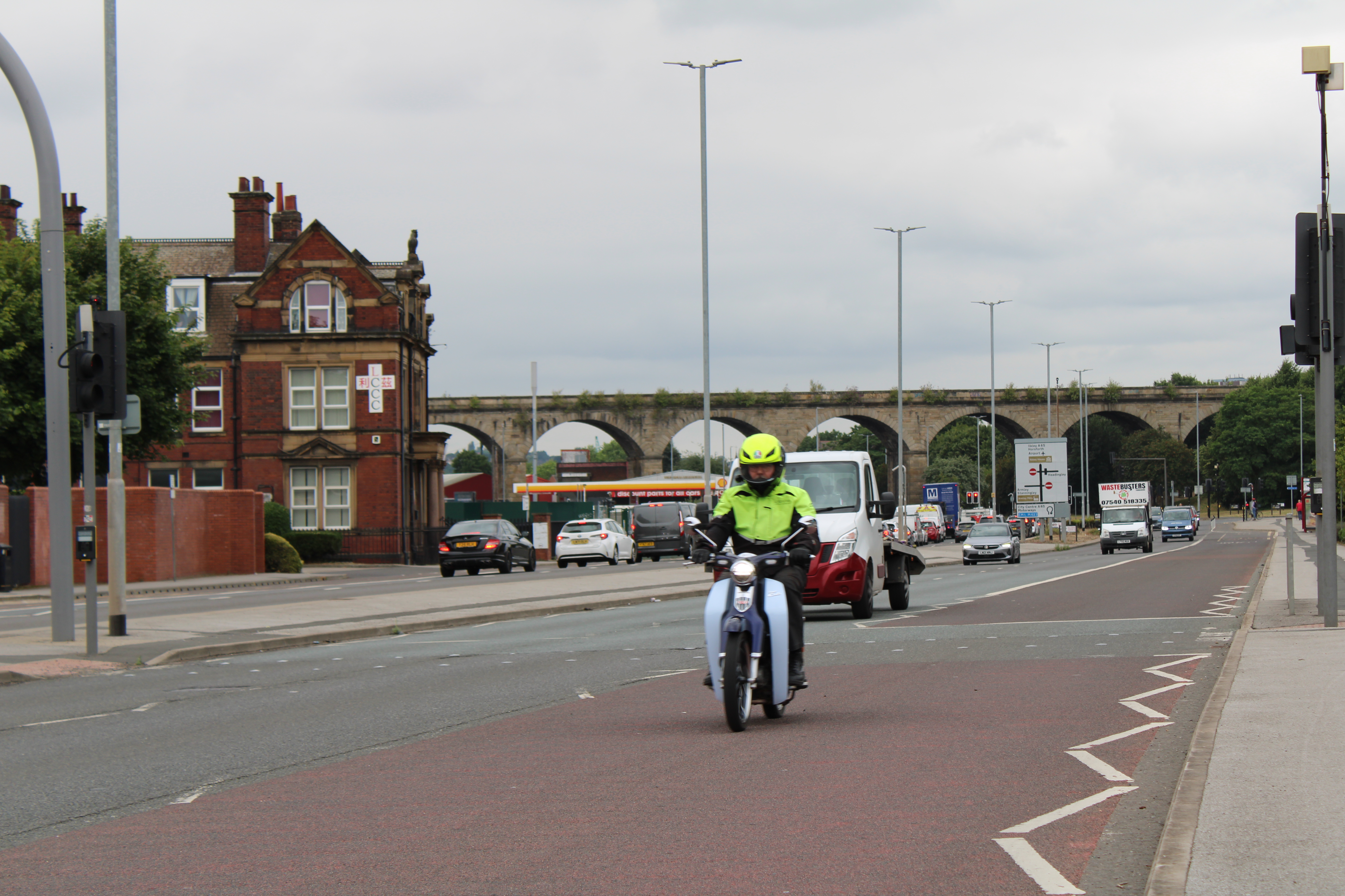 From Friday the 29th of July 2022 to the 28th of July 2023, motorcycles (including scooters) in Leeds can use the A65 bus lanes between Kirkstall and the city centre.