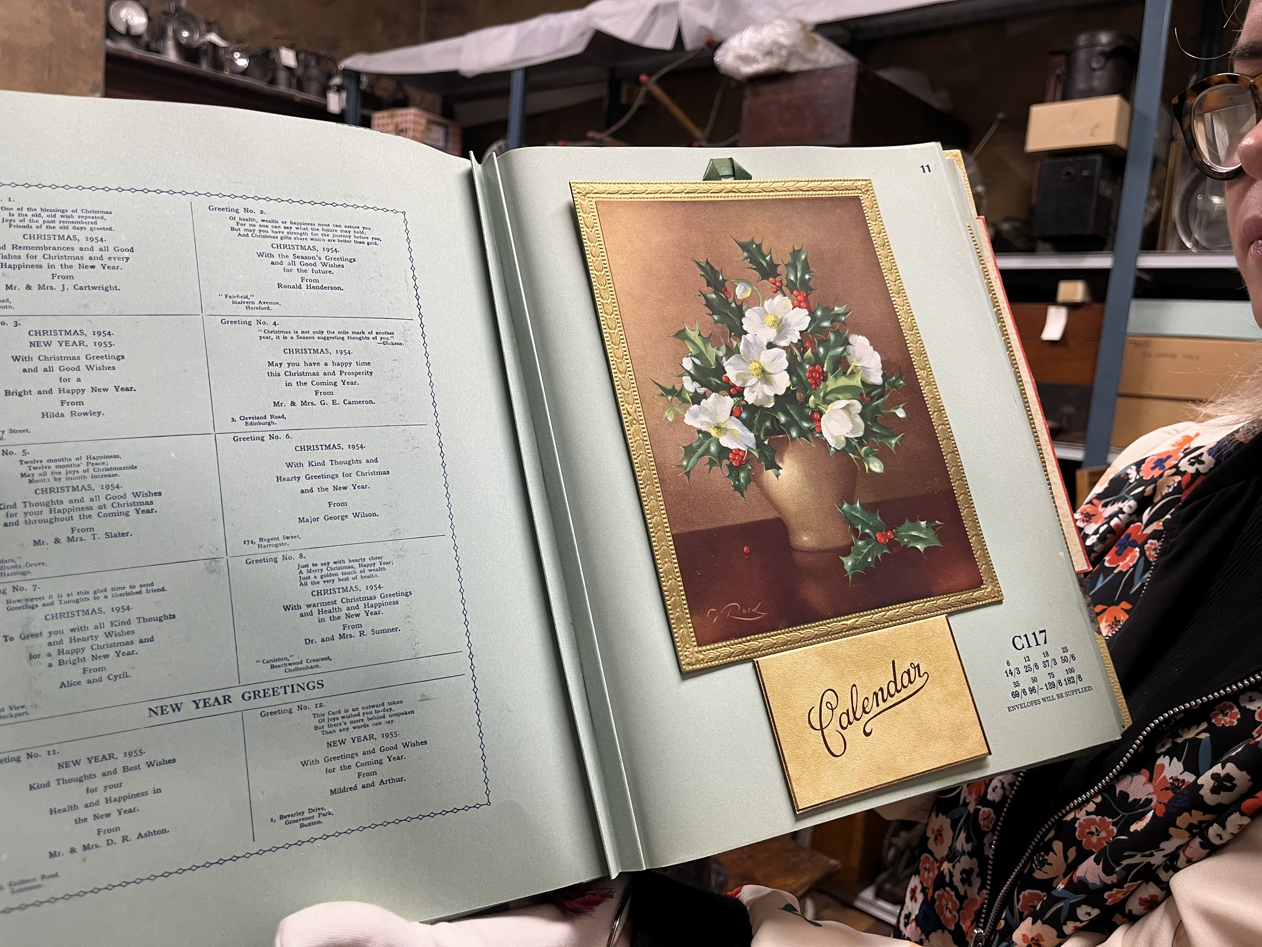 Among the vast selection of pieces being carefully cleaned and assessed is a beautiful catalogue of corporate Christmas cards and calendars printed in the 1950s.