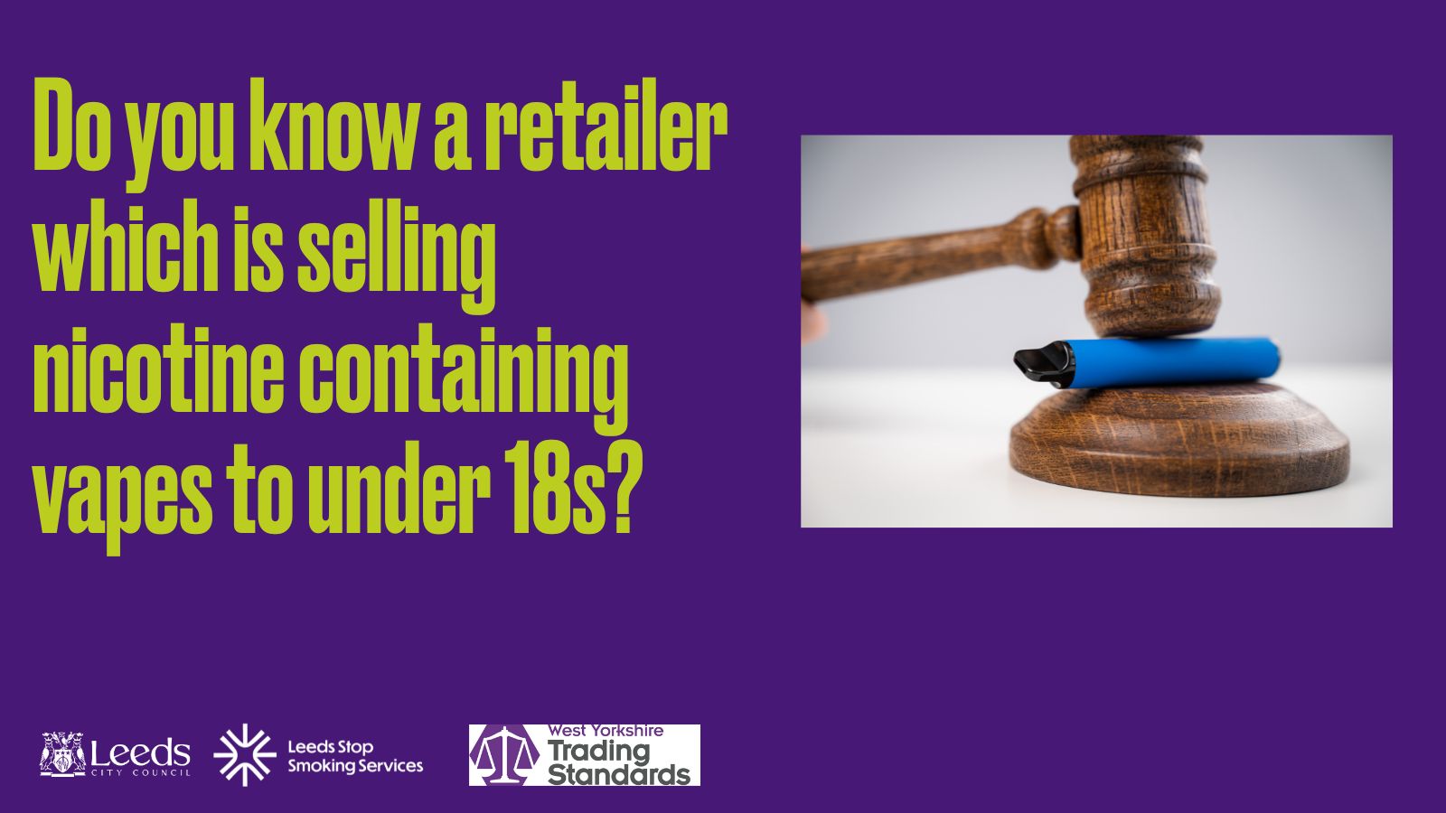 Leeds City Council and West Yorkshire Trading Standards have joined together to warn retailers it is illegal to sell vapes containing nicotine to under 18s and to promote the facts about vaping to parents, carers and children.