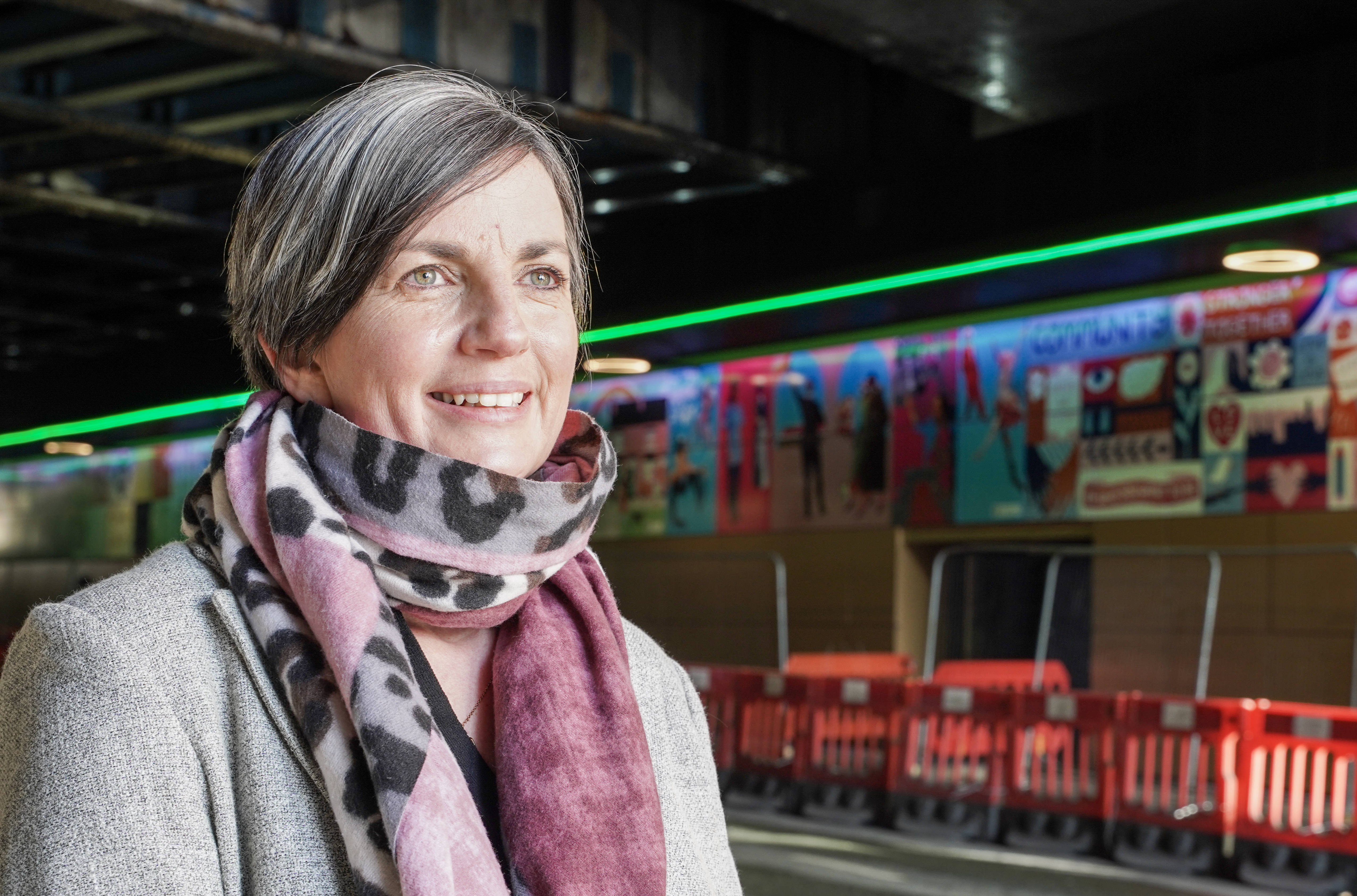 Above: Councillor Helen Hayden with the new Neville Street artworks.