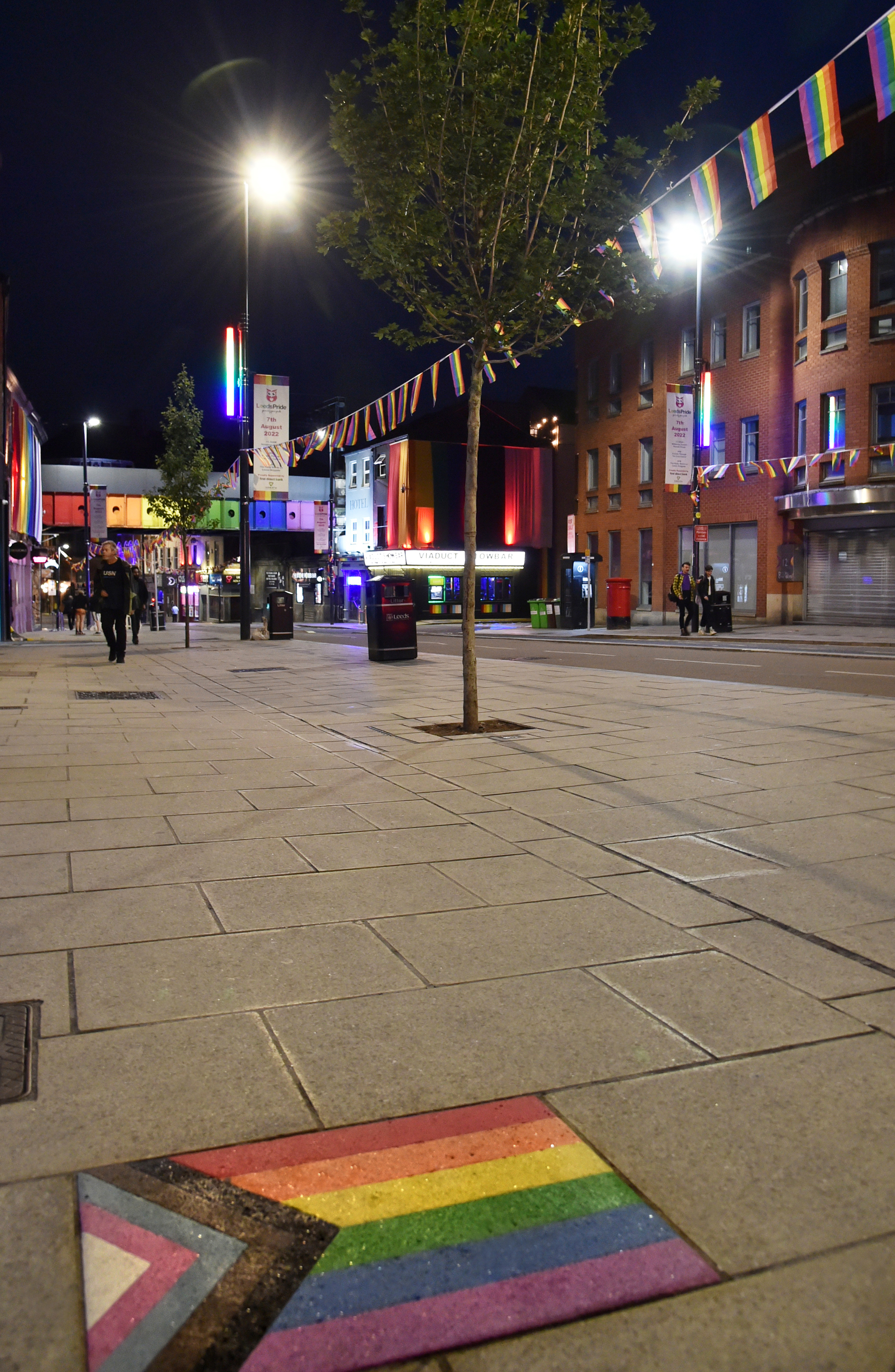 The popular street, location of many of Leeds’ LGBTQ+ nightclubs and venues and one of the main areas for Leeds Pride this weekend, gets a permanent rainbow lighting addition.