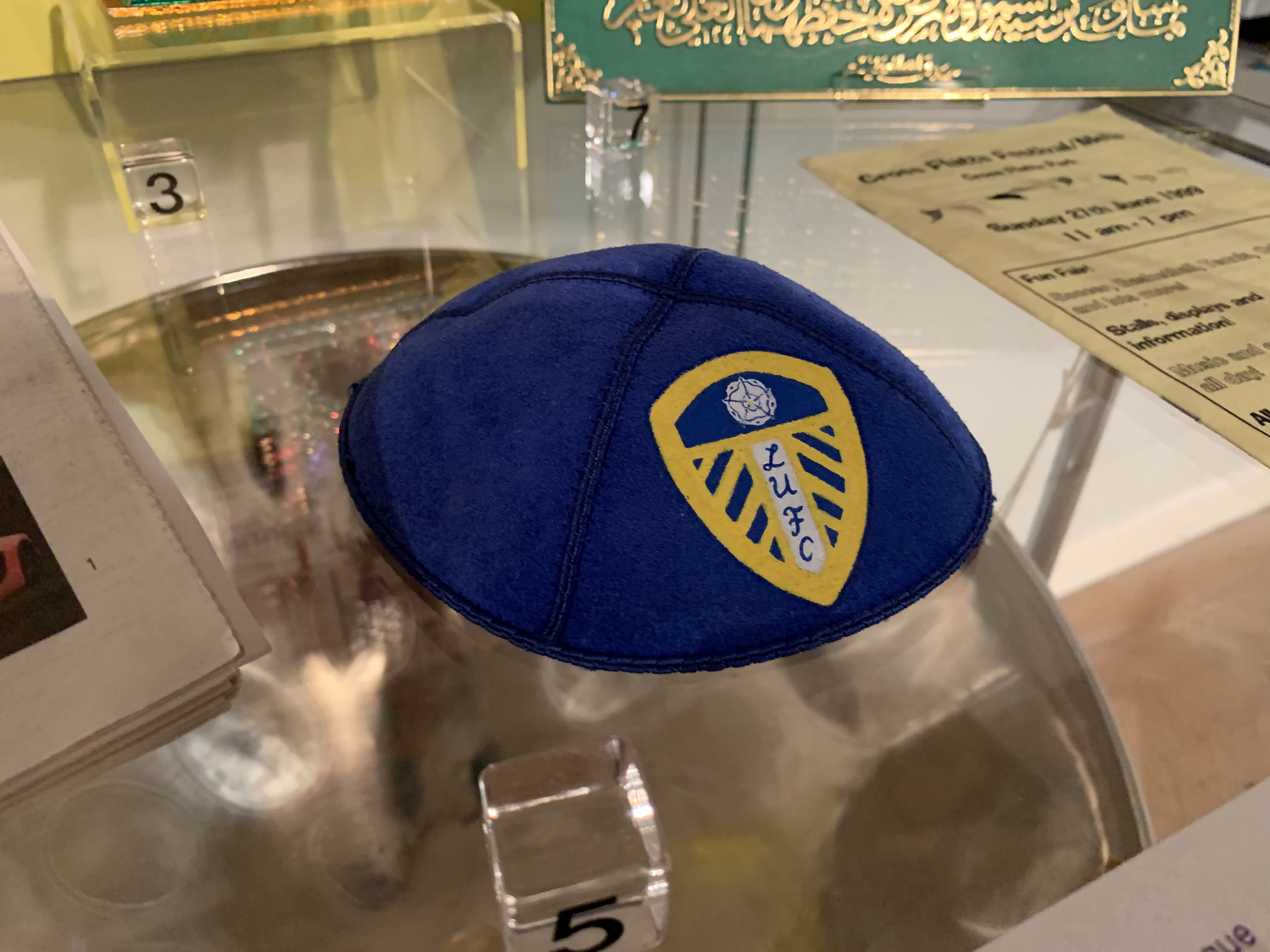 Decorated with Leeds United’s unmistakable crest, the traditional Jewish headdress is part of Leeds City Museum’s new A City and its Welcome: Three Centuries of Migrating to Leeds exhibition.