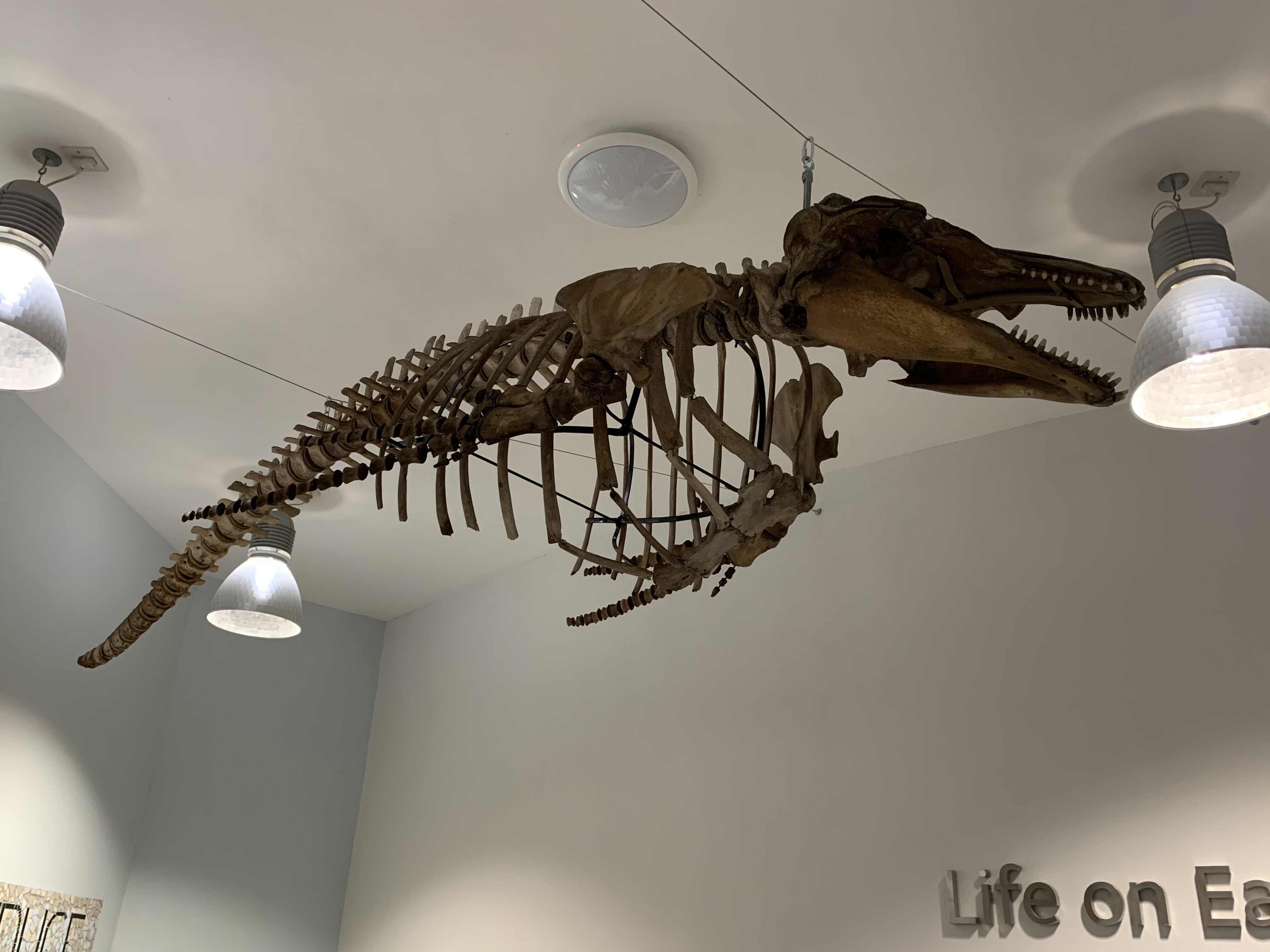 The bones of the 152-year-old aquatic animal have been reassembled and hung from the ceiling of the museum as part of a new eco-awareness project, made possible by money raised by National Lottery players.