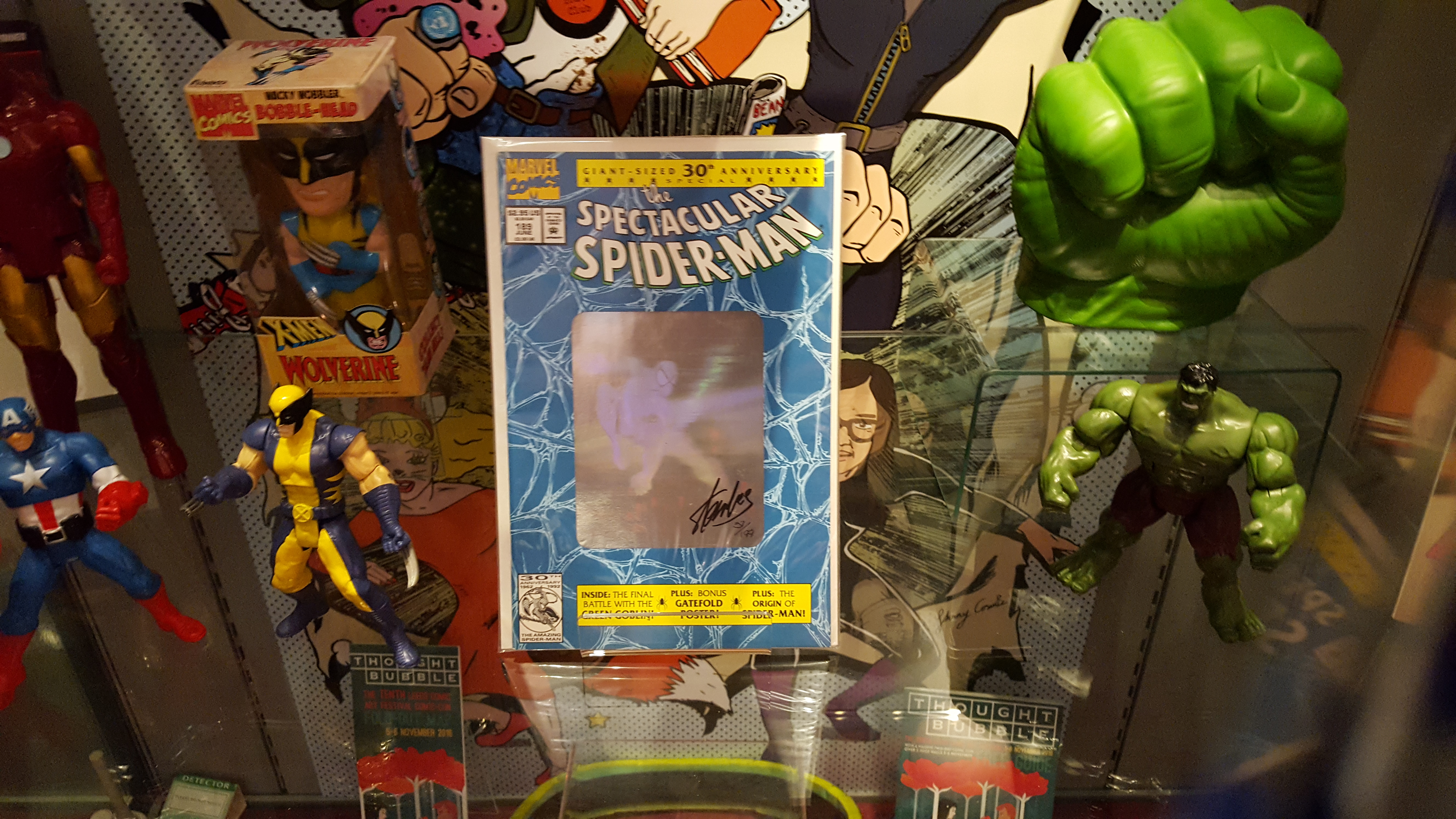 An edition of the celebration comic is now on display at Abbey House Museum in Leeds as part of their current Comics Unmasked display- with this particular copy bearing the signature of non-other than Stan Lee himself.
