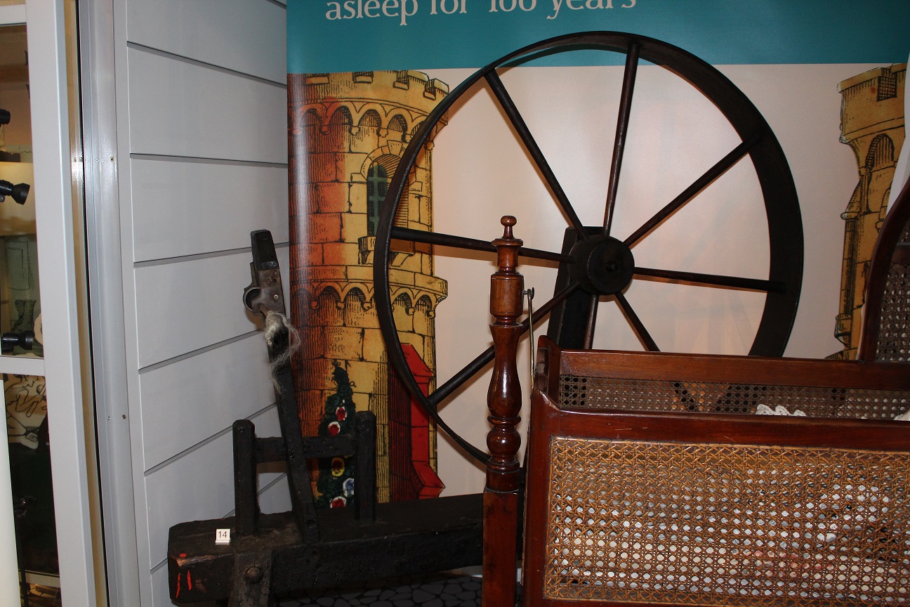 Originally, it was used for spinning flax, with a bobbin lead and separate pulley for driving the spindle and bobbin. But today it is on display at Abbey House Museum in an exhibition exploring the history behind some of the world’s best loved fairy tales.