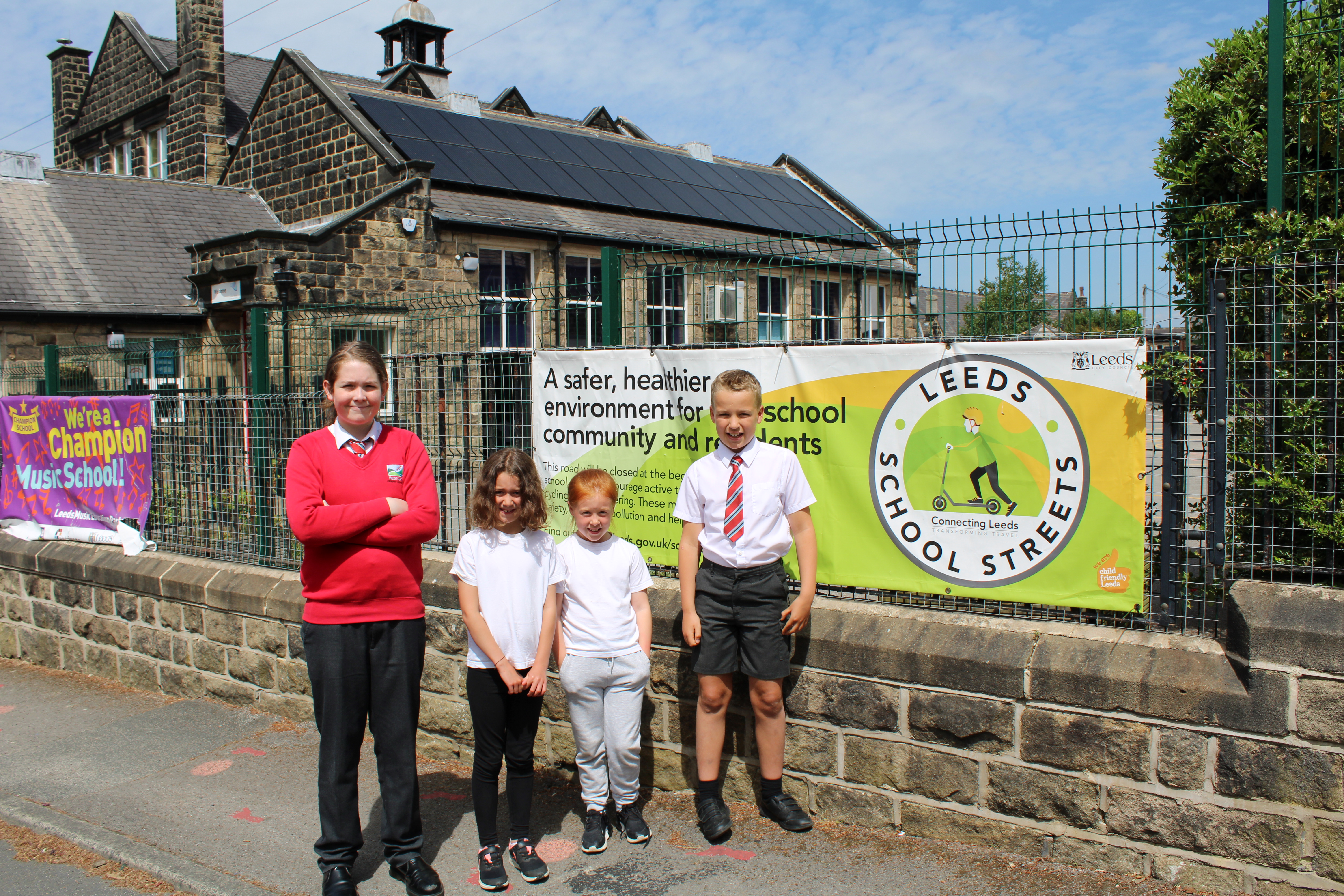 Managed by Leeds City Council, the School Streets scheme restricts traffic outside primary schools at opening and closing times. This reduces congestion around the school gates, makes the road safer for children and improves air quality for the local community.