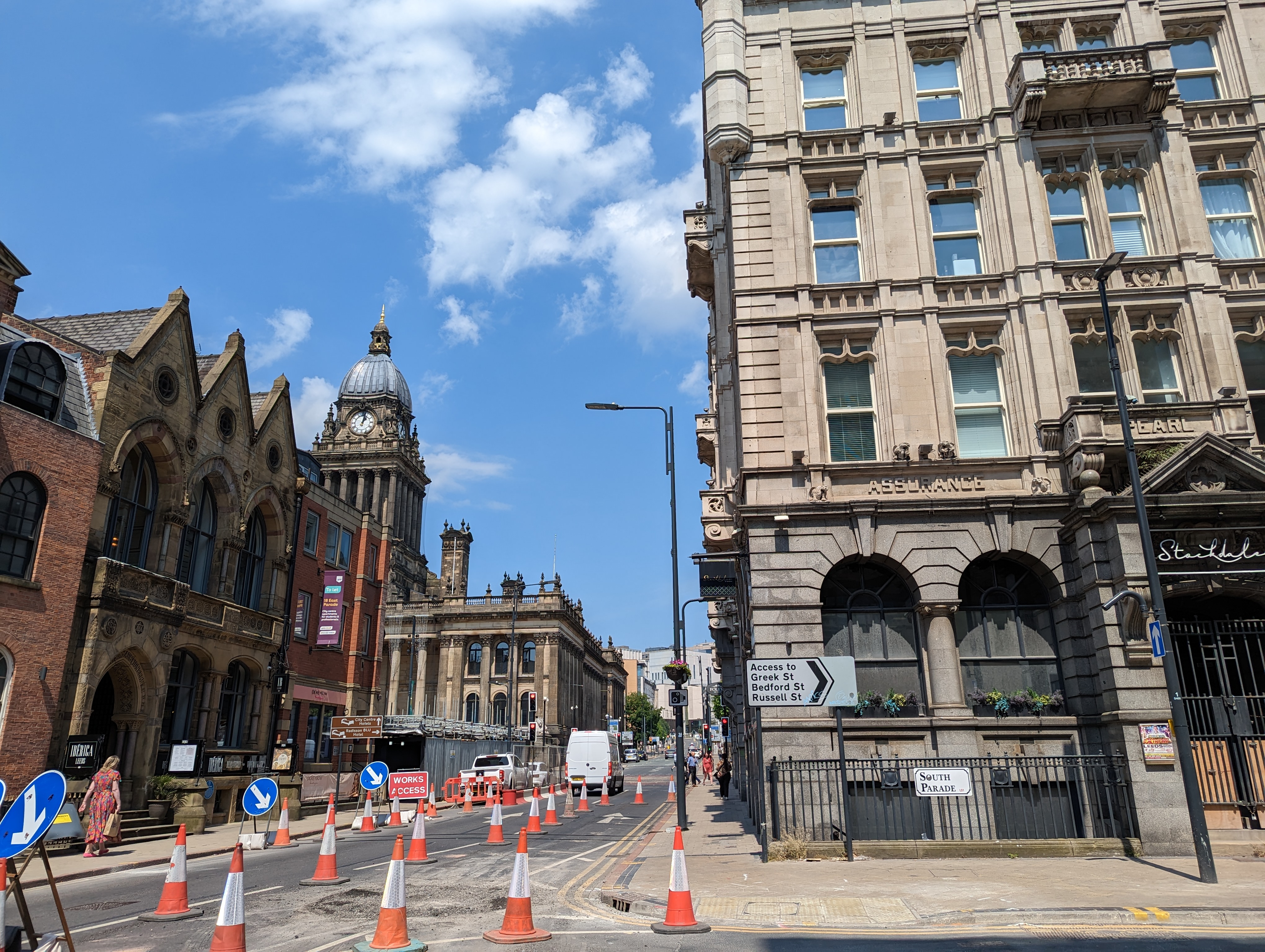 City Square works started in September 2022, with the initial closure of City Square to through traffic. Works have continued around the area including closing to traffic the Quebec Street access to City Square. In January King Street and Thirsk Row became two-way, to facilitate vehicle and bus movements. Current works are taking place at the junction of Aire Street and Wellington Street, as well as to the south of City Square in front of the Queens Hotel pick up and drop off area. More details about the phased changes can be found on the project website Have Your Say Today - Construction - Leeds City Square (commonplace.is).