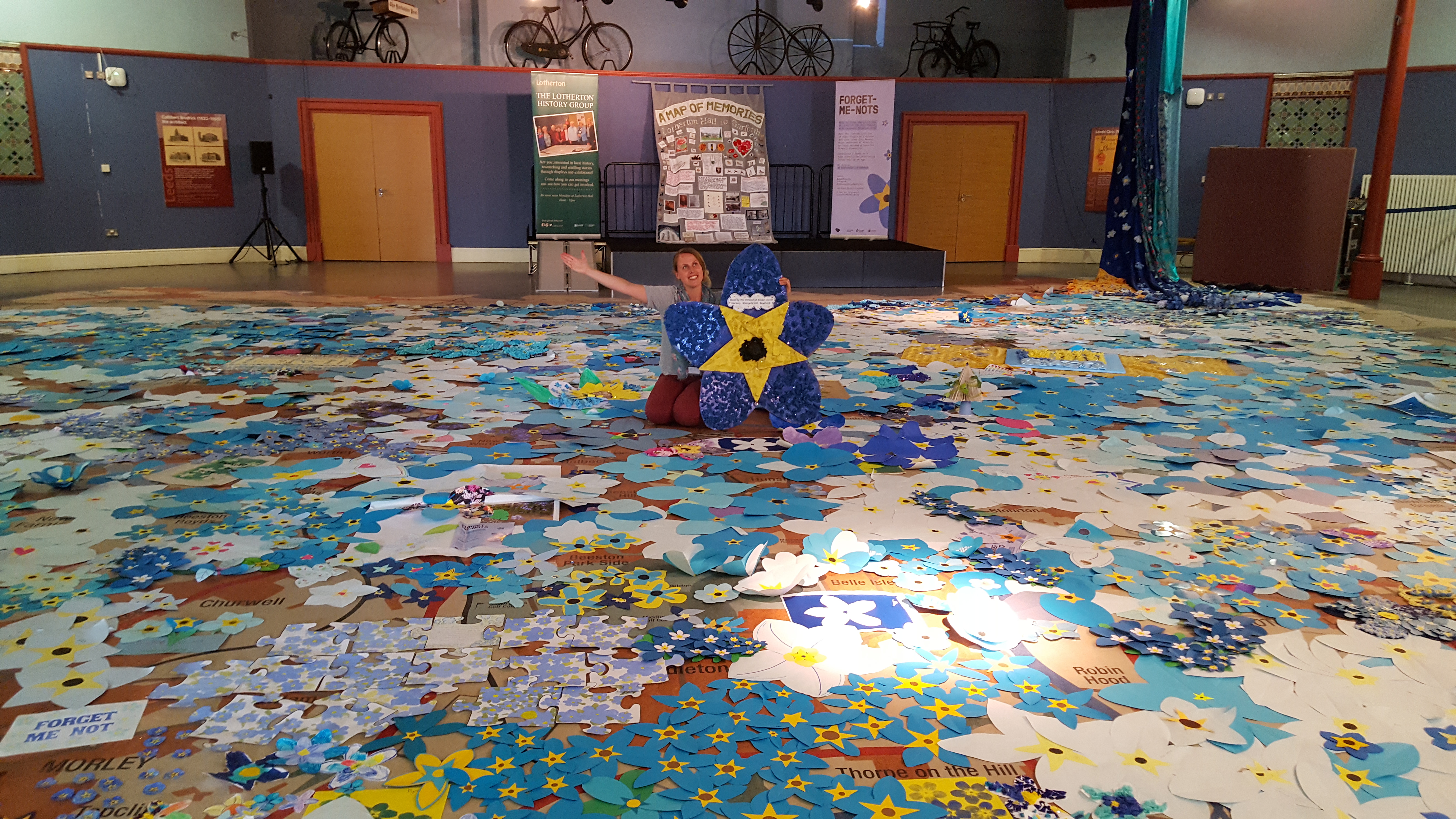A beautiful sea of thousands of handmade forget me nots has appeared at Leeds City Museum to raise awareness of dementia.