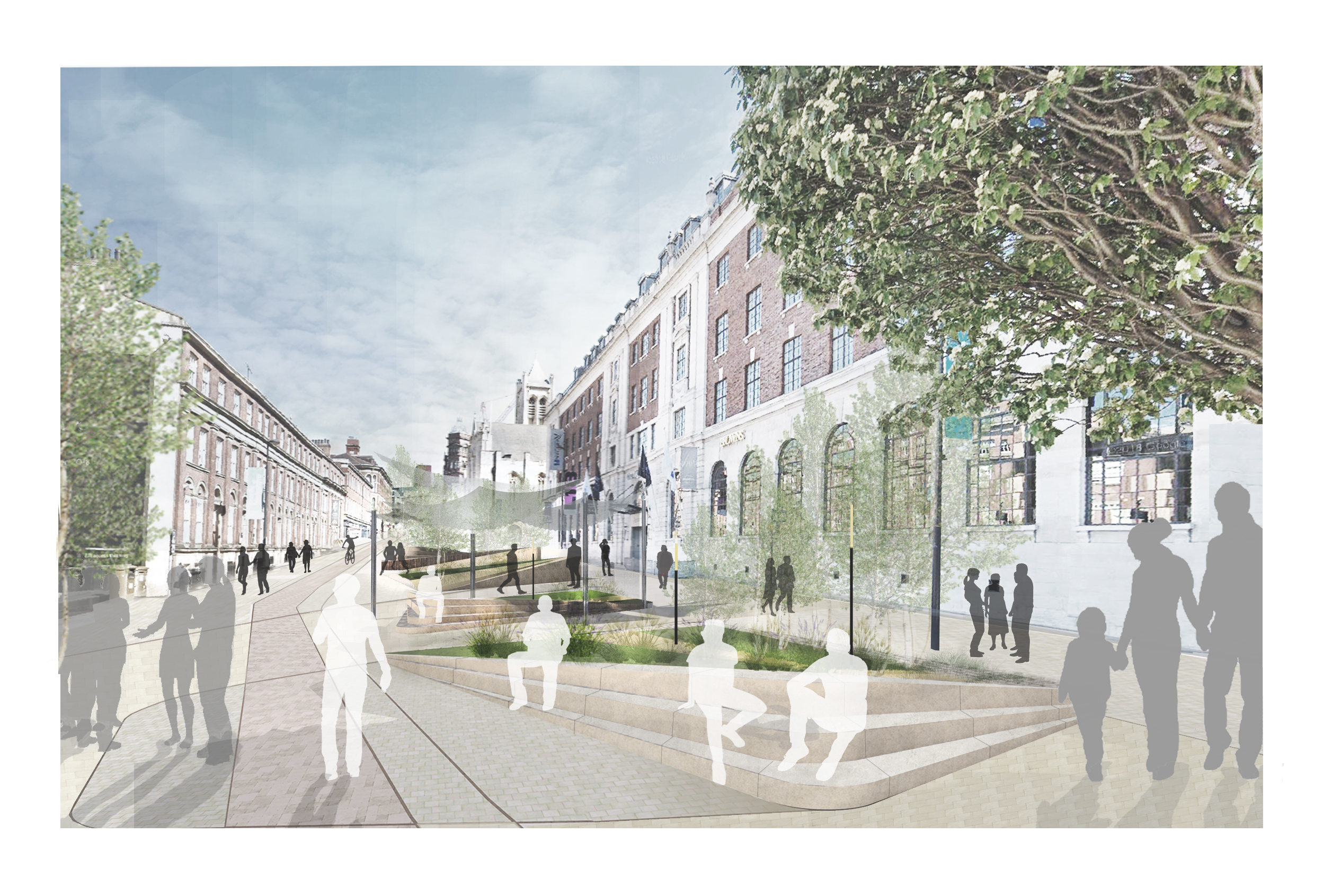 The Cookridge Street design is based on principles for a public space offering seating, tree planting, rain gardens, incidental play, cycling and street cafes for everyone to enjoy.