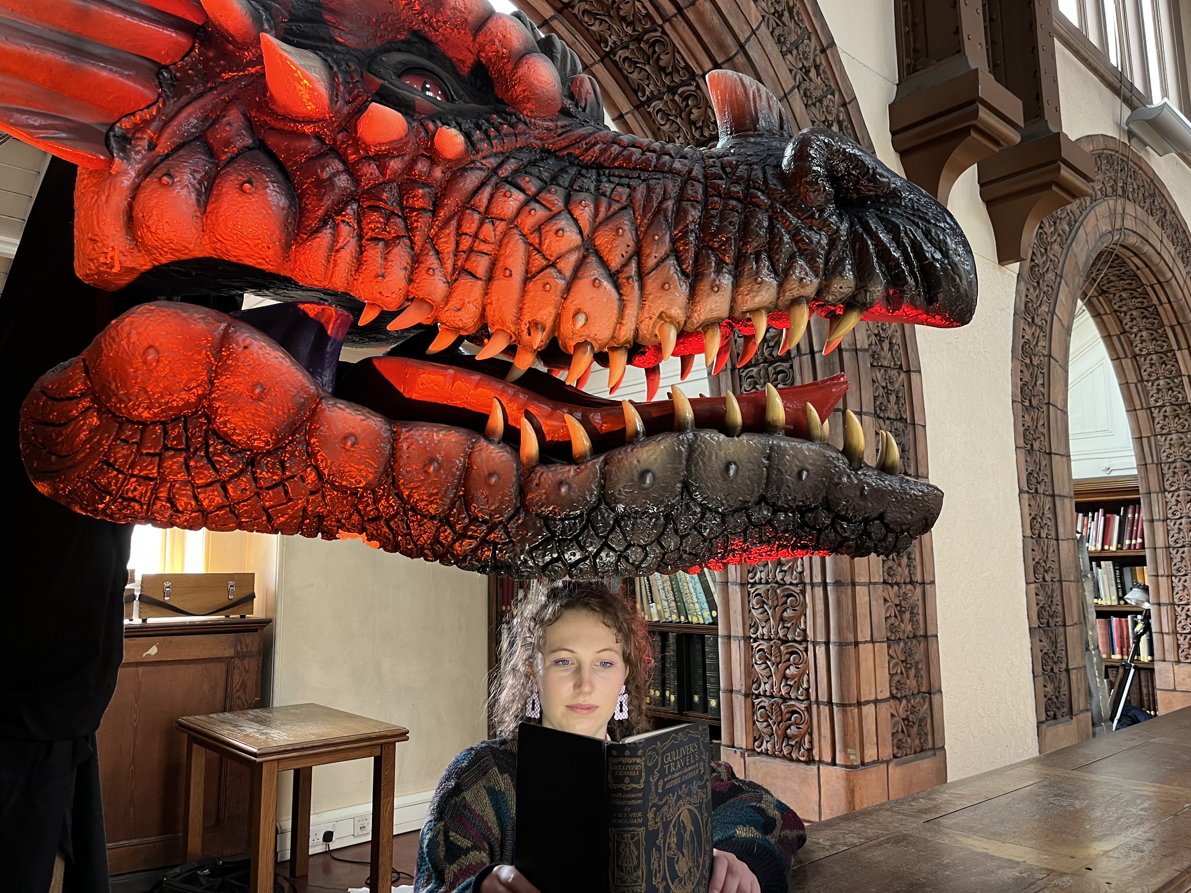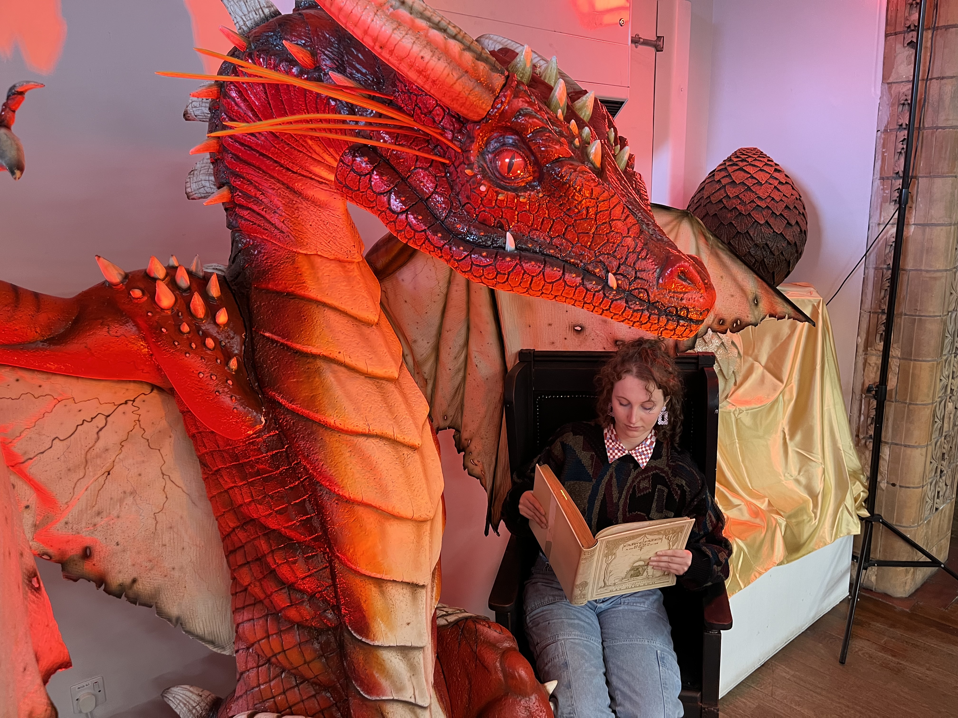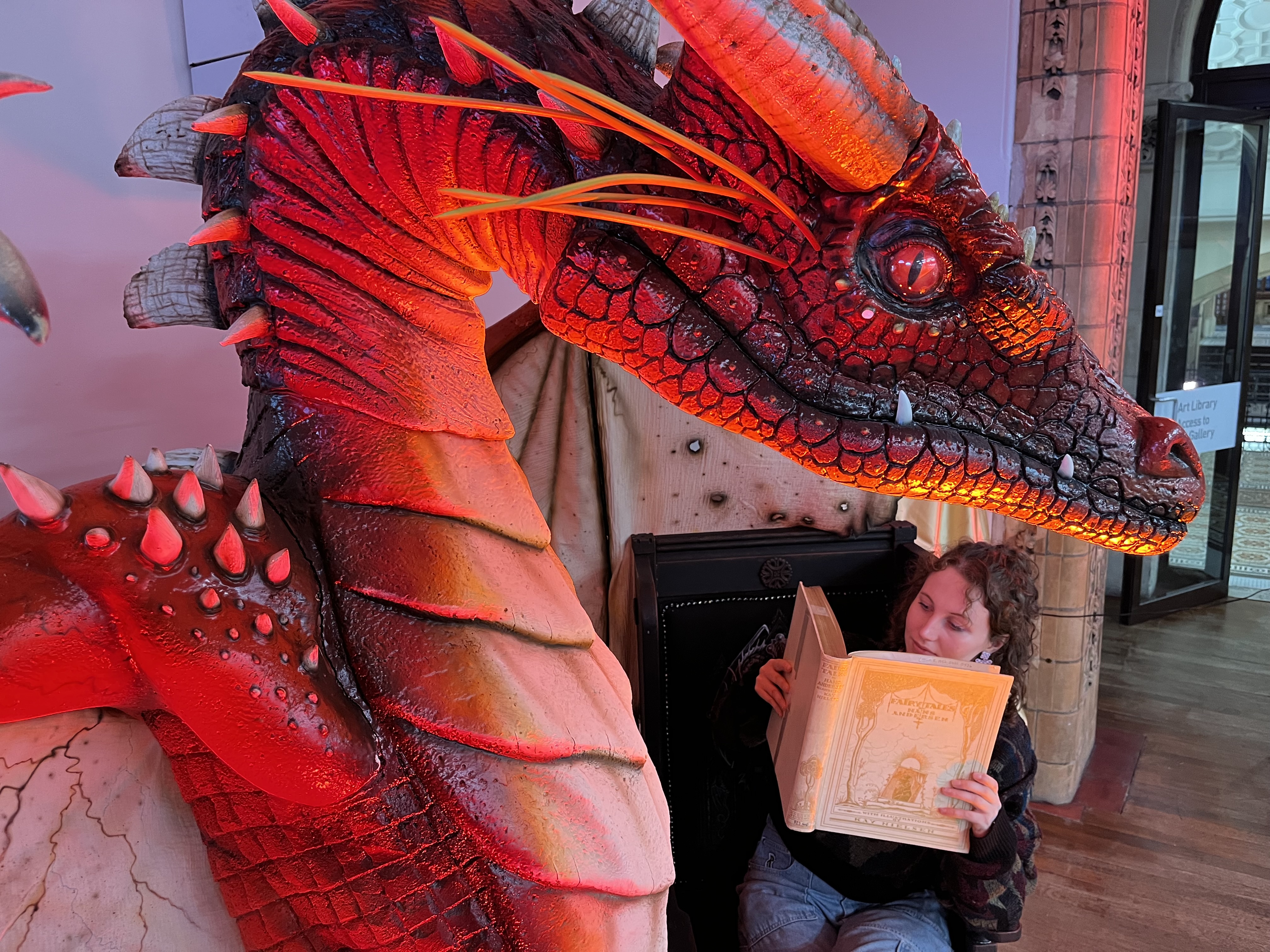And a jaw-dropping pair of mythical dragons are also carefully watching over their eggs in the library in an installation created by fantasy artist Anne Stokes.