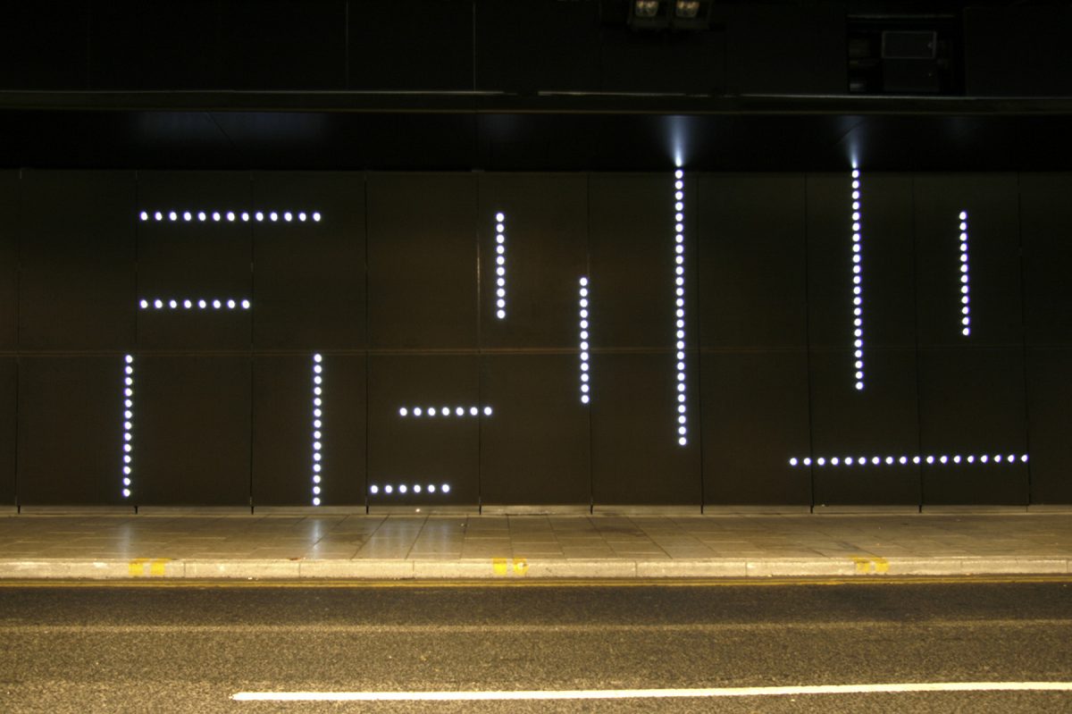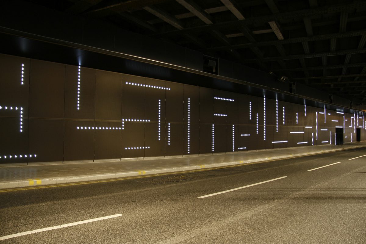 Comprised of lines of light, likened to a chain of pearls by the artist, the artwork changed every morning so commuters would see a different pattern each day. It featured 3,200 individual LED lights and 96 distinct sonic compositions.