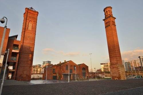 The striking towers originally acted as dust extractors for a factory founded by T.R Harding in 1864-66, which made steel pins for the textile industry.