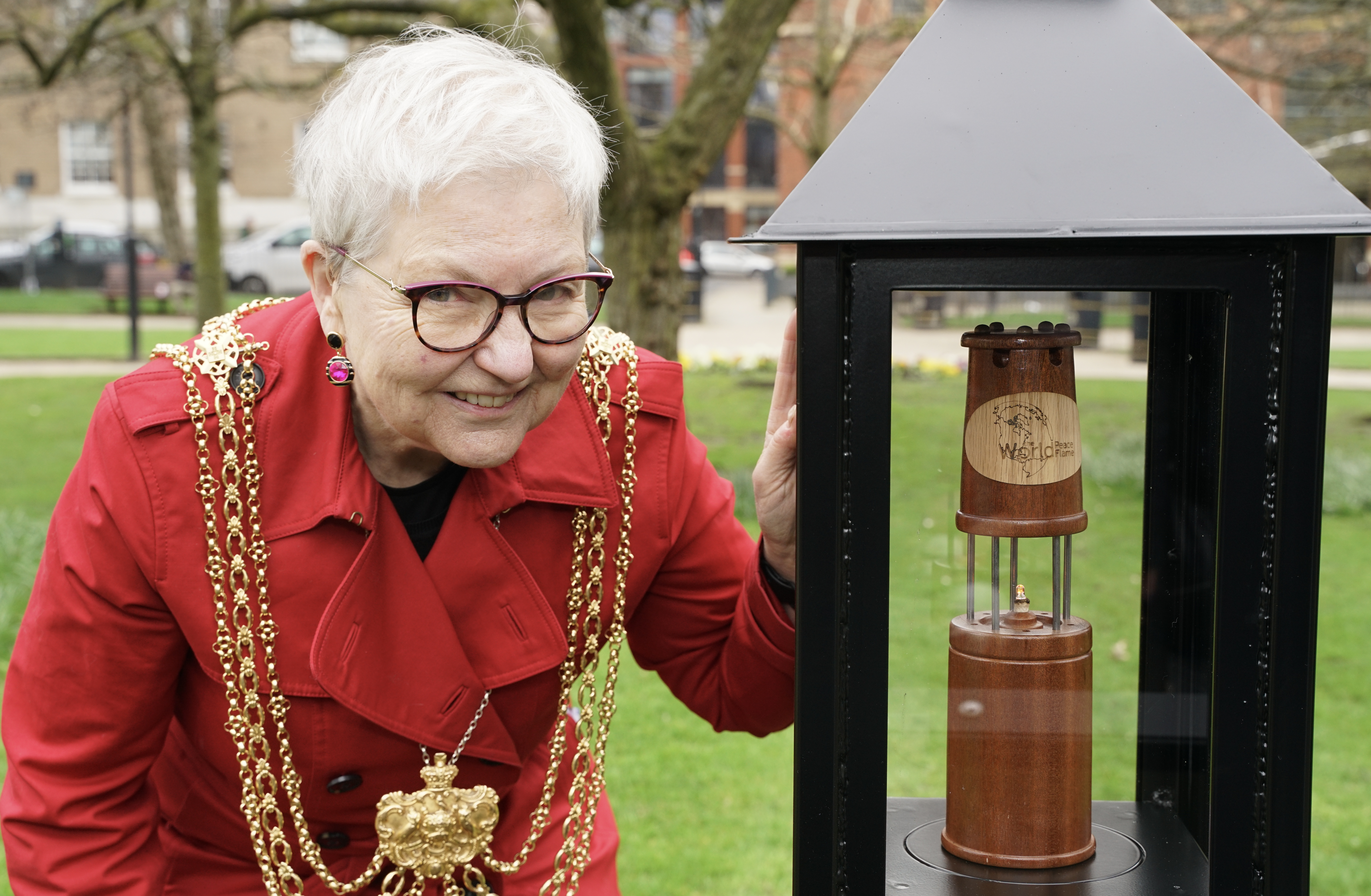 The Park Square World Peace Flame, which symbolises peace, unity, and freedom, is contained within a specially designed and locally handcrafted replica miners’ lamp. The city centre project was made possible through a crowdfunding campaign run by volunteers from the Garforth Peace Project.