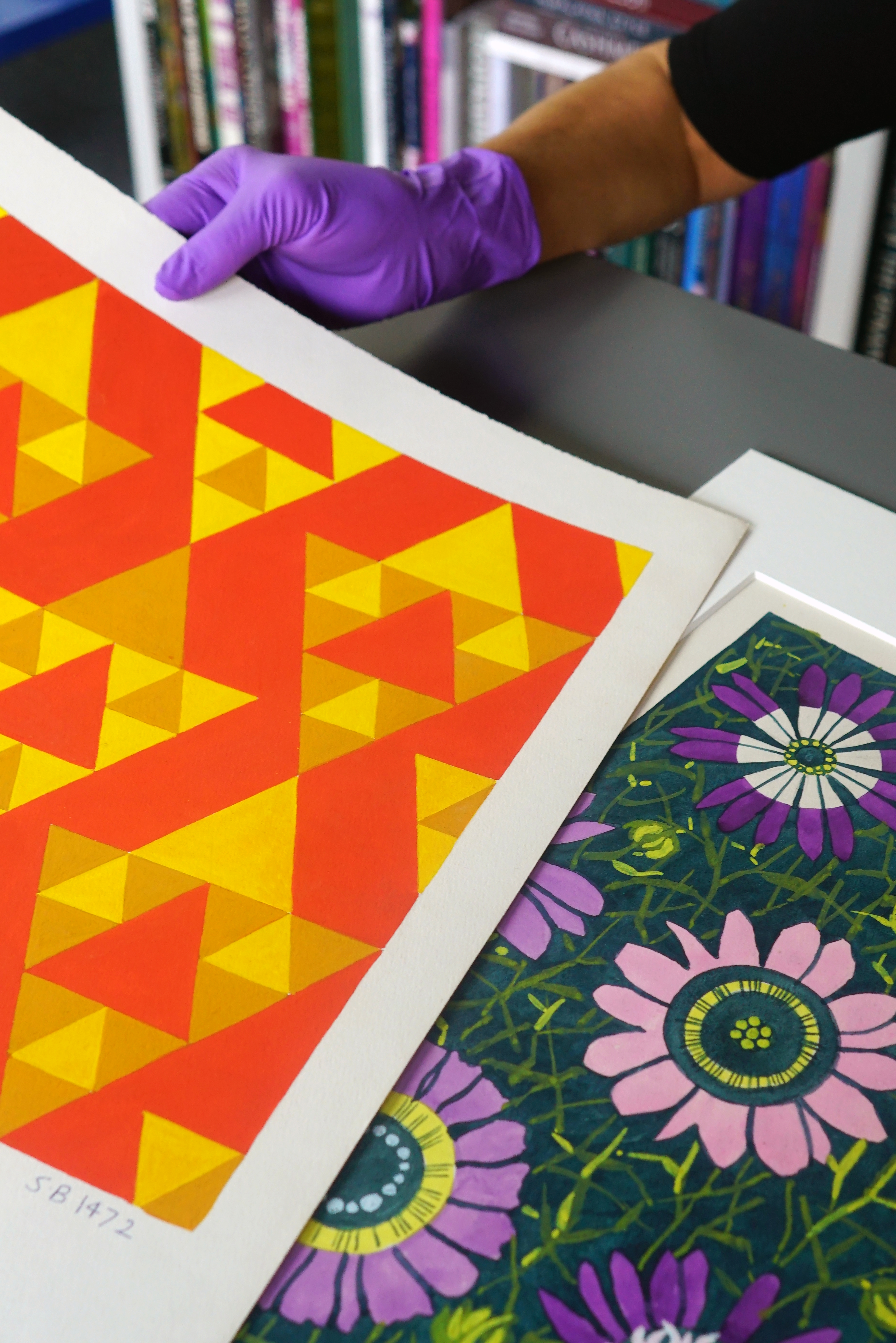 The Sheila Bownas Archive, includes 188 works on paper, many of which would have been used in textiles and fashion or on popular wallpapers that were used to decorate people’s homes.