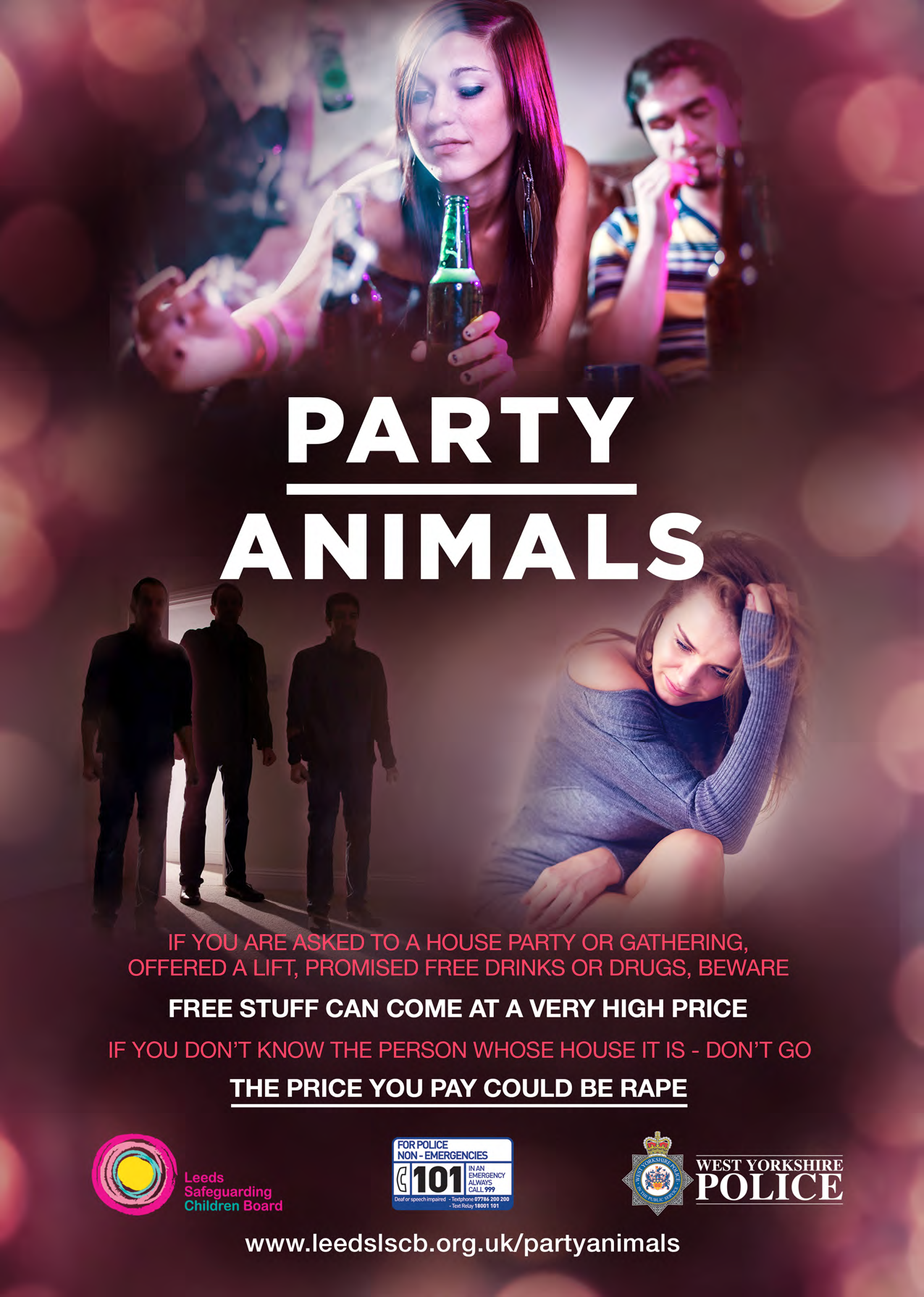 The Leeds Safeguarding Children Board is highlighting the ‘Party Animals’ campaign over the Christmas season, to warn teenagers about the potential dangers of attending parties or ‘get-togethers’ – especially on the promise of free drink and drugs.