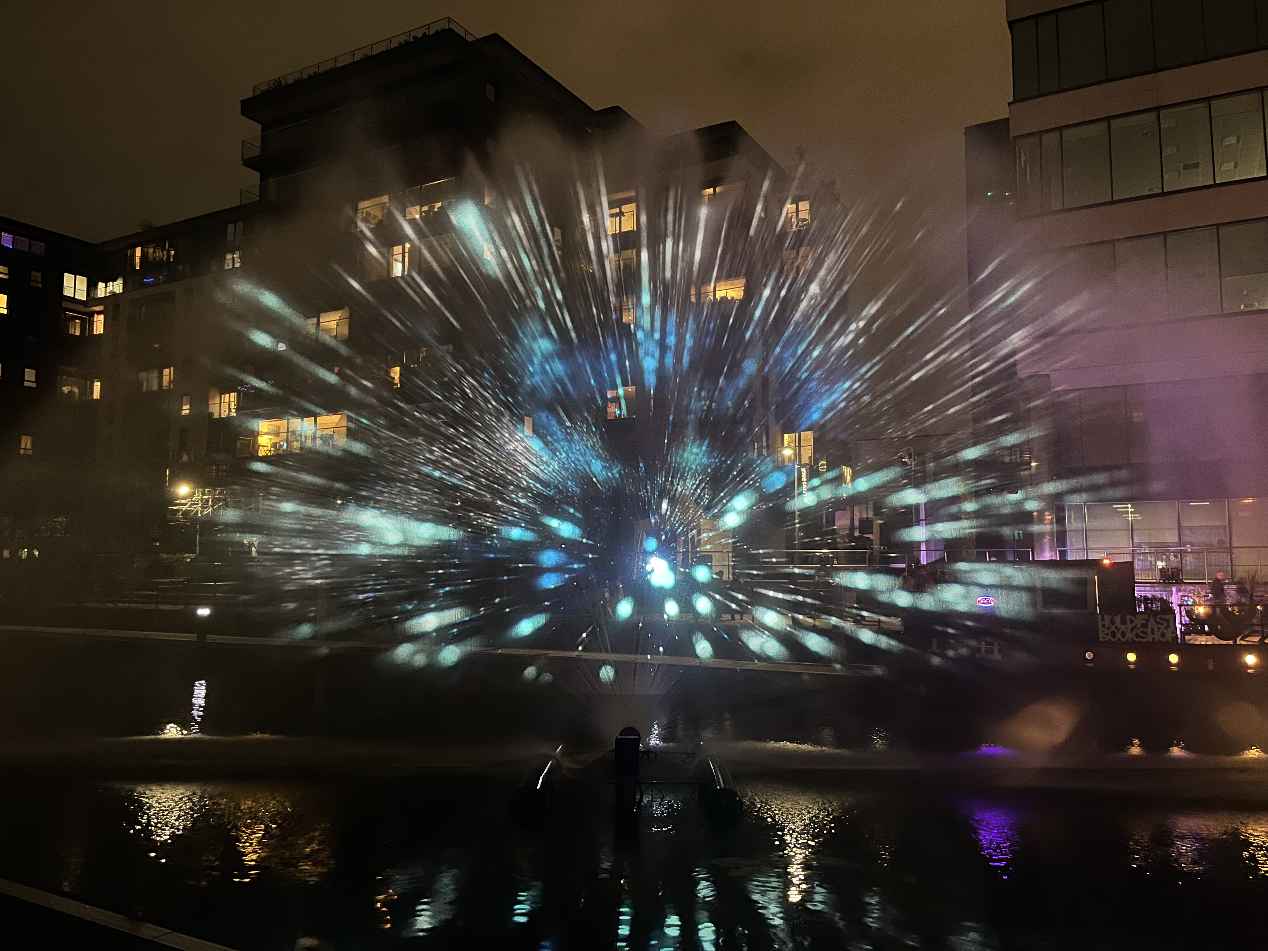 At Leeds Dock, Norwegian artist Anastasia Isachsen’s stunning Monad, was projected onto the water, taking inspiration from nature and the universe and accompanied by a compelling soundscape.