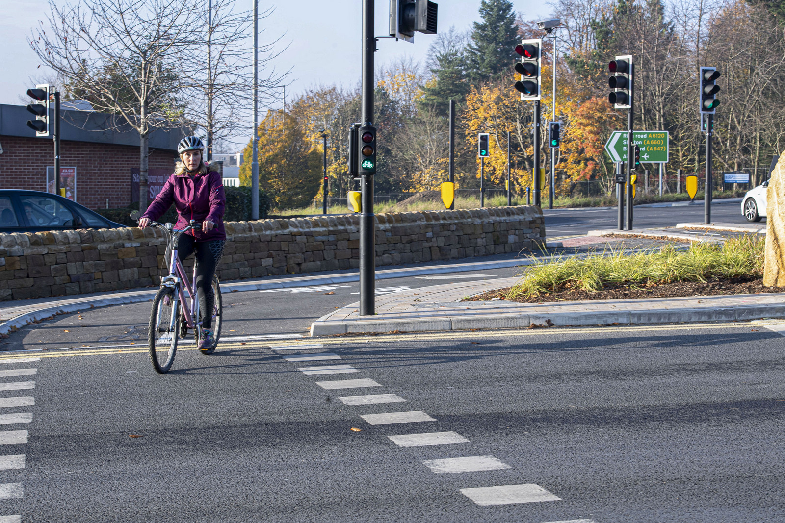 Person cycling on Moortown roundabout
