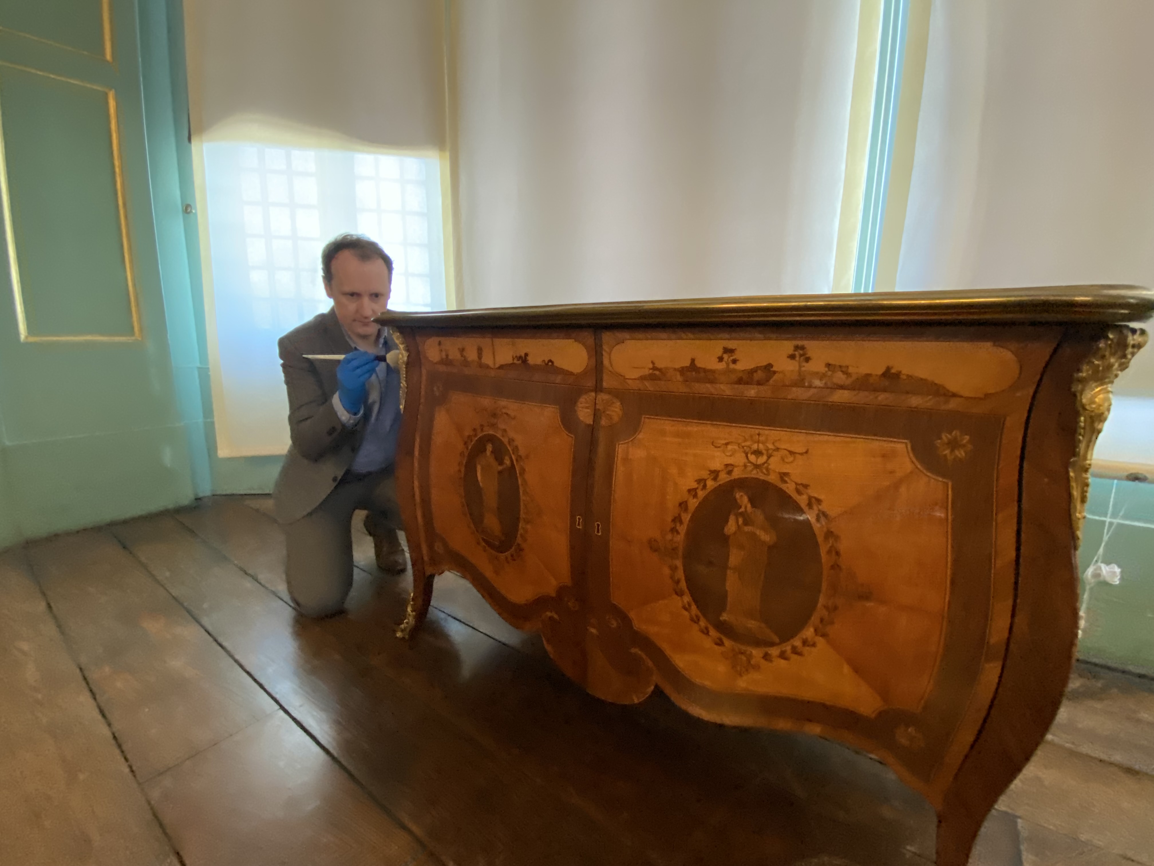 Temple Newsam curator Adam Toole with the Townley Commode, which has just gone on display.