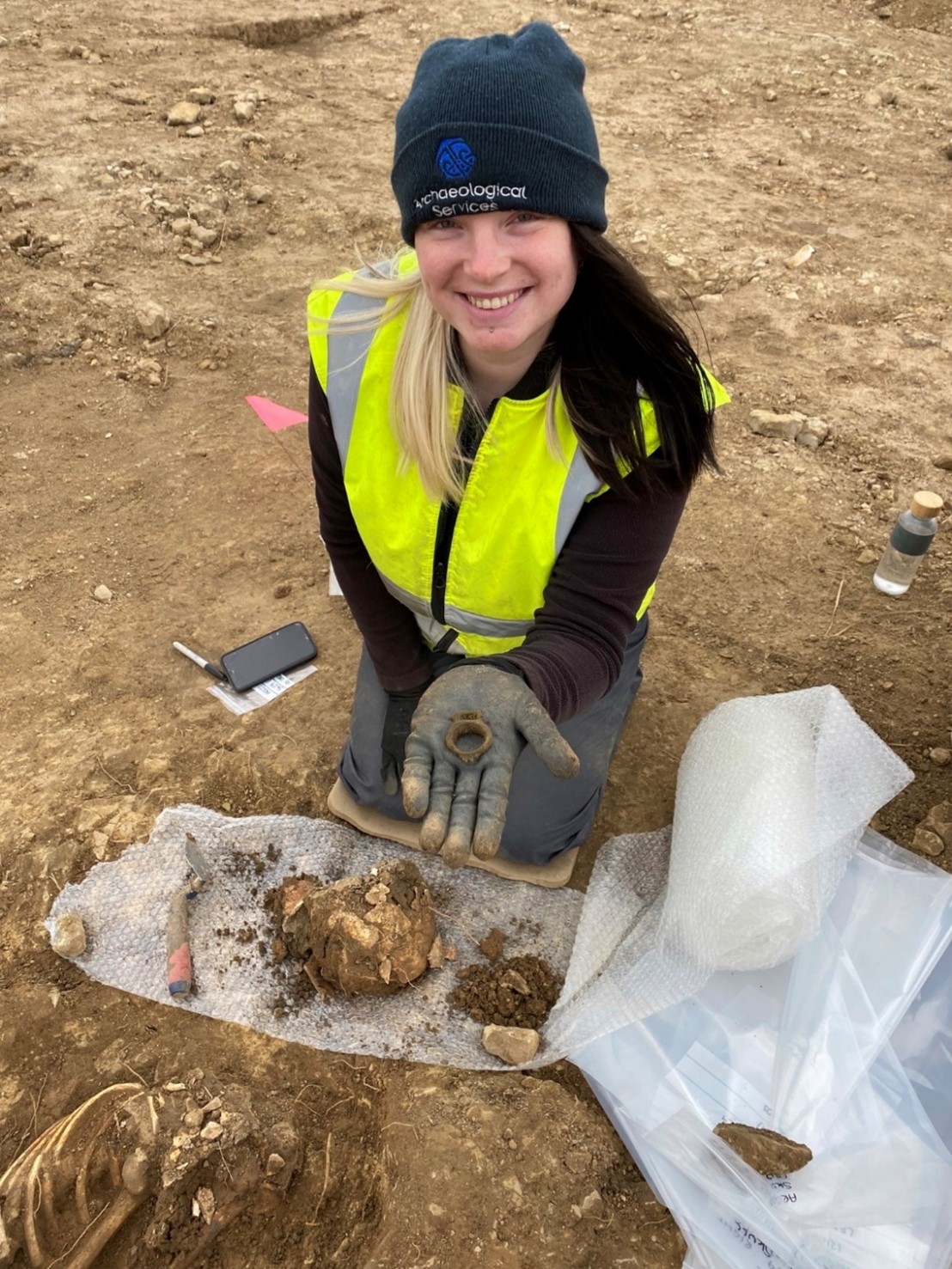 Archaeologist Chloe Scot excavating one of the graves at the site where an ancient lead coffin has been unearthed in a previously-undiscovered, 1,600-year-old Leeds cemetery. The once-in-a-lifetime find, thought to contain the remains of a late-Roman aristocratic woman, was discovered as part of an archaeological dig near Garforth in Leeds, which also revealed the remains of more than 60 men, women and children who lived in the area more than a thousand years ago.