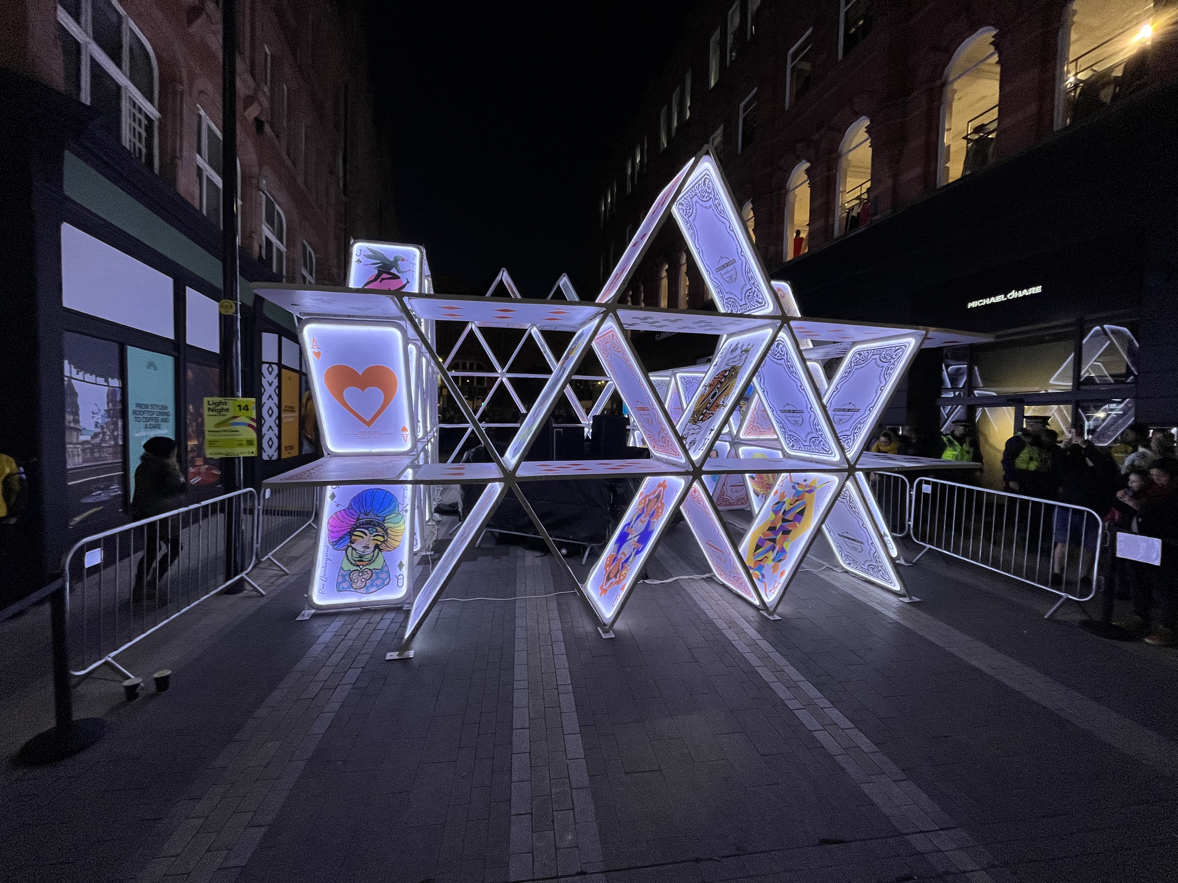 House of Cards at Victoria Leeds, one of 50 stunning illuminated installations which transformed Leeds city centre during one of the country's biggest annual arts events.
