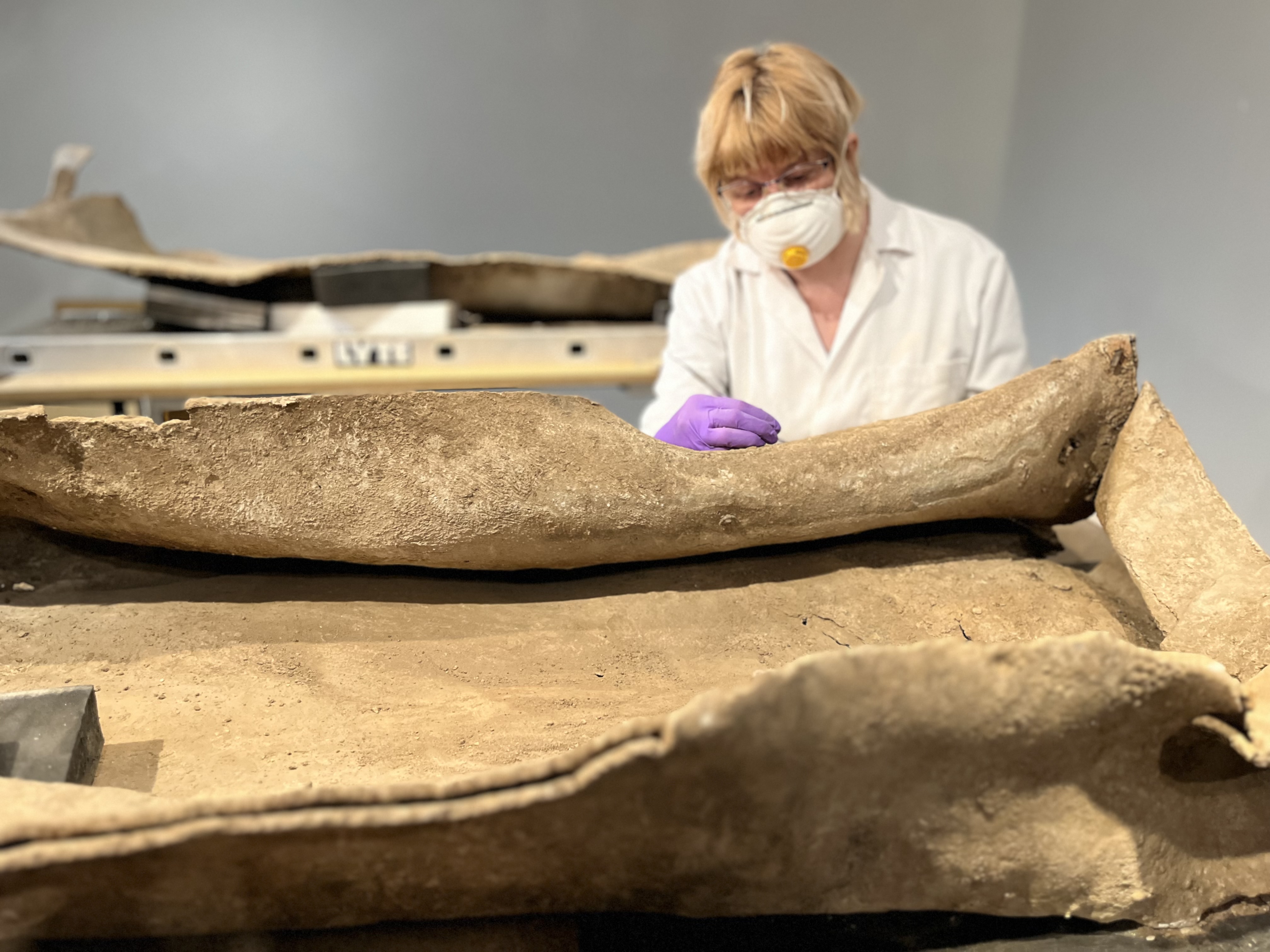 Emma Bowron, conservator with Leeds Museums and Galleries, works on the ancient lead coffin which lay buried in a Leeds field for more than 1,600 years. The astonishing discovery, described by experts as a once-in-a-lifetime find, was made during excavation work by West Yorkshire Archaeological Services in a previously unknown site near Garforth. It will go on display at Leeds City Museum in May as part of a new exhibition called Living with Death.