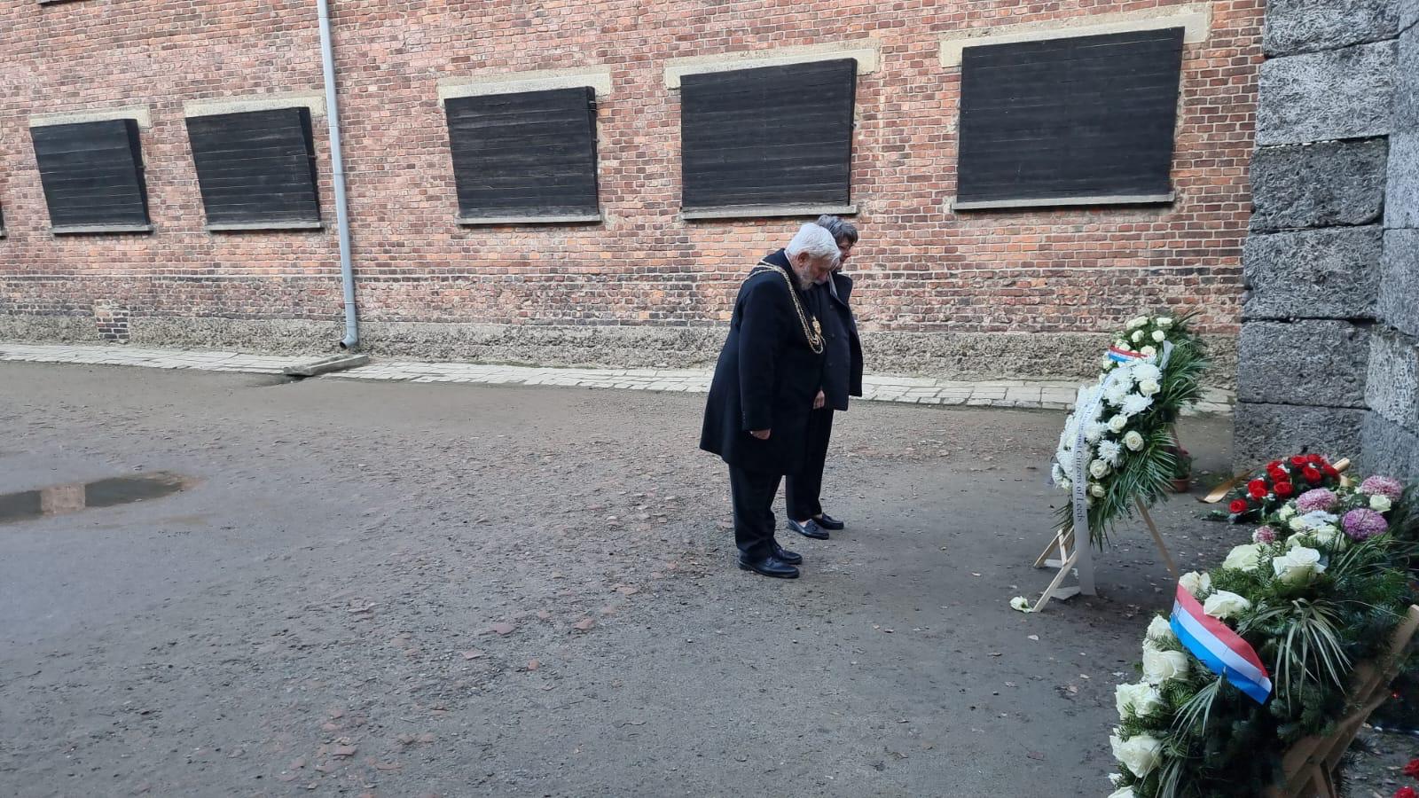 Lord Mayor of Leeds laying a wreath at Auchwitz
