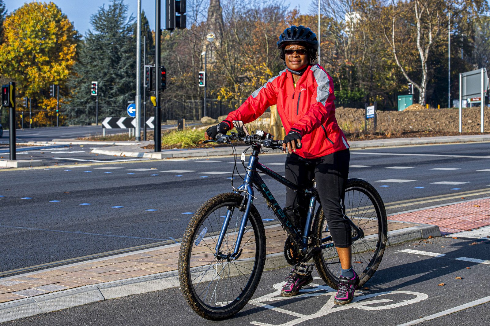 Person with bike using Moortown Roundabout