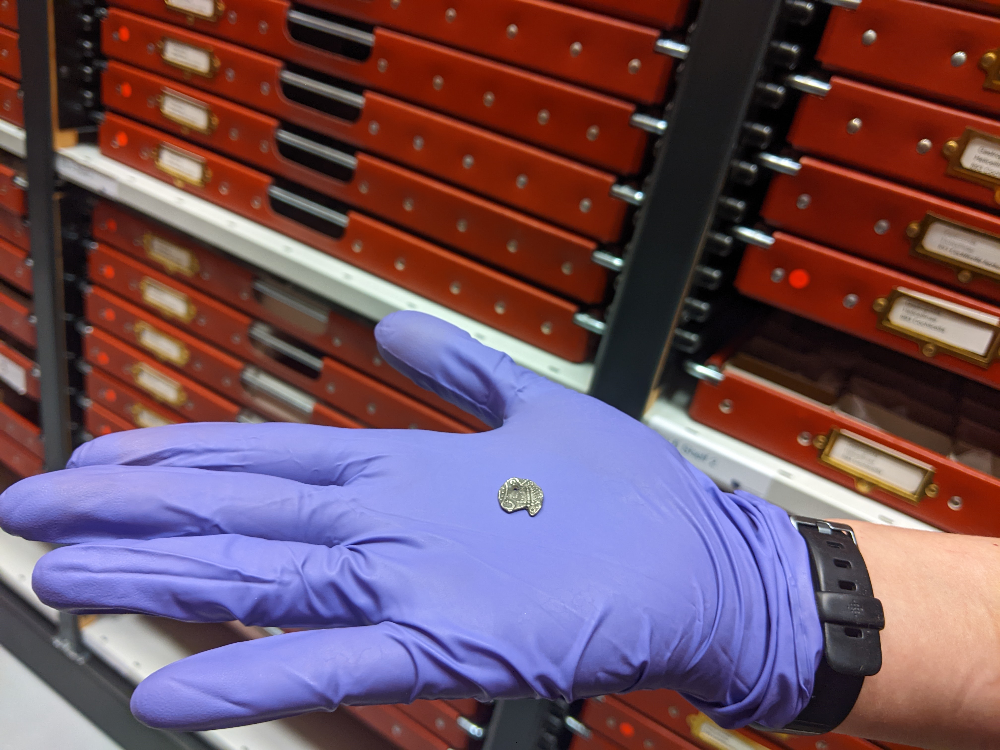 The newly-acquired sceat, among the littlest coins ever made in Britain, which was unearthed by an eagle-eyed detectorist on a patch of land in Leeds.