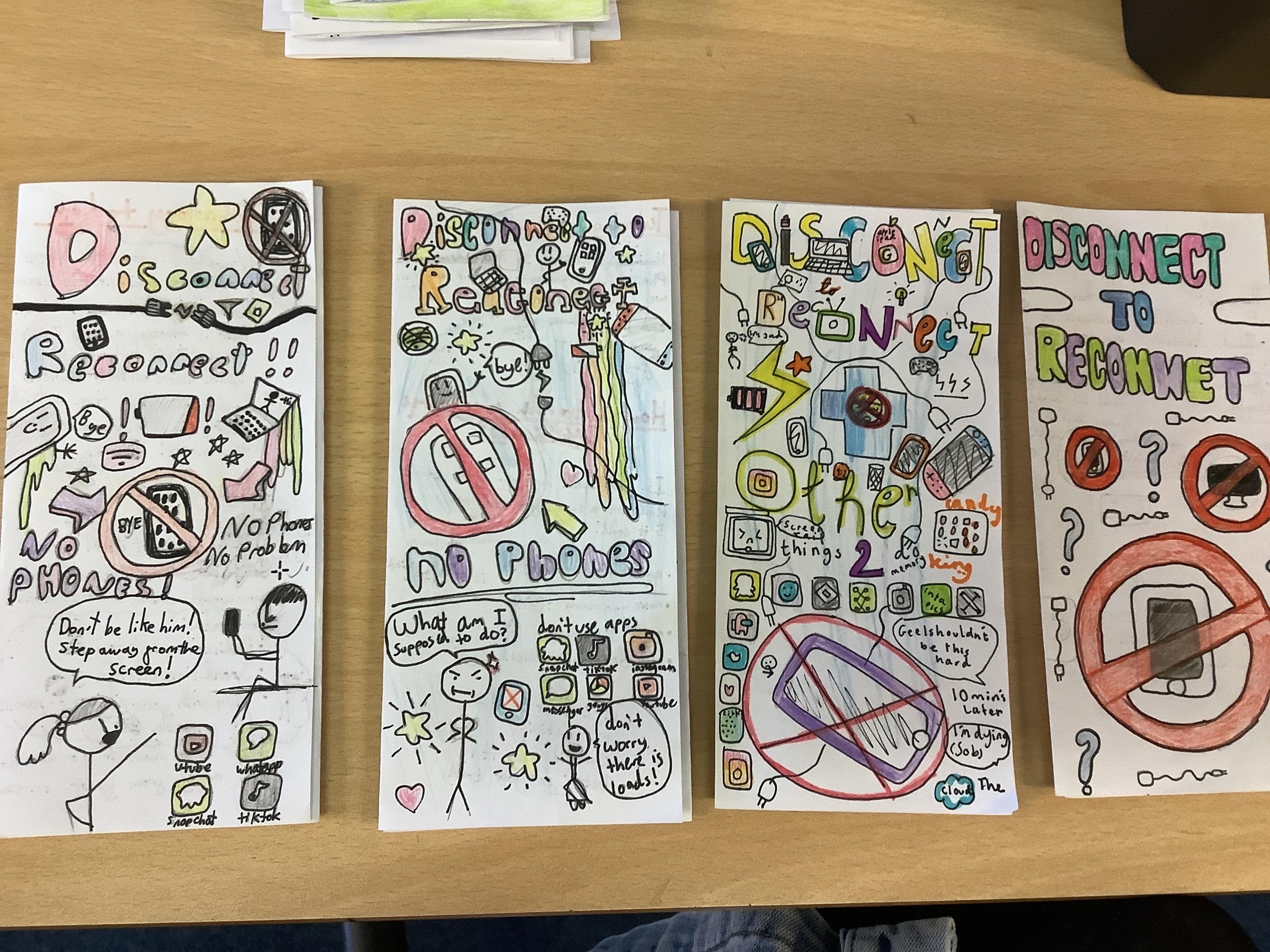 Leaflets created during the pilot Disconnect to Reconnect week, held earlier this year, in March 2024, by pupils at Manor Wood Primary School.